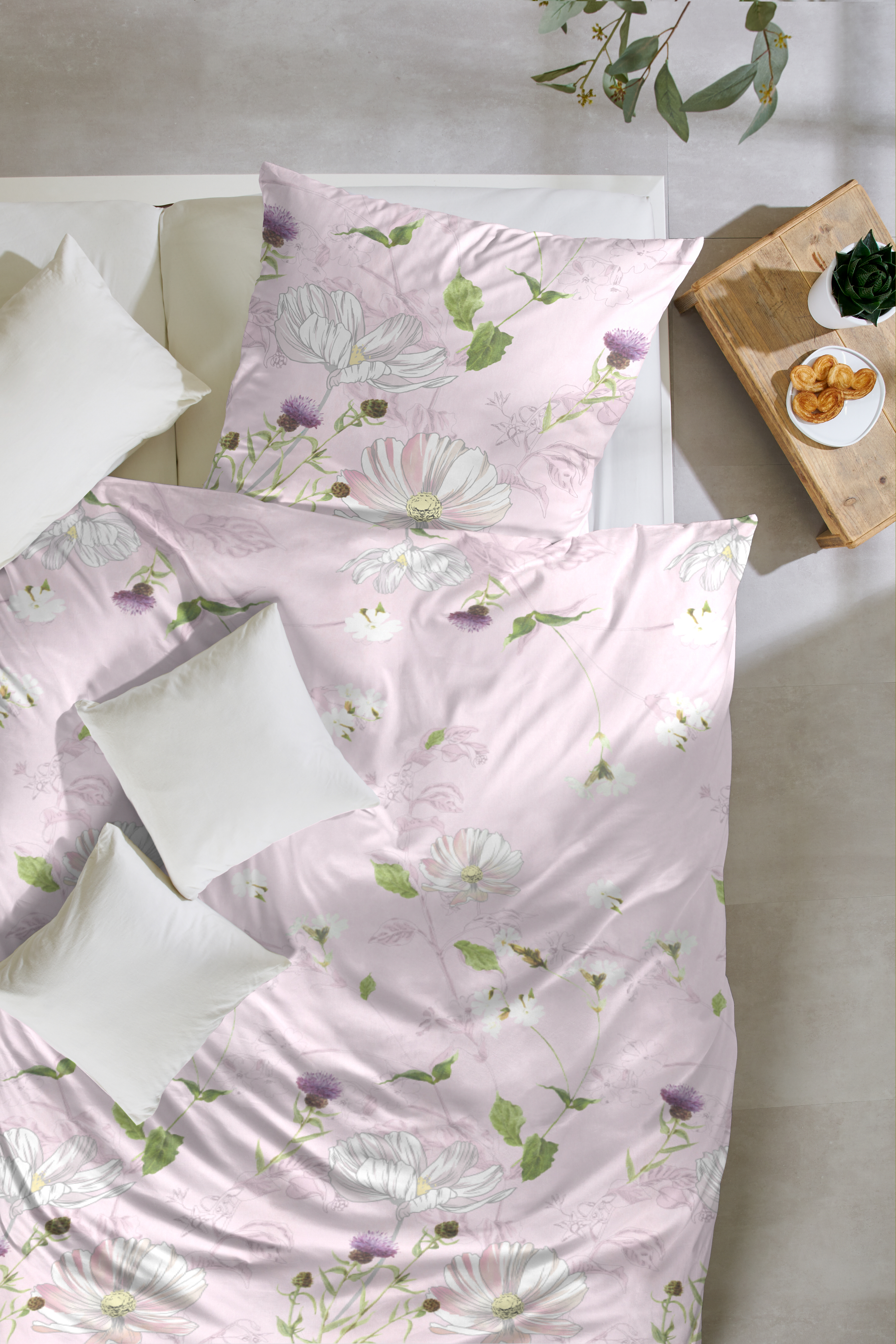 Durch diese spezielle Bindung erhält die Ware eine glatte und glänzende Oberfläche und verfügt als Bettwäsche über einen geschmeidigen,