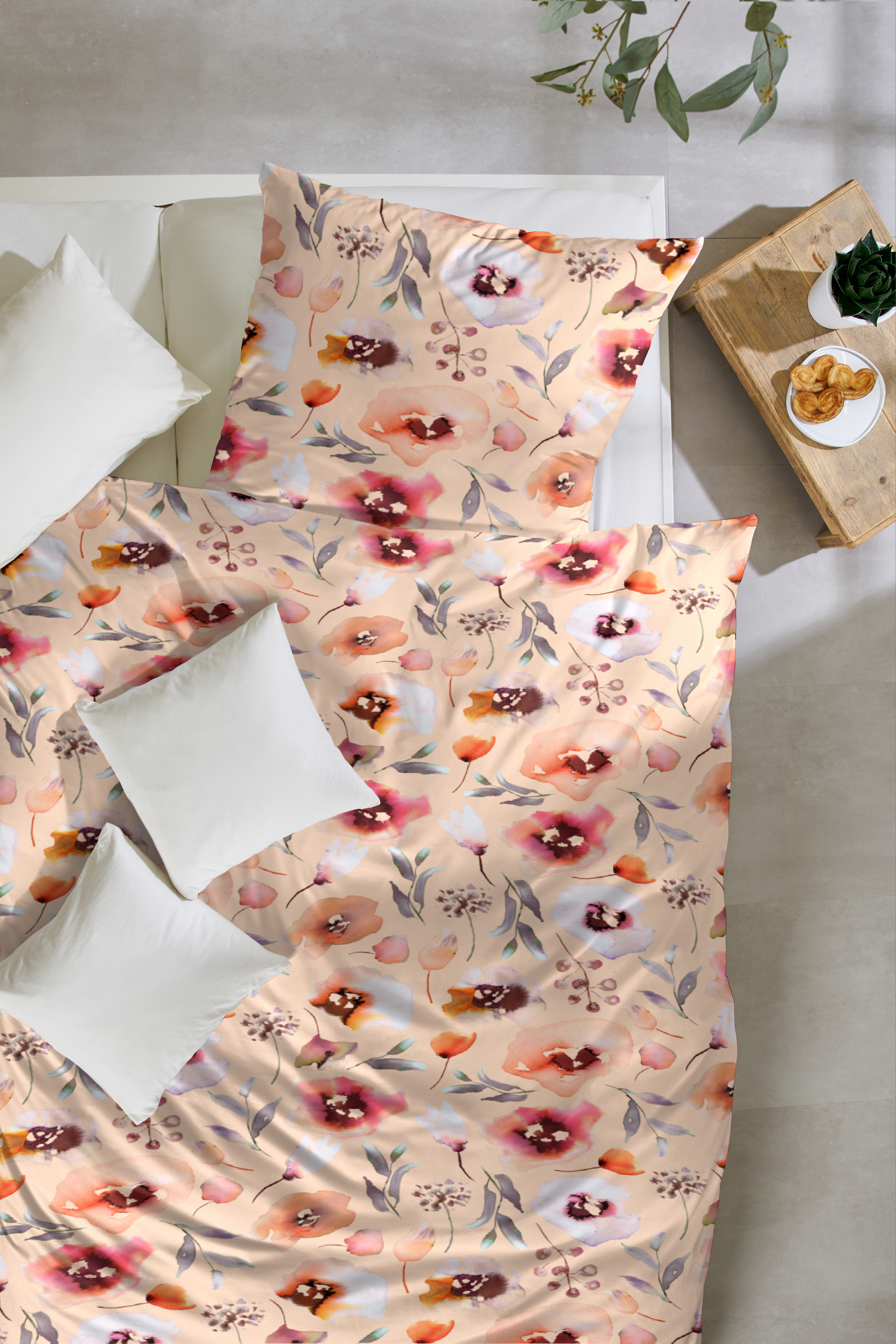 Farbe: Blumenmuster in warmen rot, orange und beigetönen