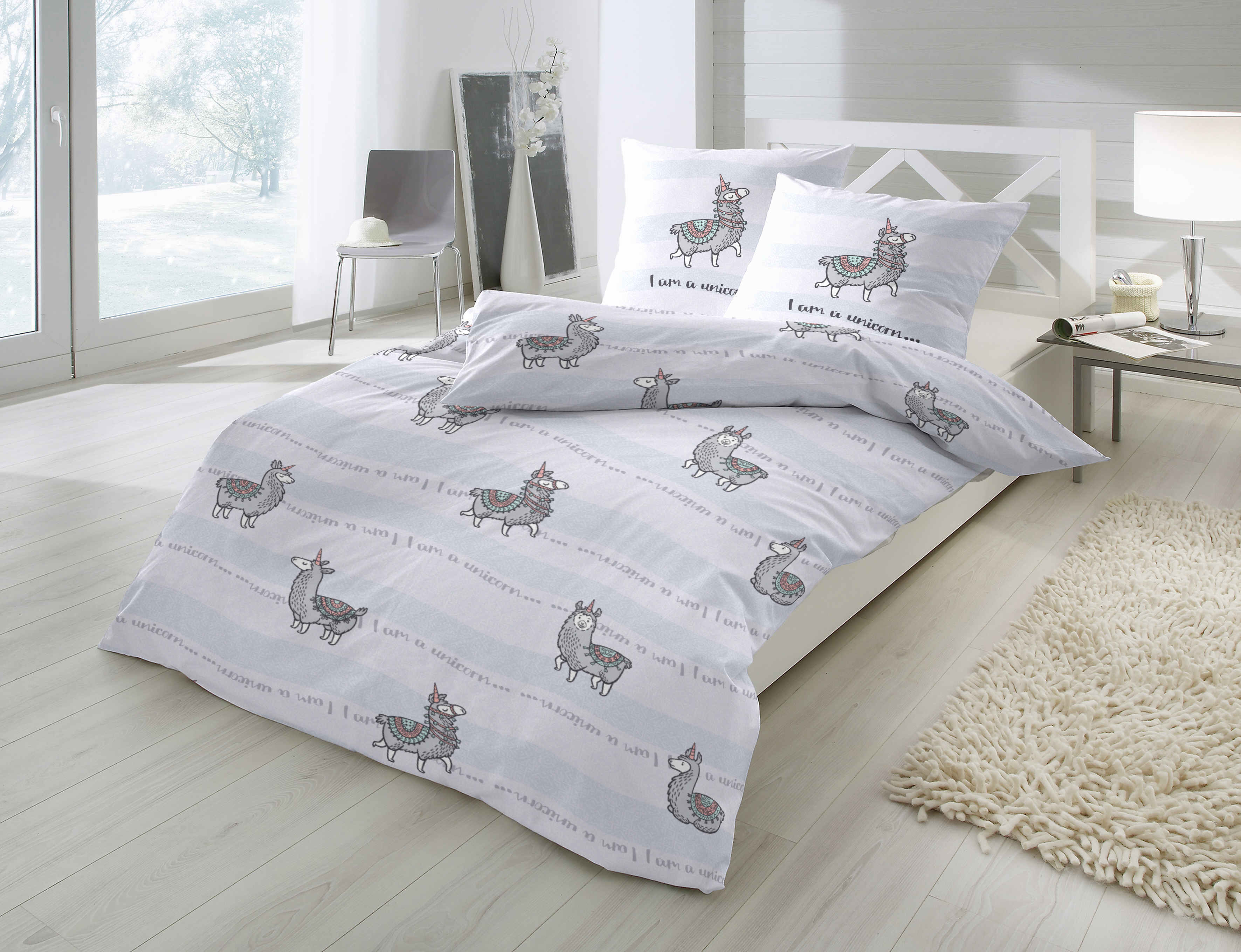 Farbe: weiß, grau, rosa mit Tiermotiv Alpaka