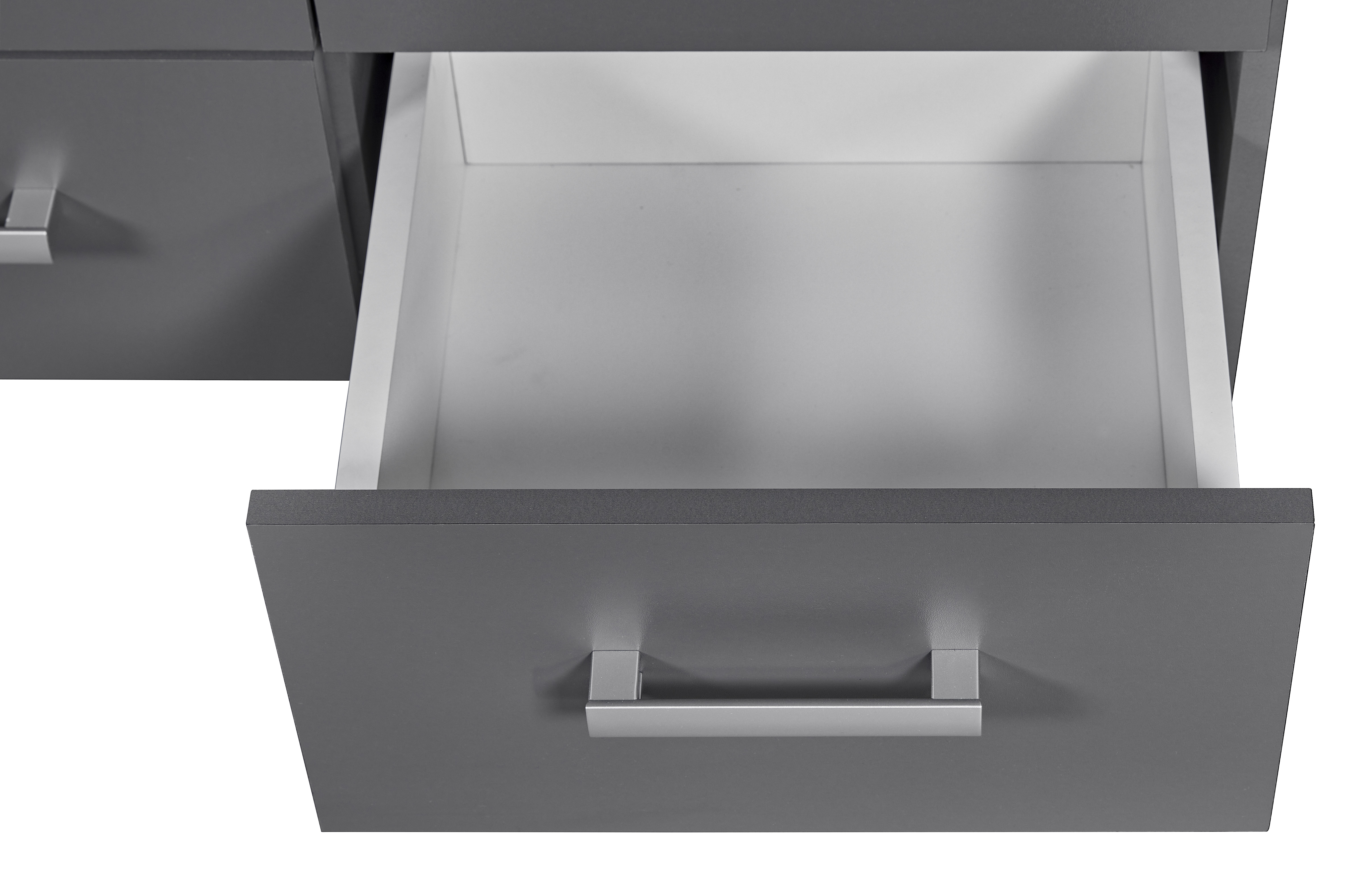 Caisson et façade : en panneaux de particules surfacés mélaminés (PPSM) robustes, ton gris graphite