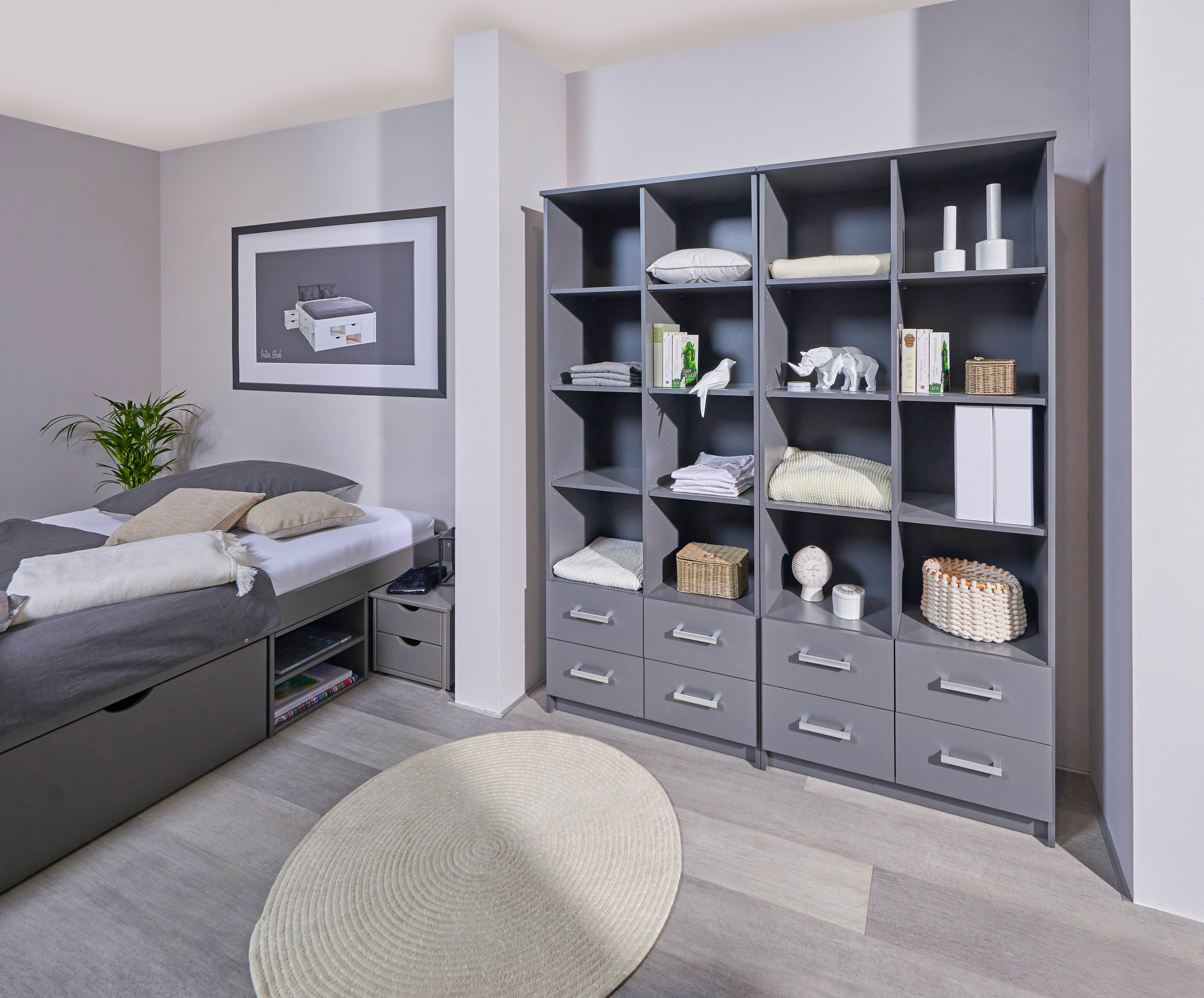 Robuste et fonctionnelle, cette étagère séduit par sa couleur gris graphite qui apporte une touche moderne et s’intègre parfaitement dans tous les intérieurs.