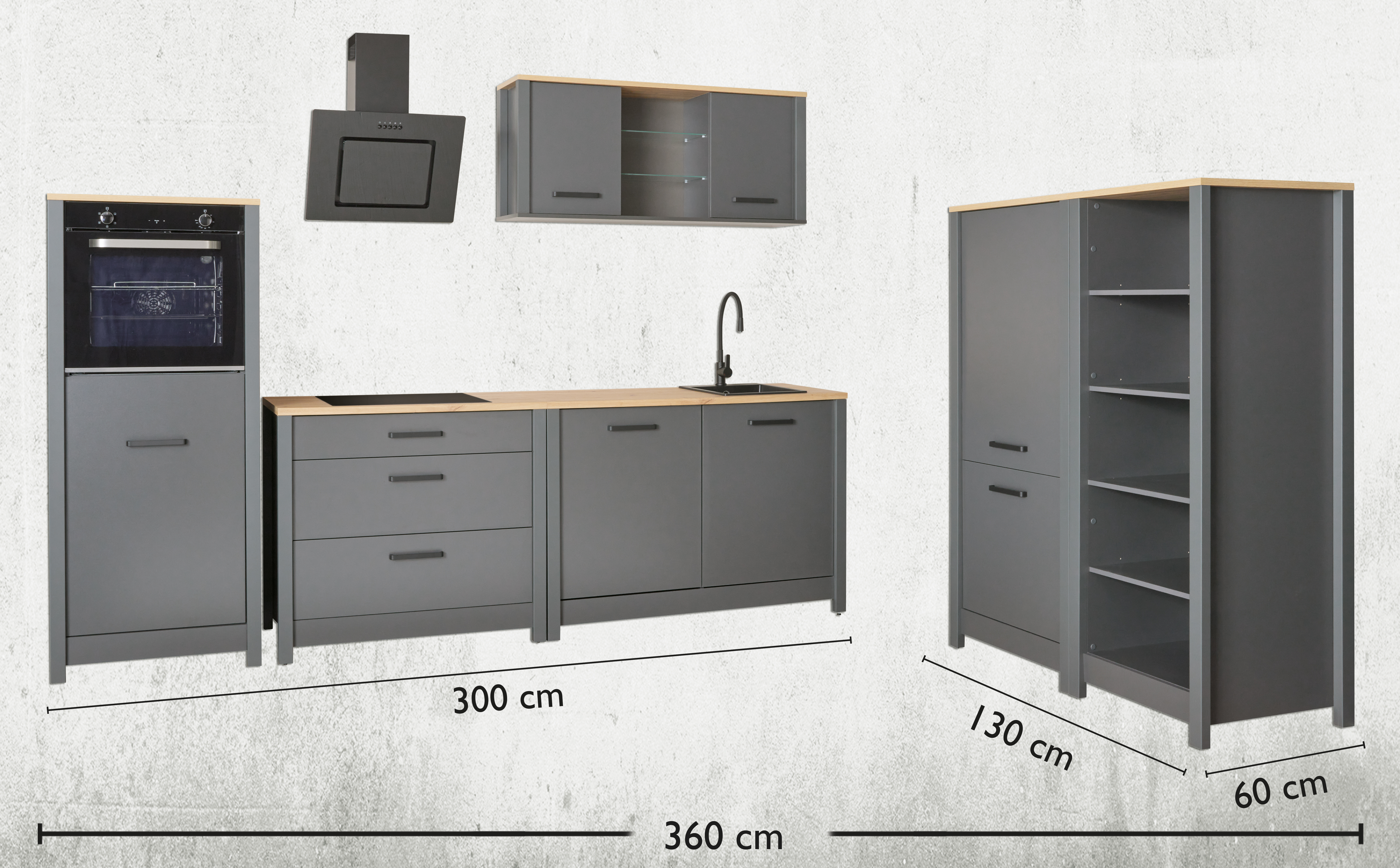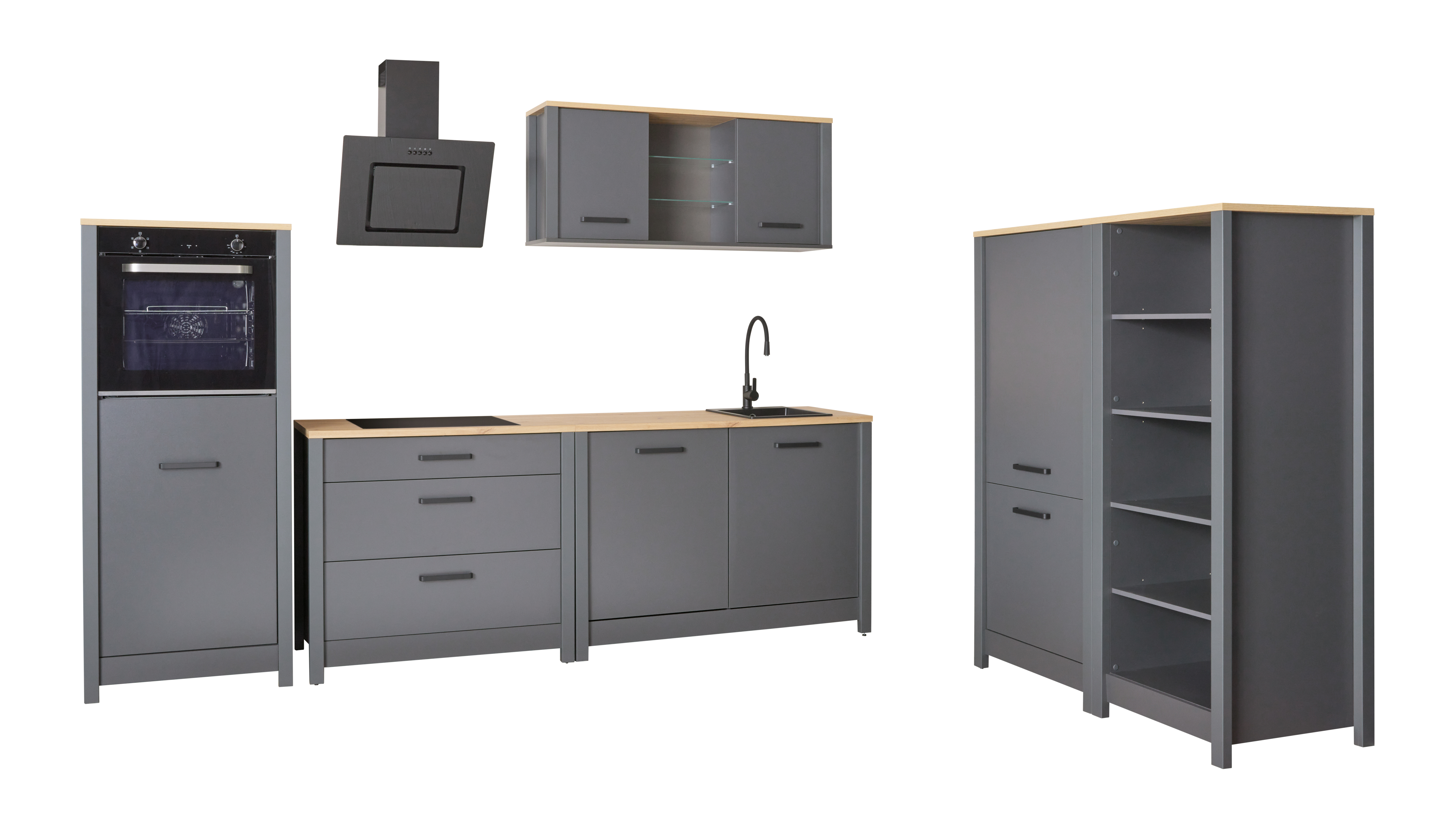 Façade et caisson : MDF (panneaux en fibres de bois de densité moyenne), panneaux de particules ton anthracite