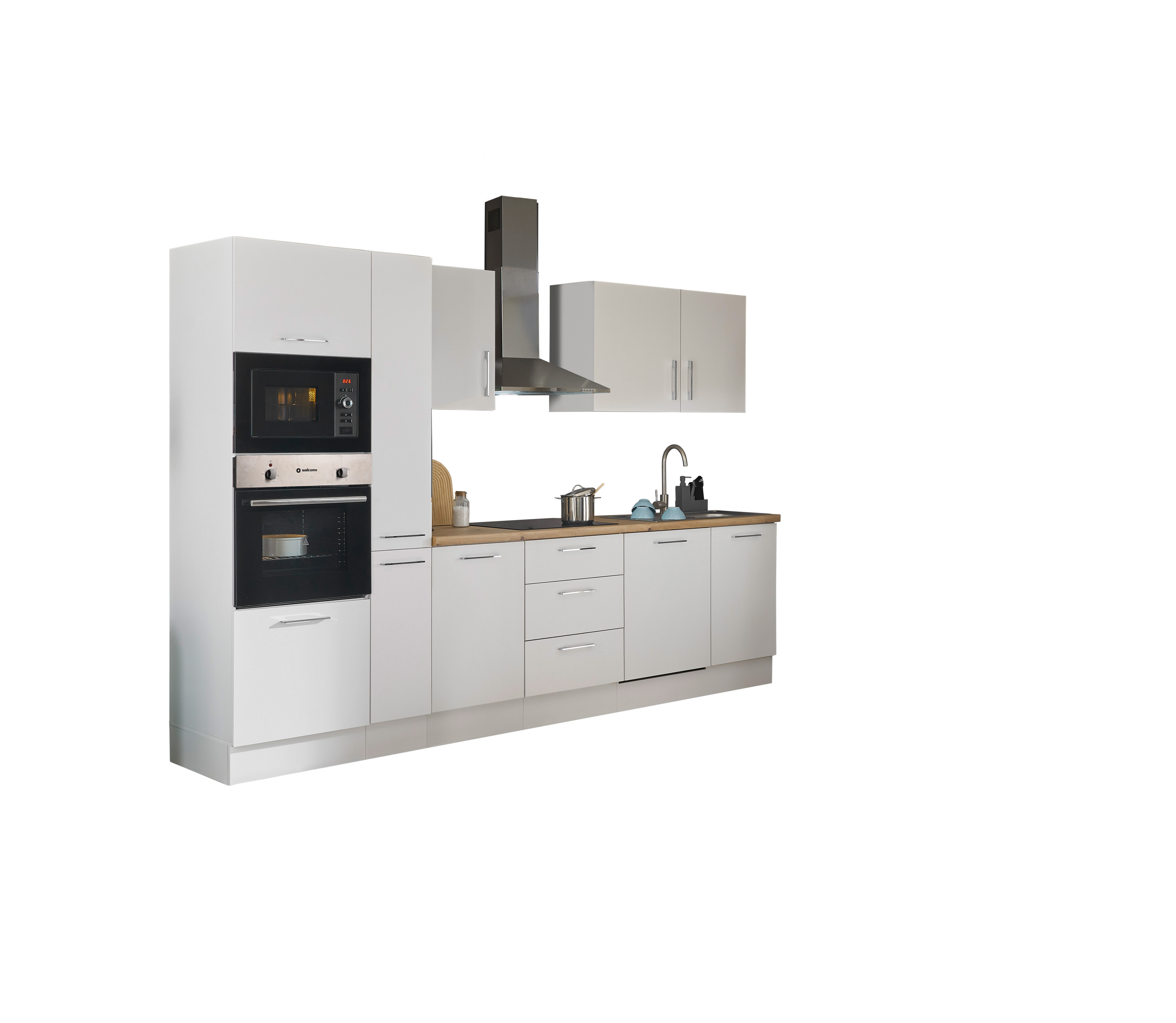 Bloc cuisine avec électroménager CORNWALL (bloc cuisine-four-lave-vaisselle-micro-ondes-armoire coulissante) I