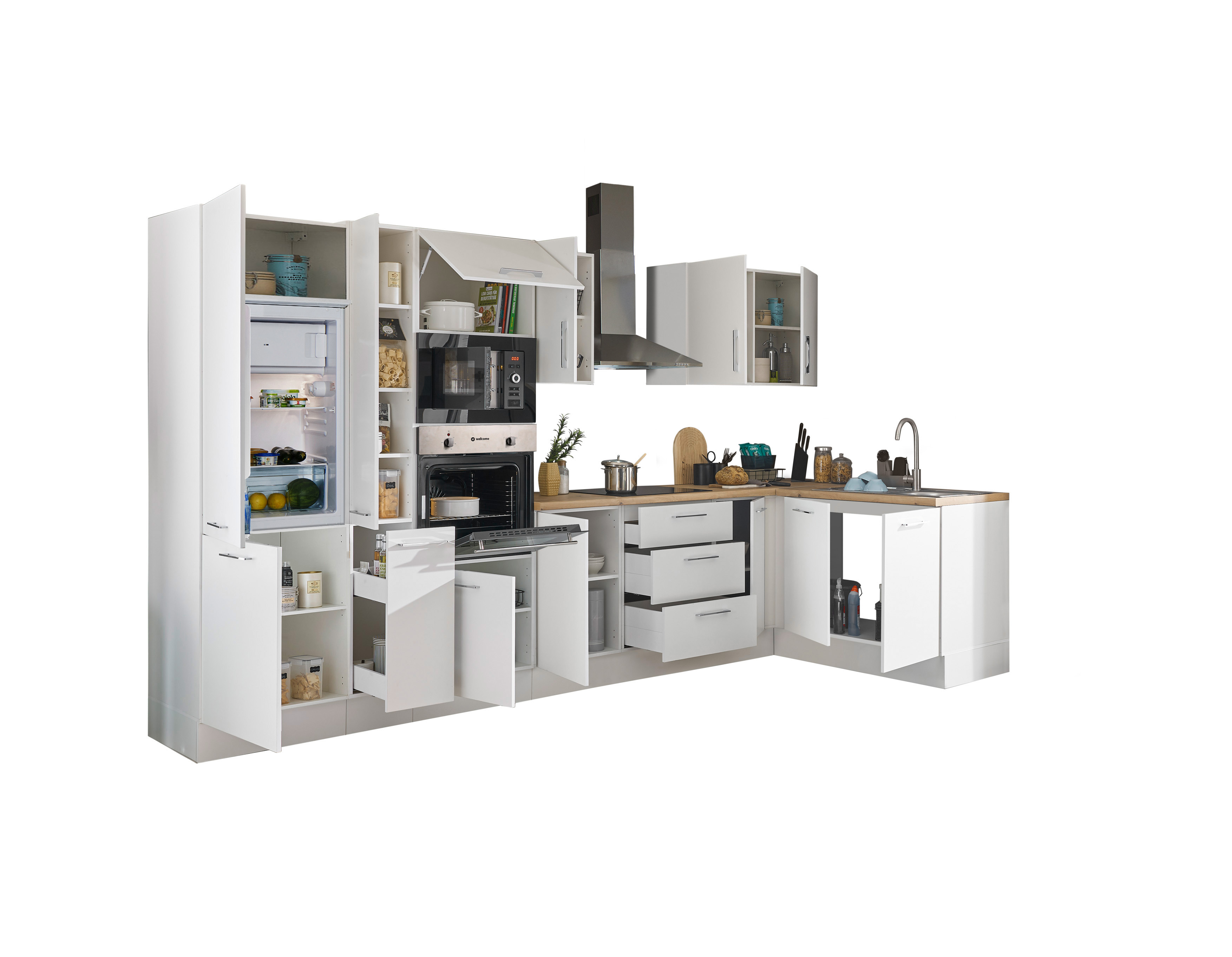 Bloc cuisine avec électroménager CORNWALL (bloc cuisine-four-réfrigérateur-micro-ondes-armoire coulissante) I