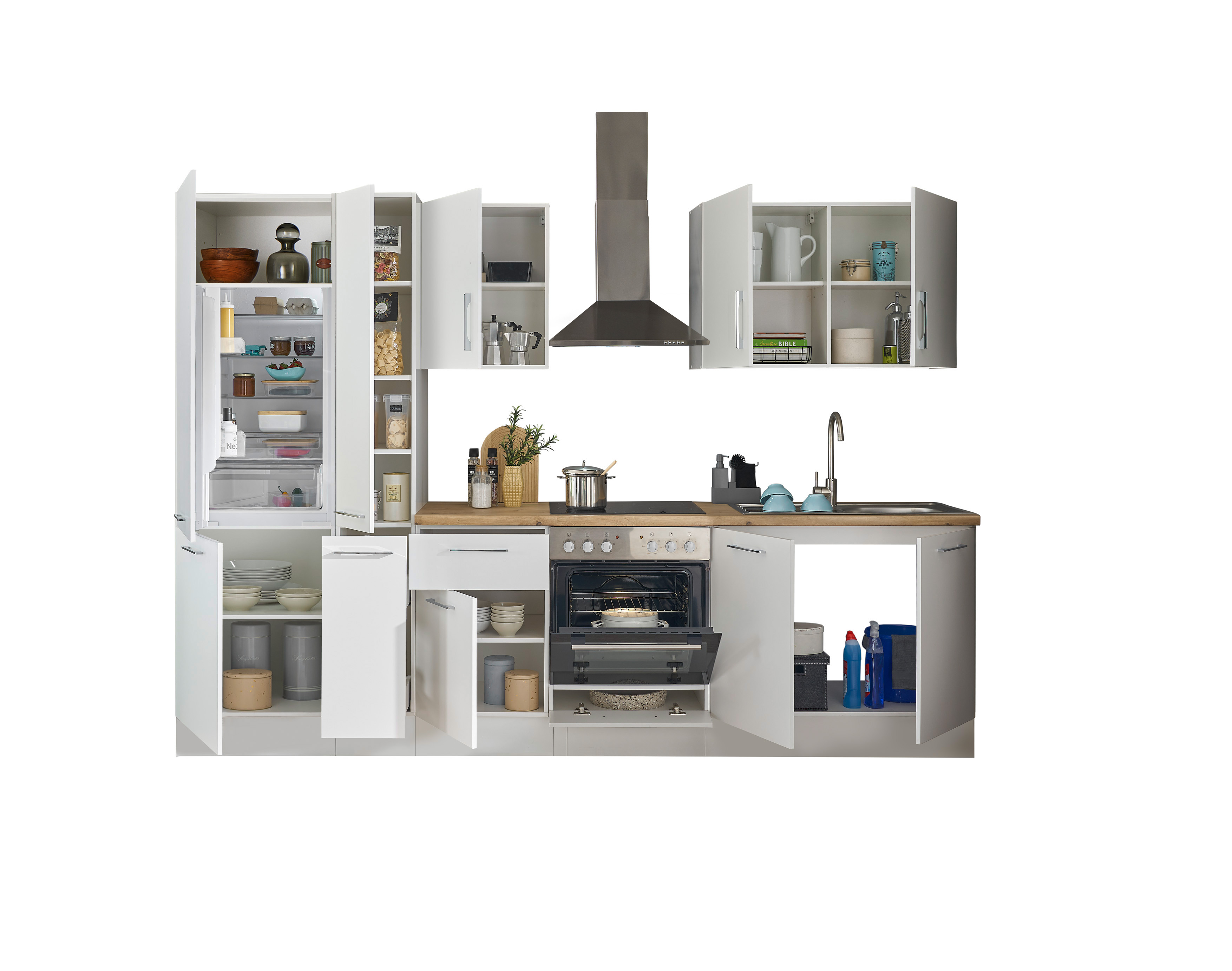 Bloc cuisine avec électroménager CORNWALL (bloc cuisine-réfrigérateur-armoire coulissante) I