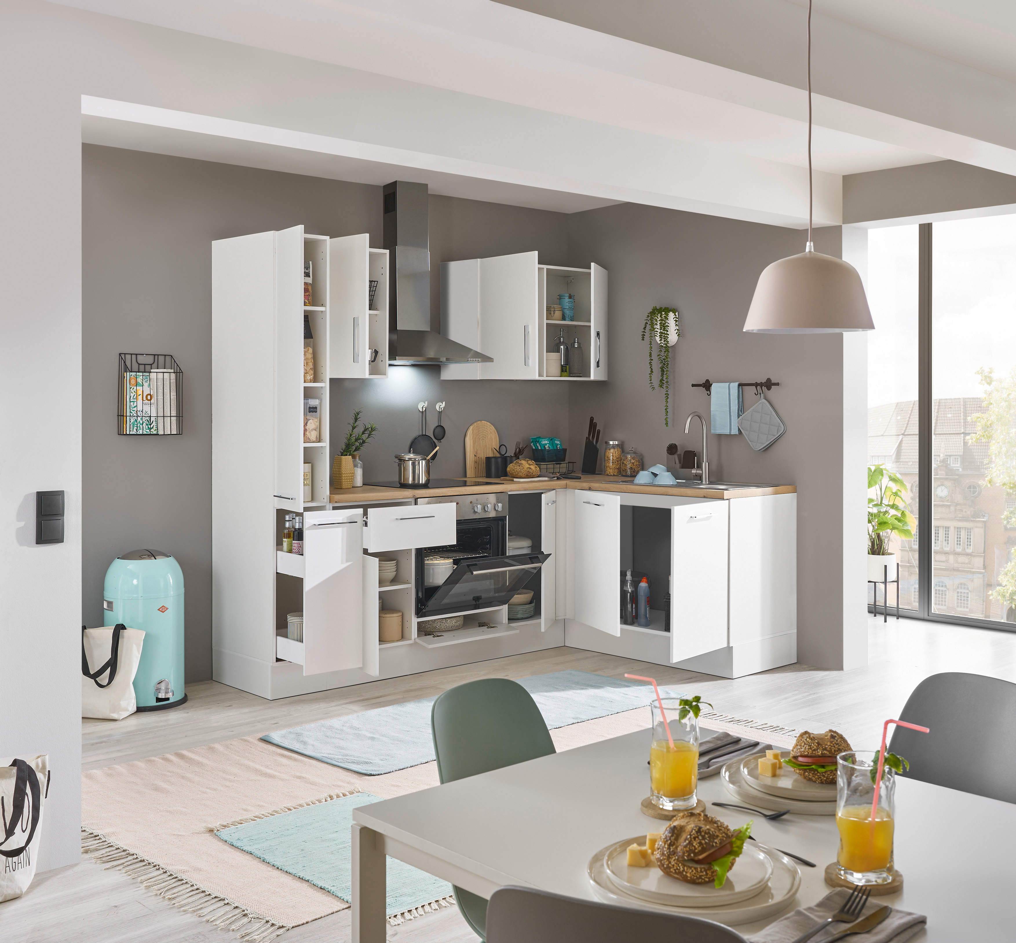 Bloc cuisine avec électroménager CORNWALL (cuisine d'angle-armoire coulissante) I