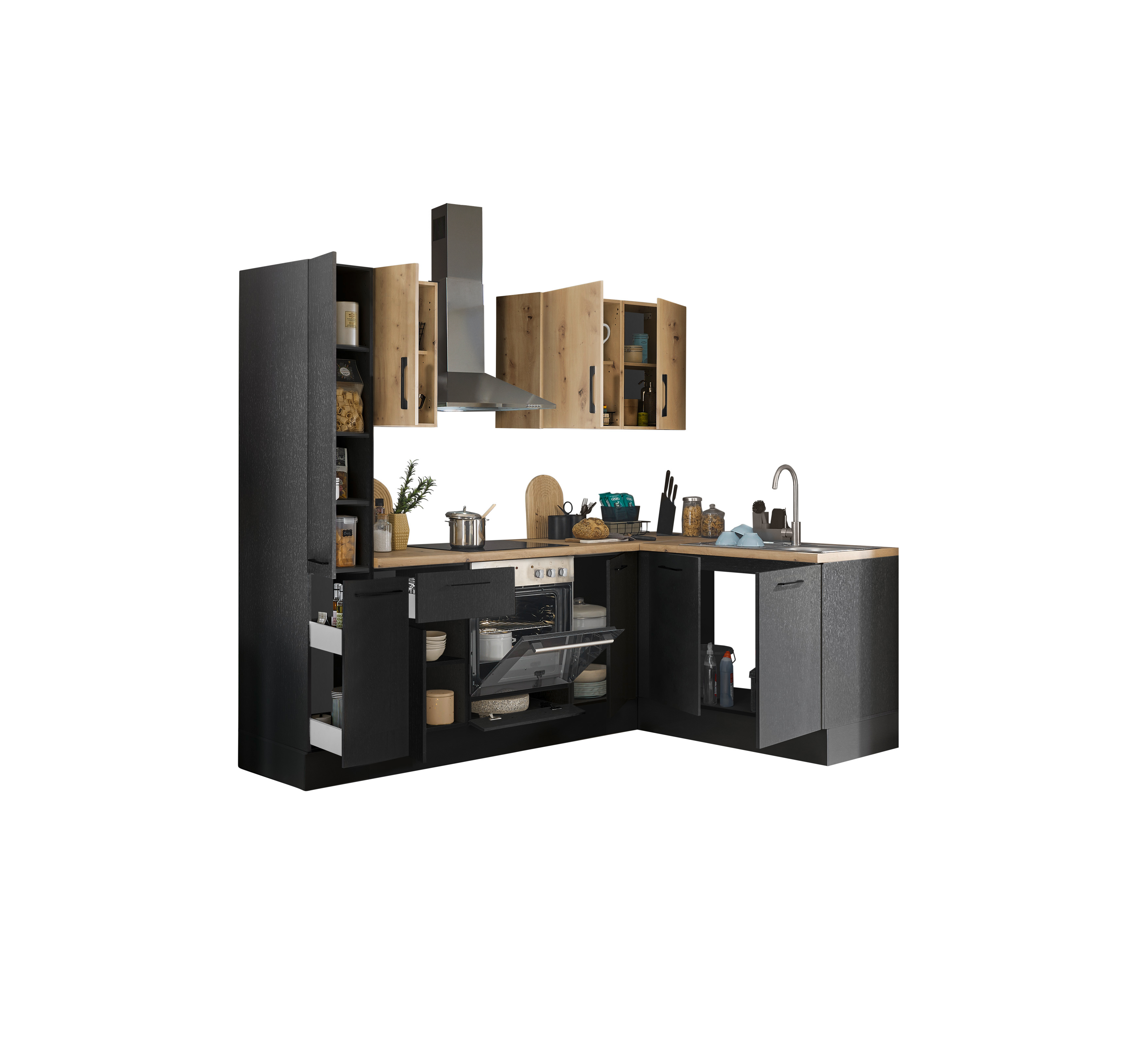 Bloc cuisine avec électroménager CORNWALL (cuisine d'angle-armoire coulissante) III