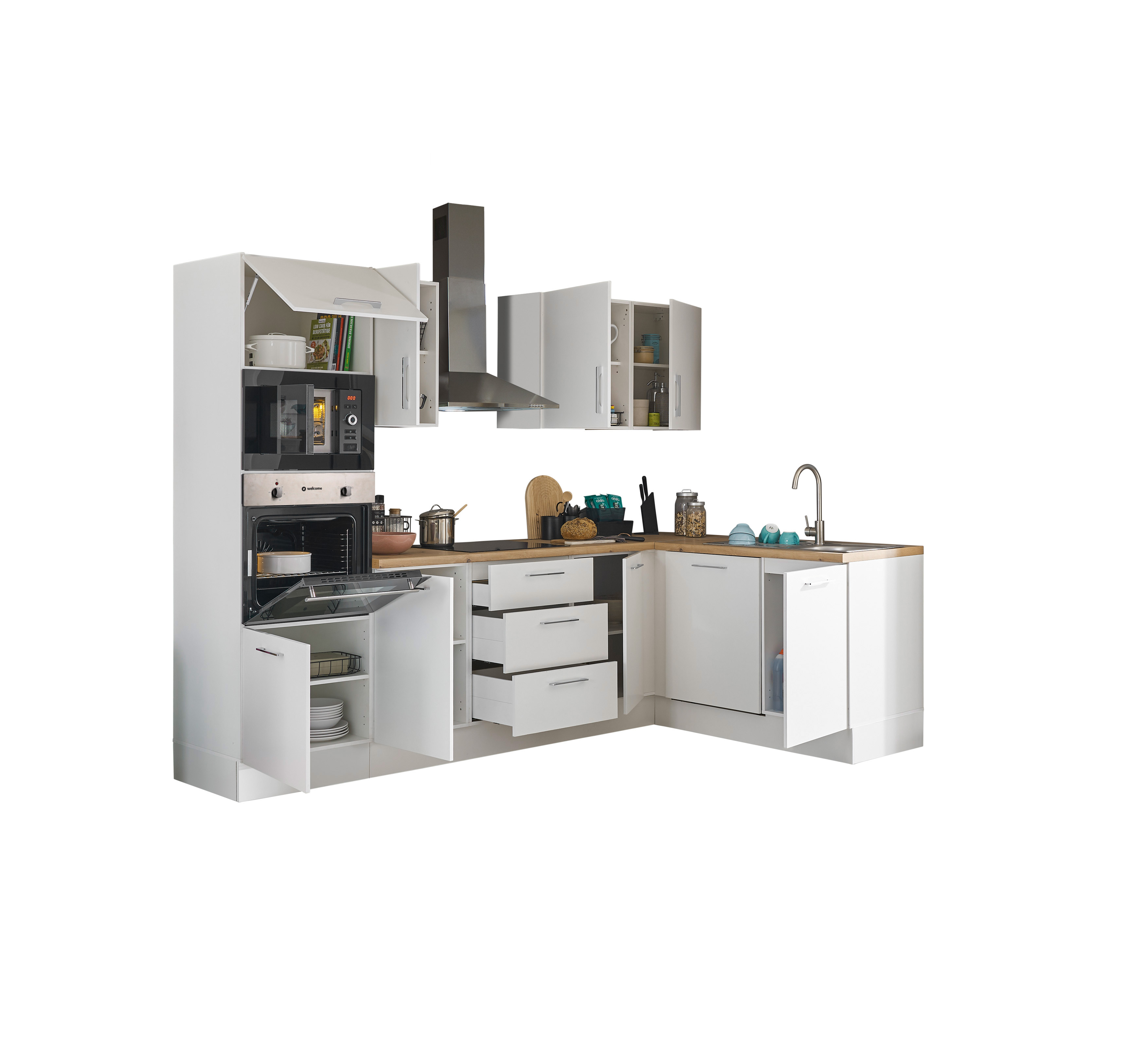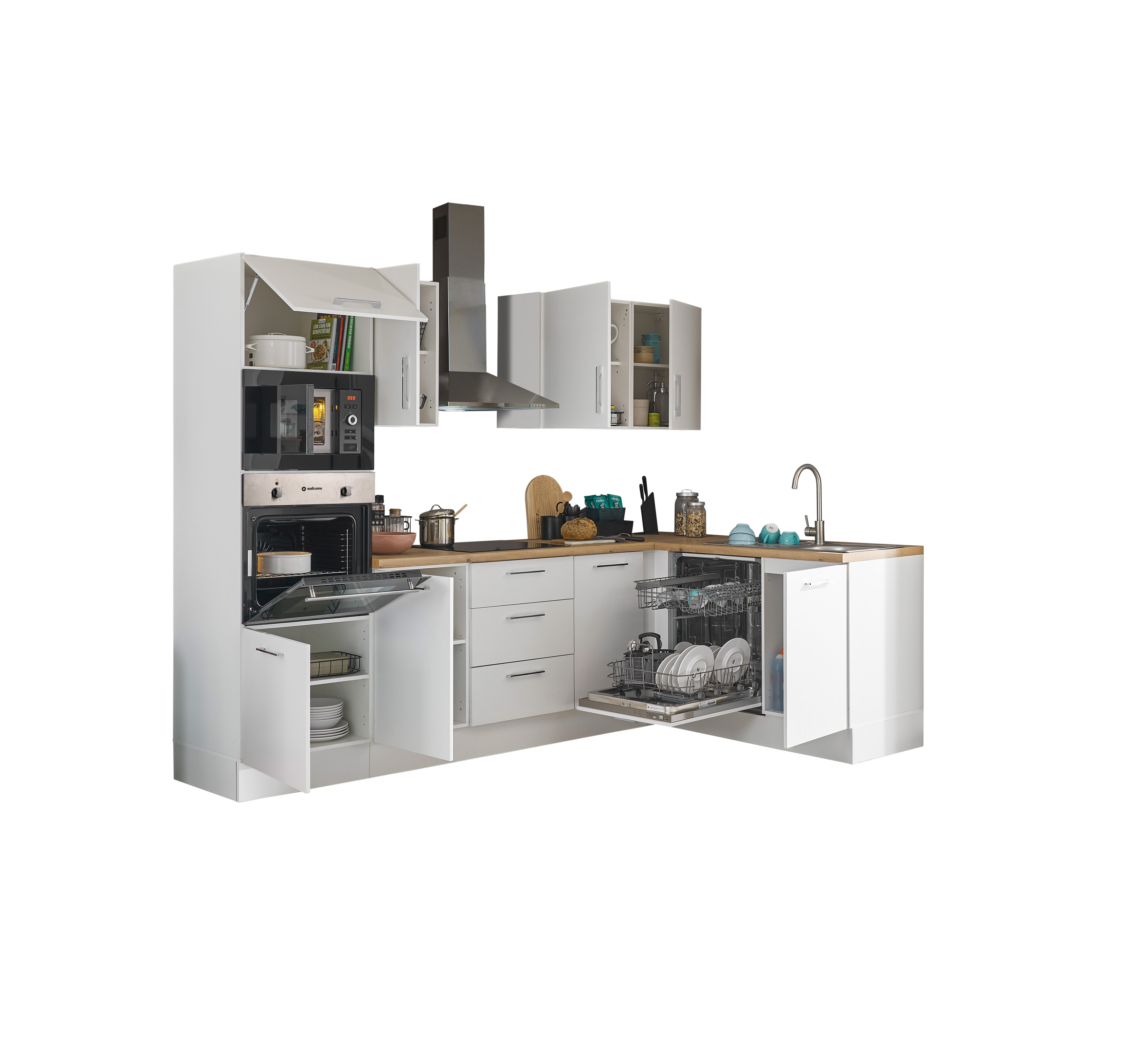 Bloc cuisine avec électroménager CORNWALL (cuisine d'angle-four-lave-vaisselle-micro-ondes) I