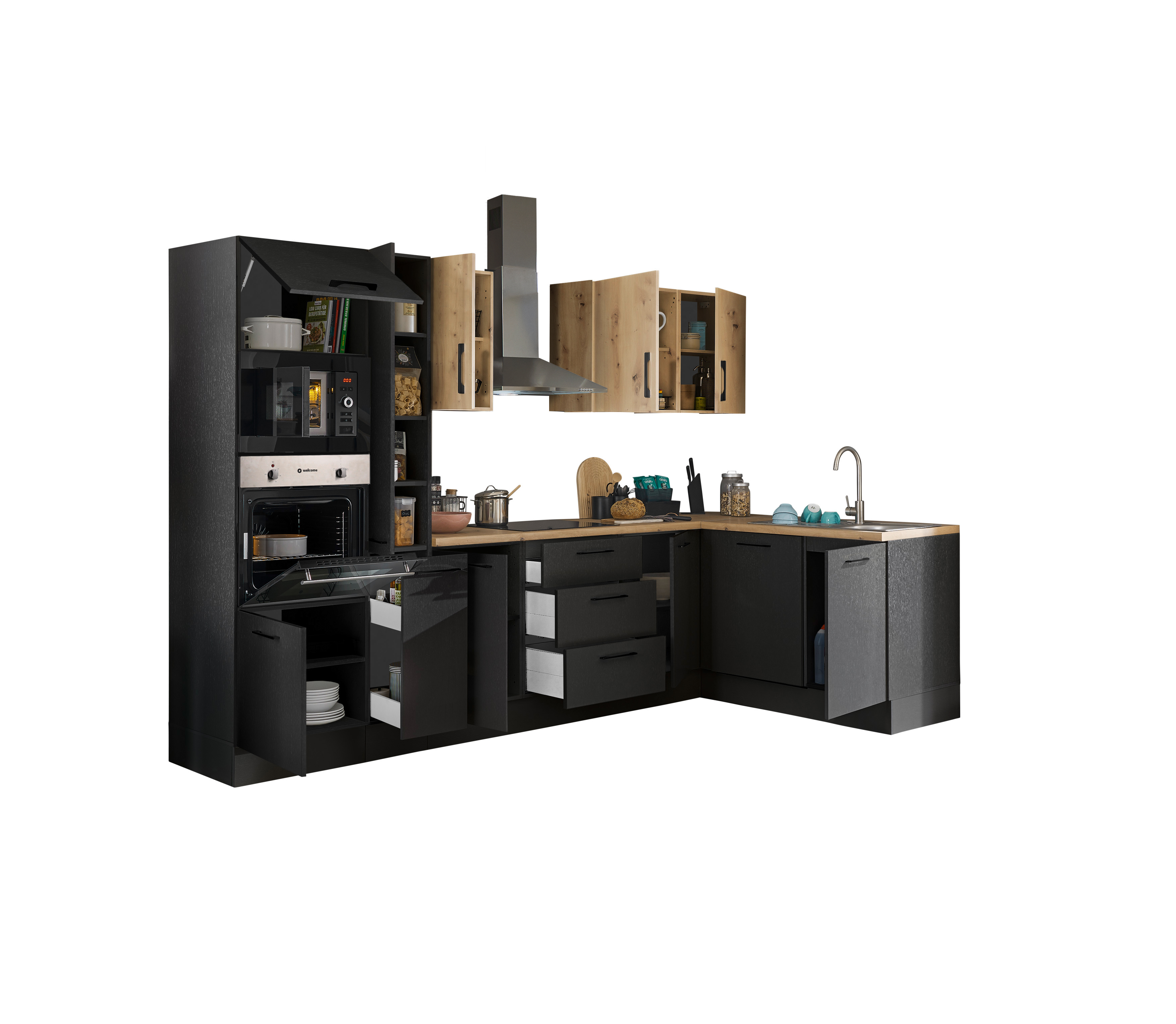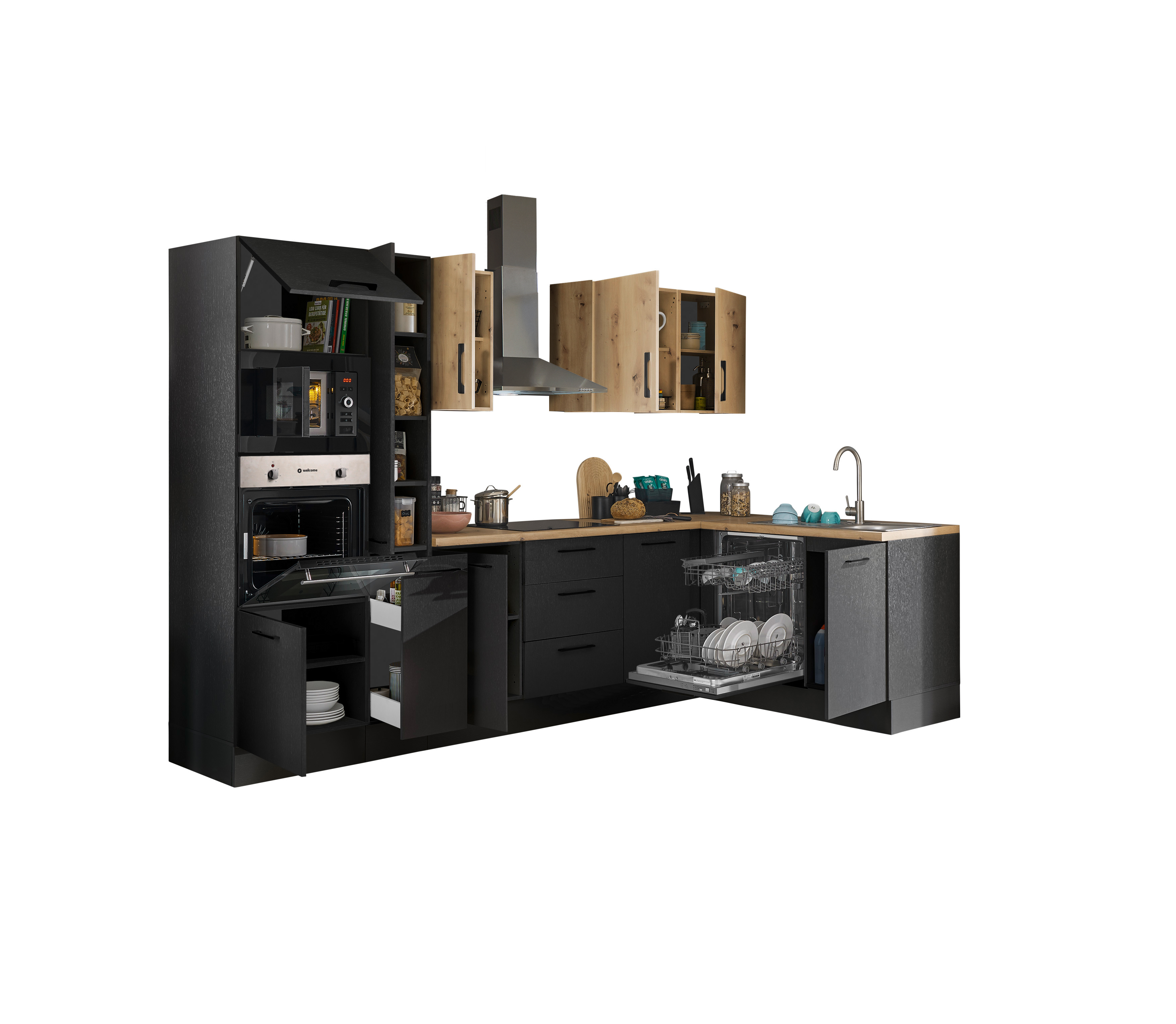 Bloc cuisine avec électroménager CORNWALL (cuisine d'angle-four-lave-vaisselle-micro-ondes) VII