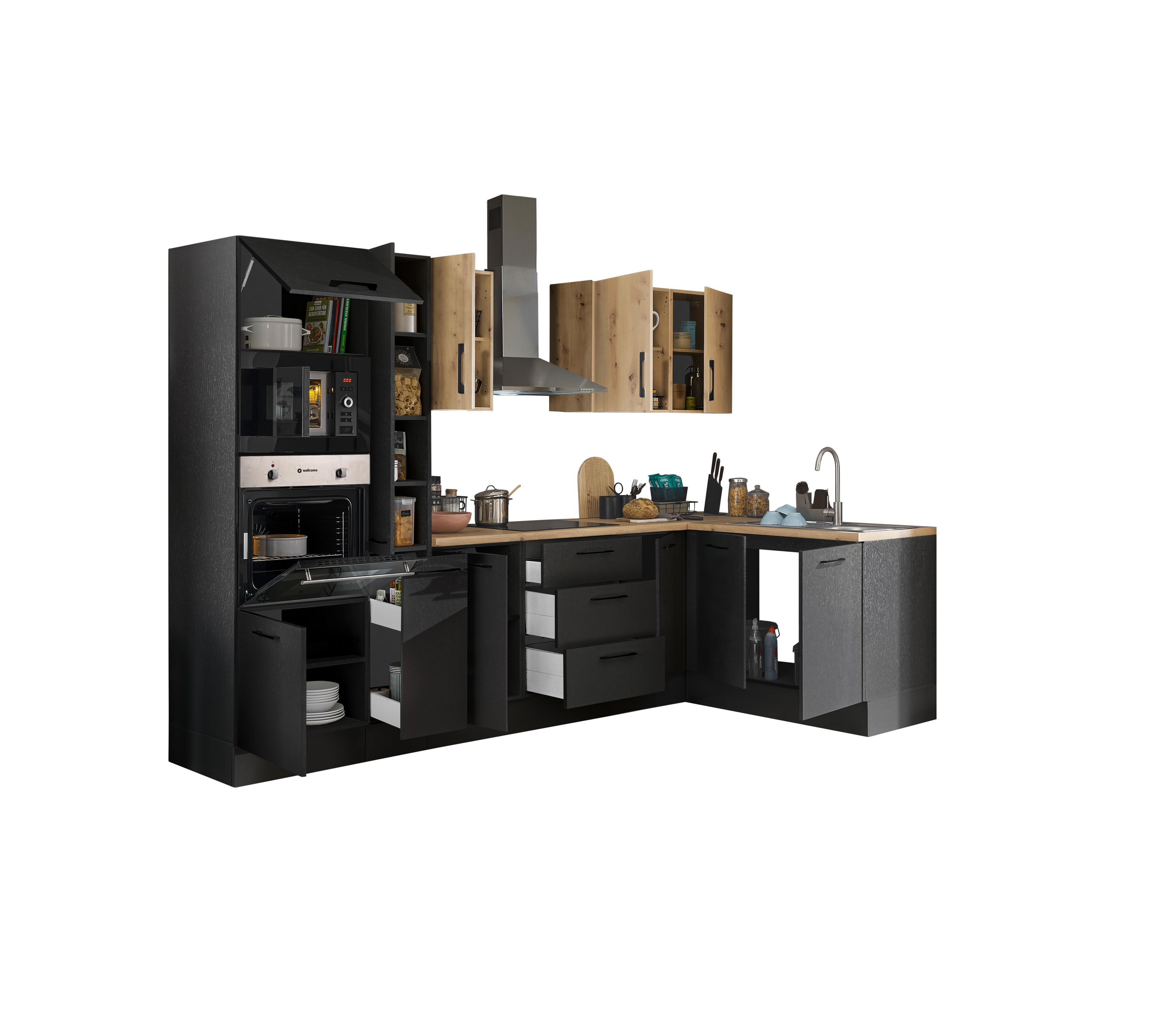Bloc cuisine avec électroménager CORNWALL (cuisine d'angle-four-micro-ondes-armoire coulissante) III