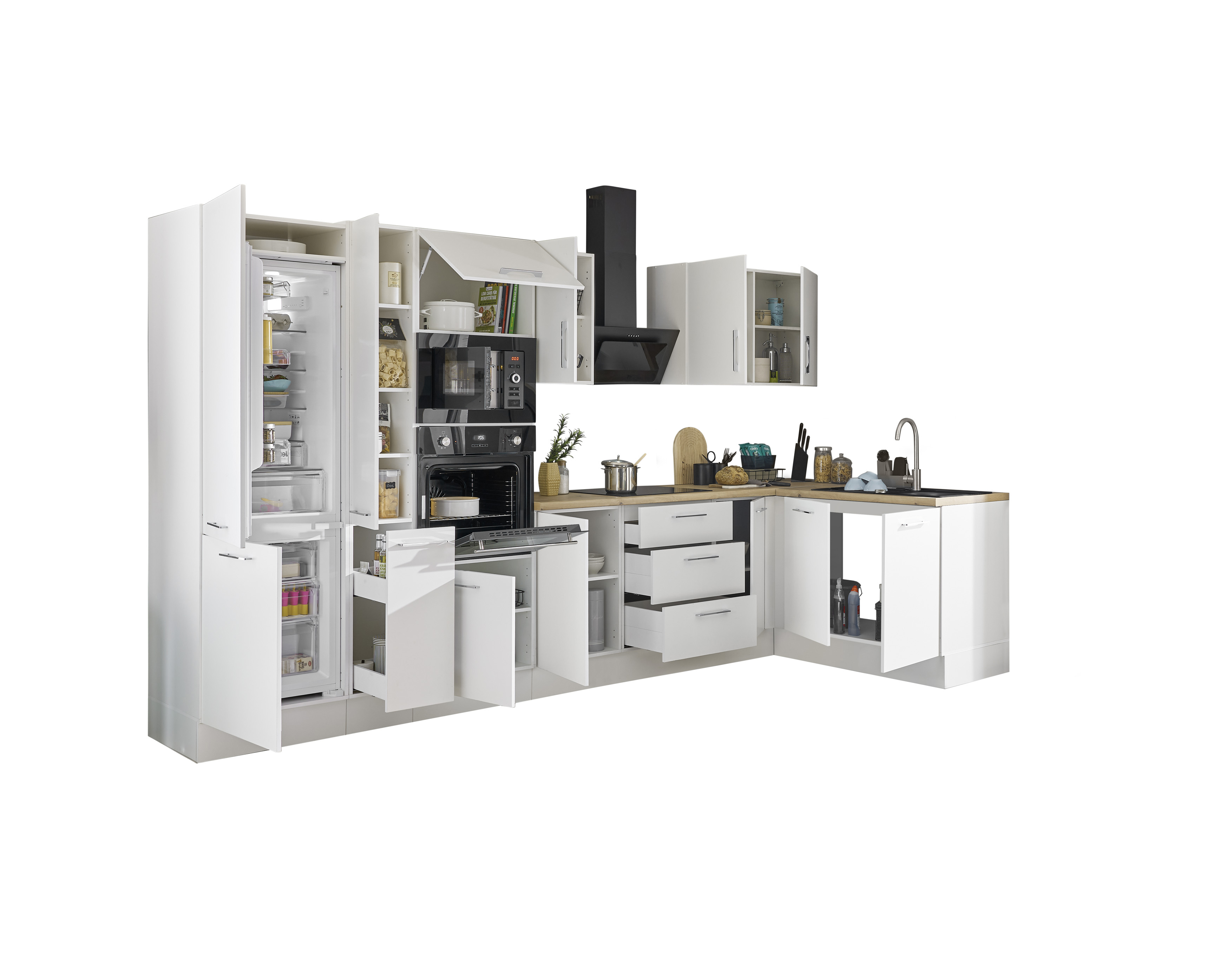 Bloc cuisine avec électroménager CORNWALL (cuisine d'angle-four-réfrigérateur-micro-ondes-armoire coulissante) II