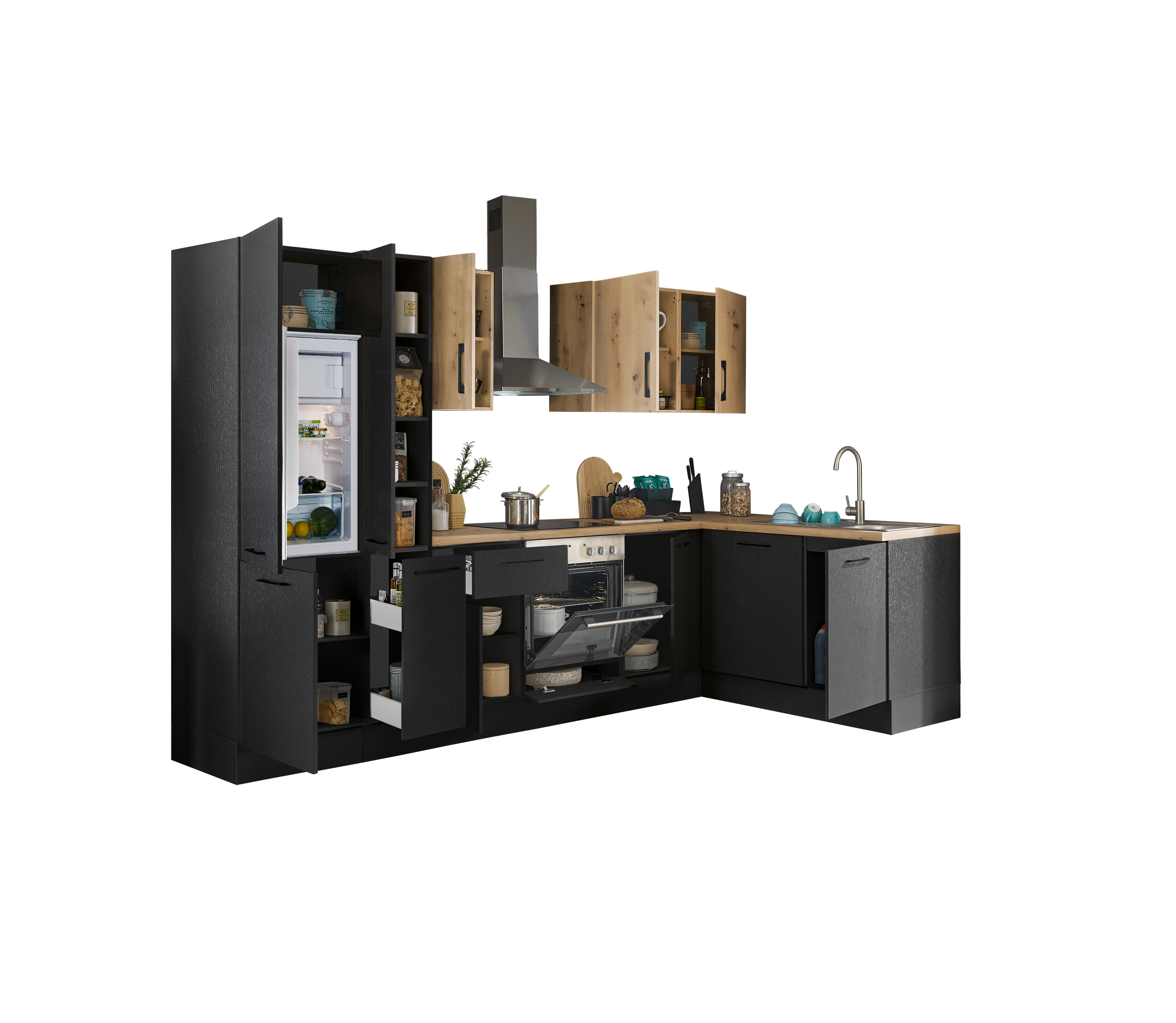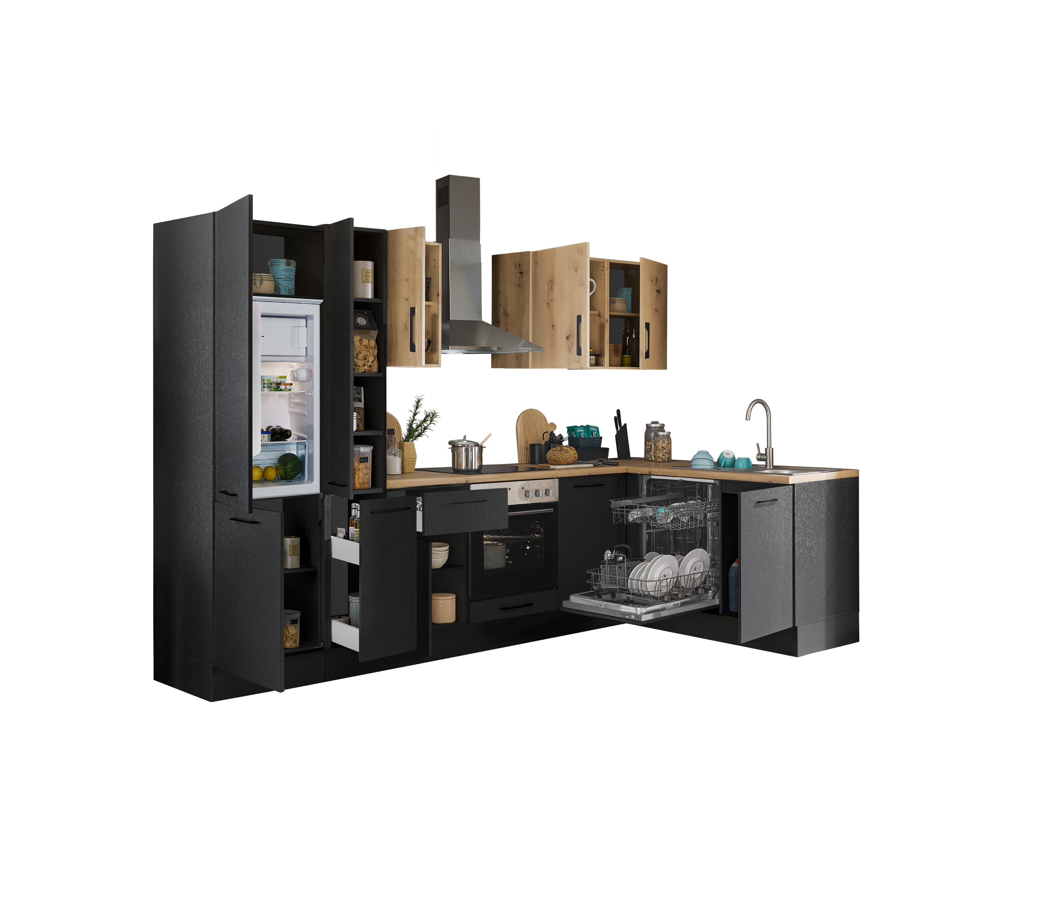 Bloc cuisine avec électroménager CORNWALL (cuisine d'angle-lave-vaisselle-réfrigérateur-armoire coulissante) III