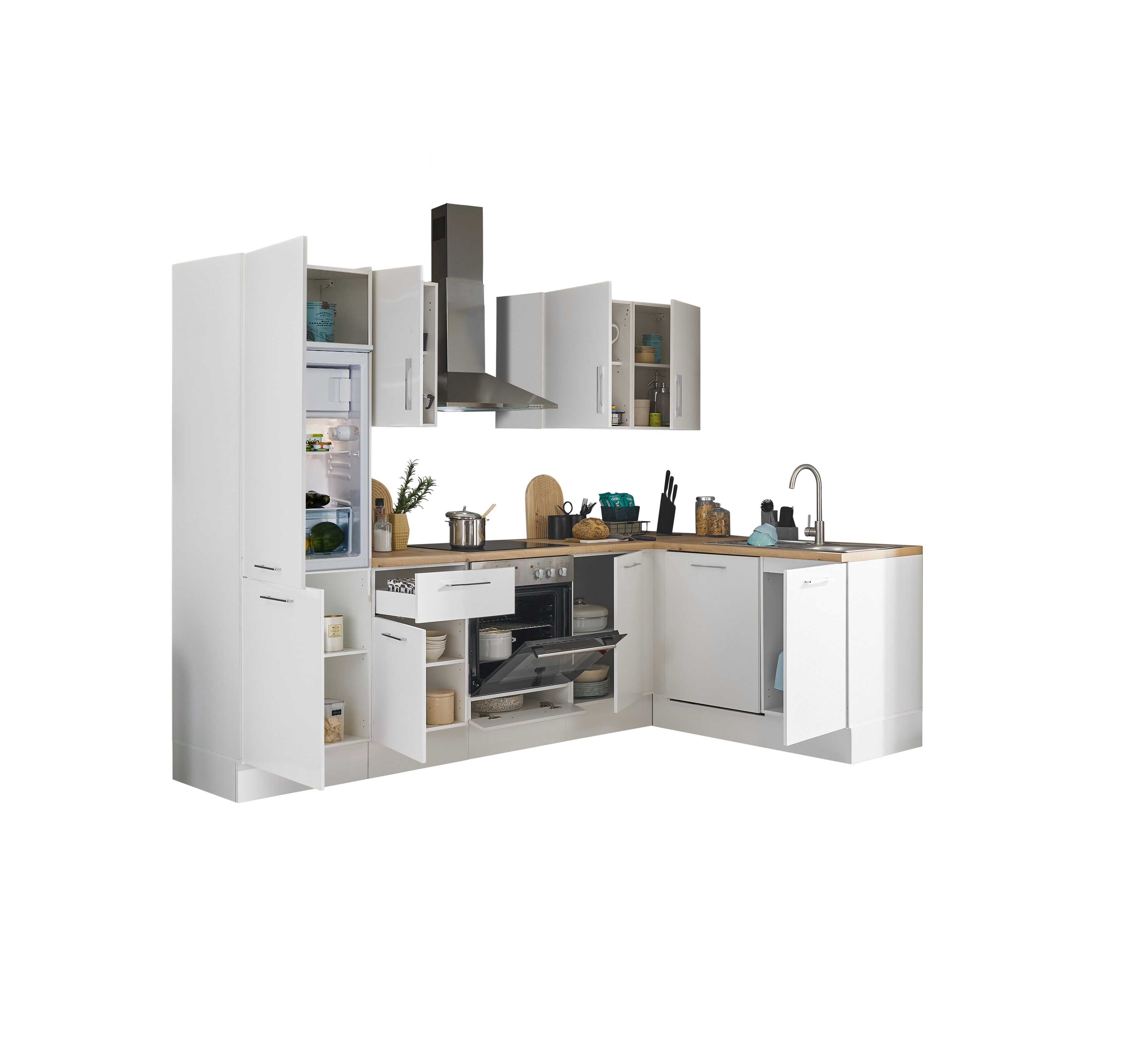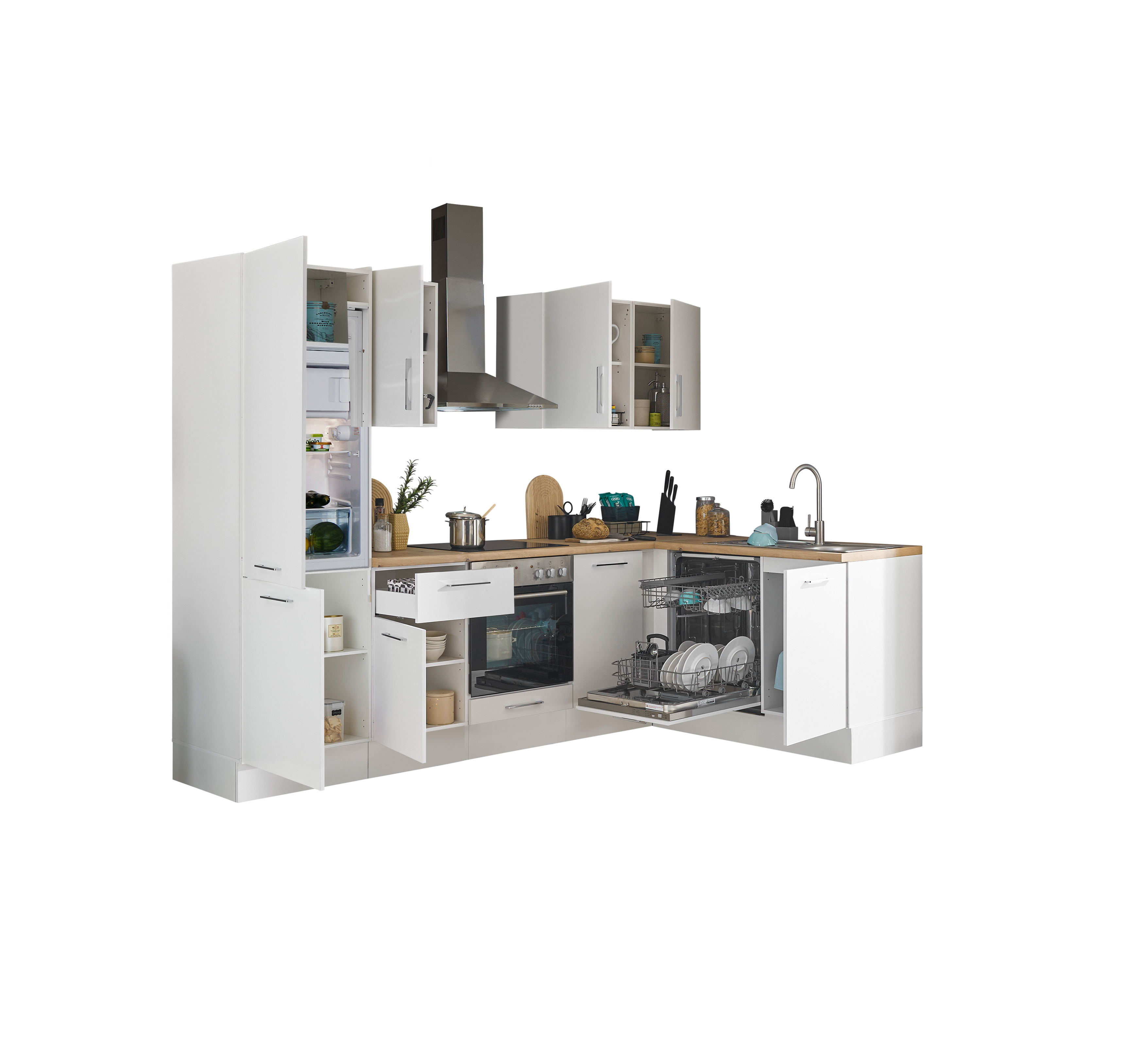 Bloc cuisine avec électroménager CORNWALL (cuisine d'angle-lave-vaisselle-réfrigérateur) I