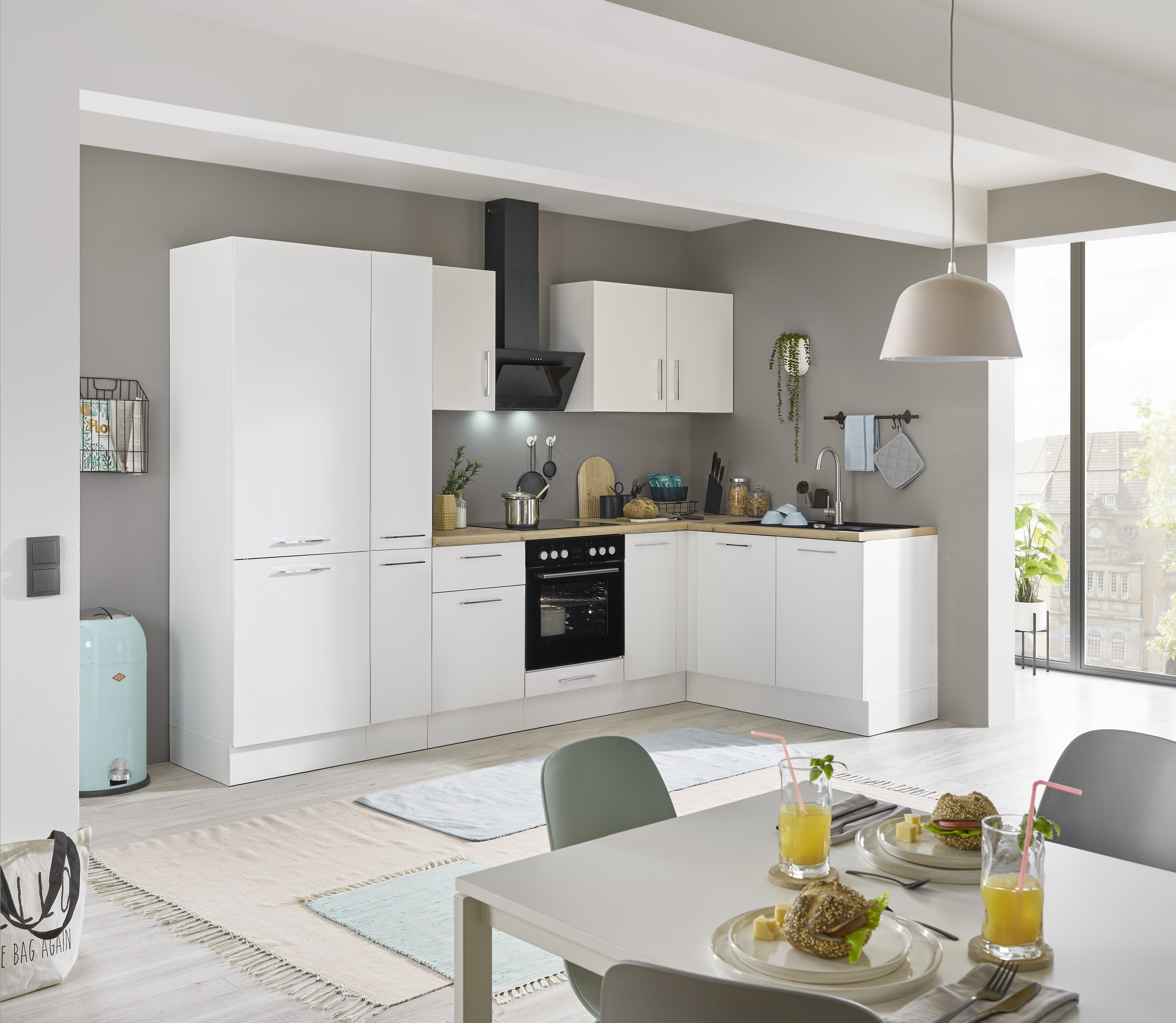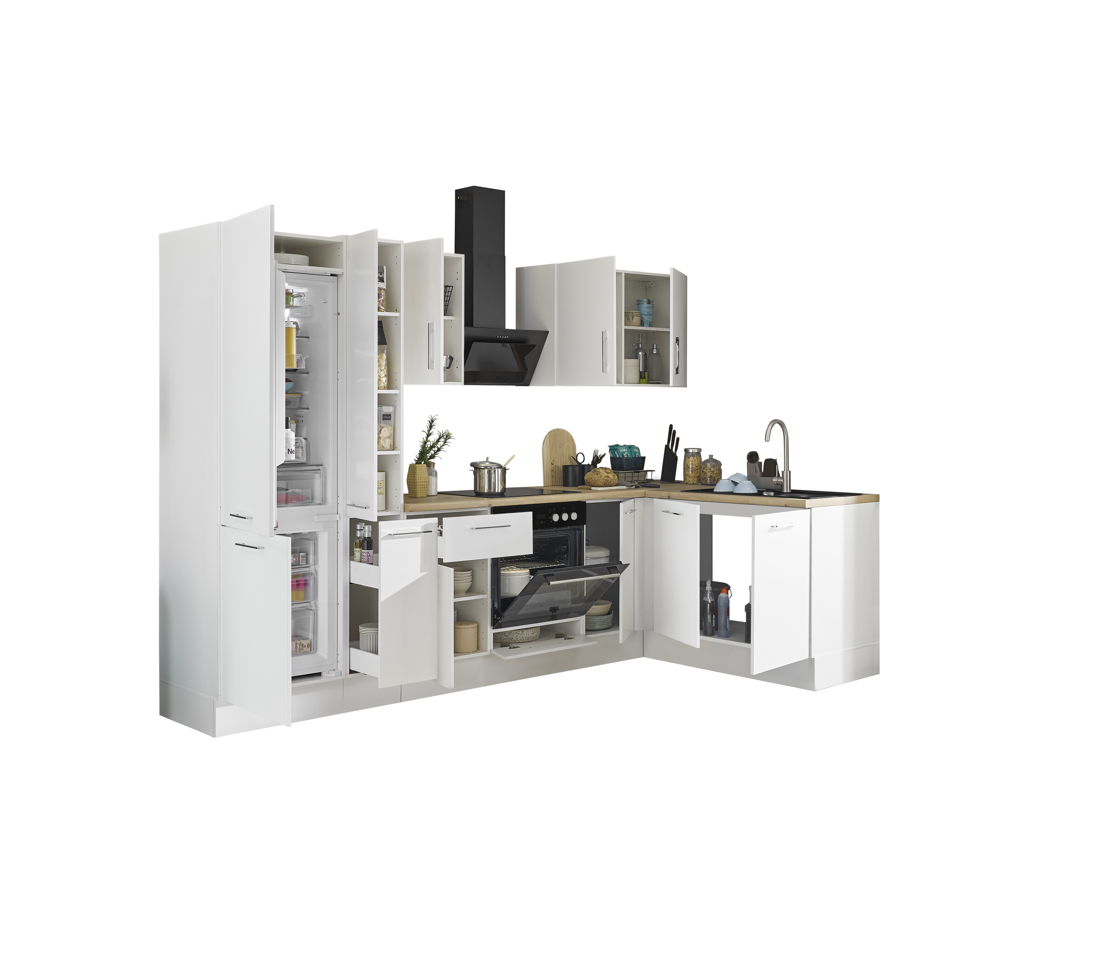 Bloc cuisine avec électroménager CORNWALL (cuisine d'angle-réfrigérateur-armoire coulissante) II