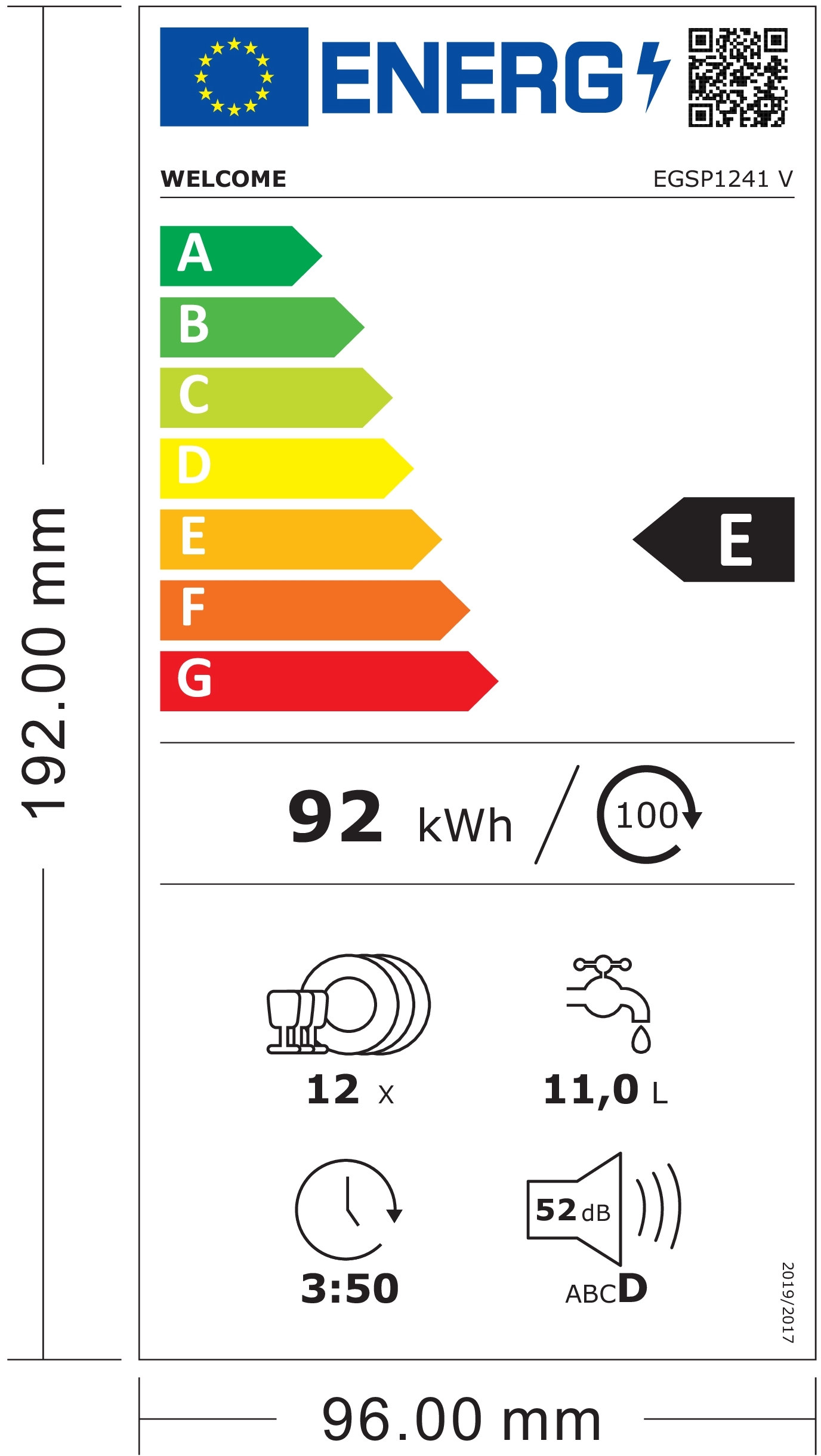 Consommation énergétique programme standard : env. 0,92 KW/h