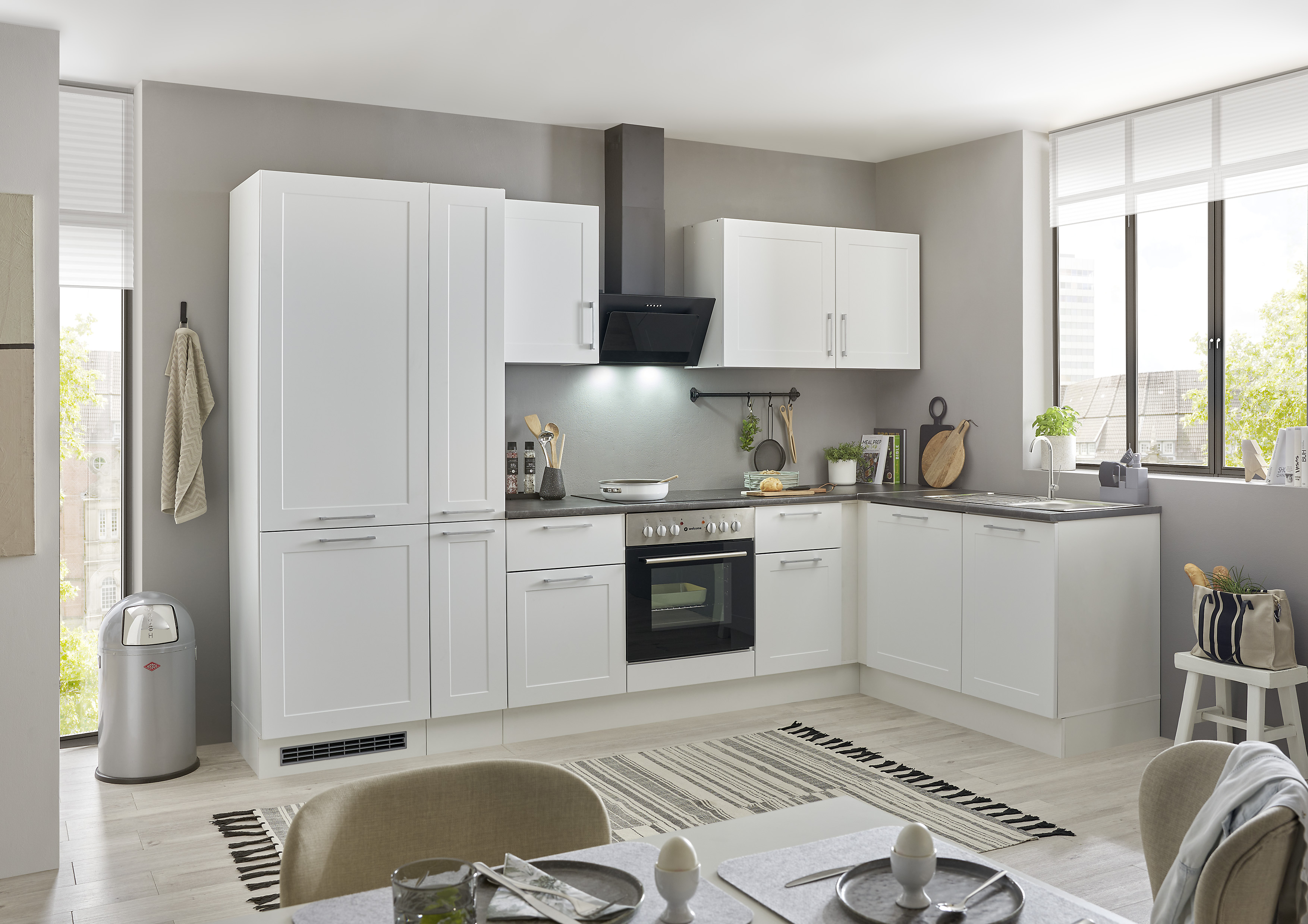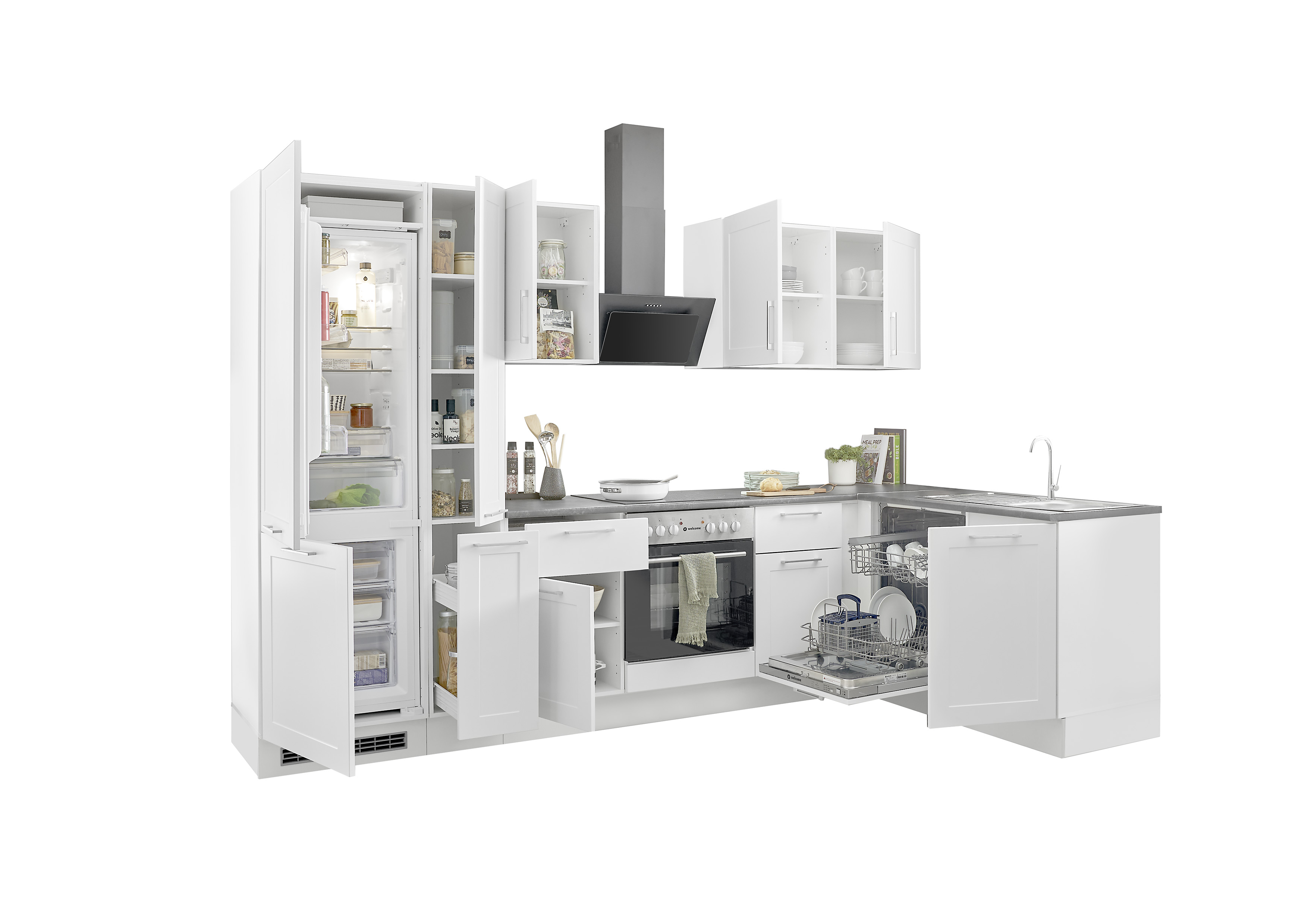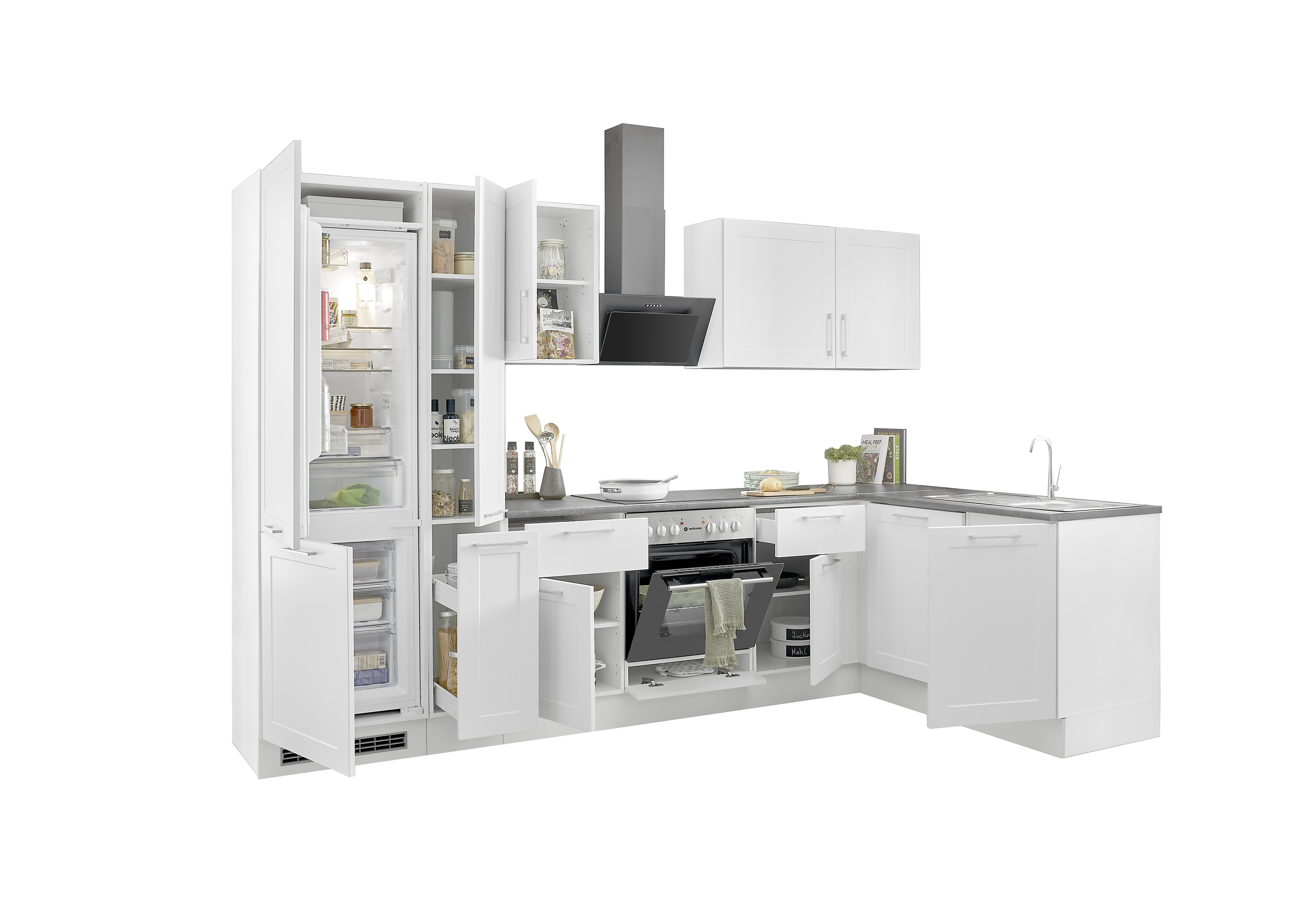 Bloc cuisine avec électroménager HASTINGS (cuisine d'angle-frigo-armoire coulissante) I