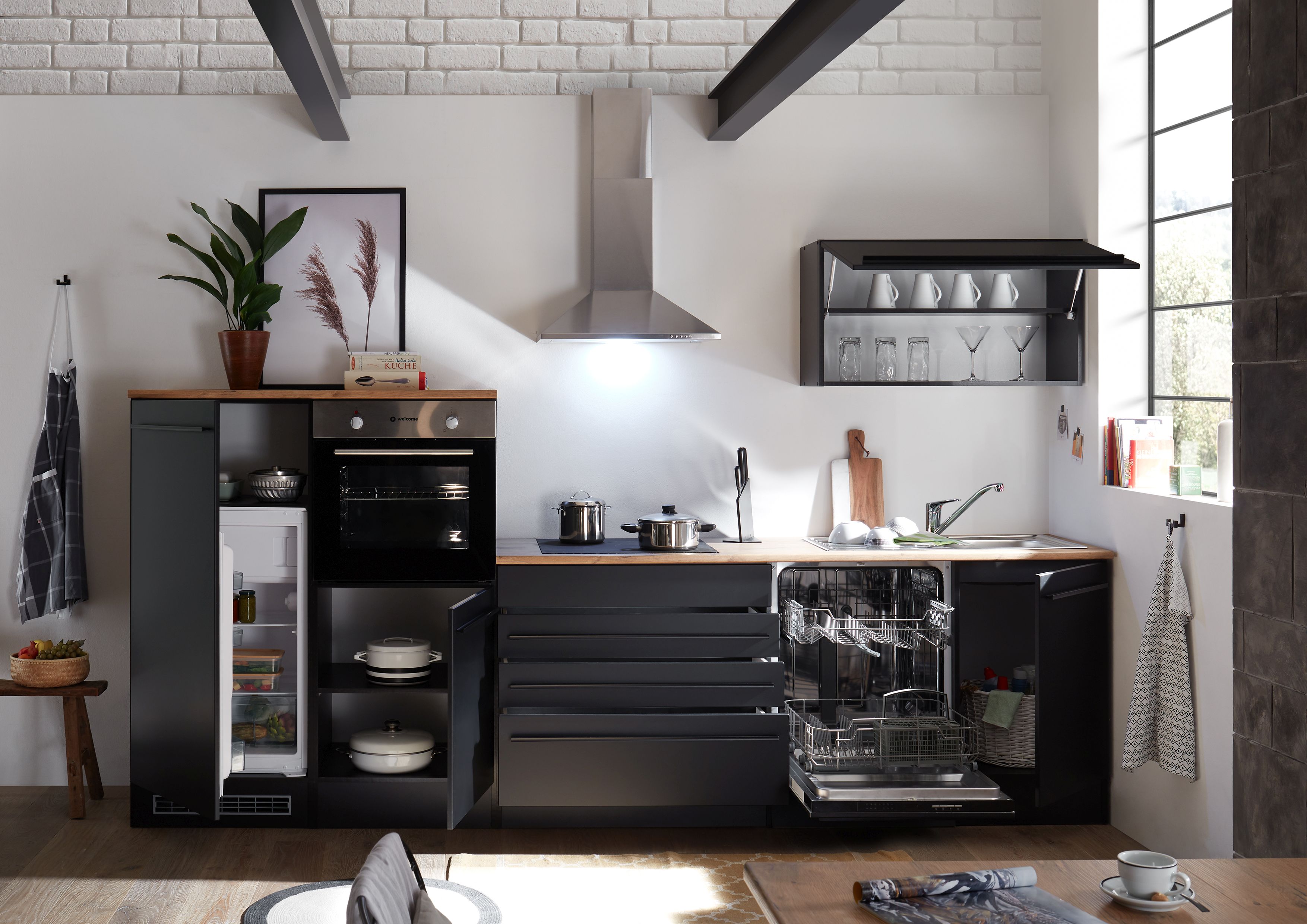 Façade : MDF noir mat (panneaux de fibres de bois de densité moyenne) thermoformé