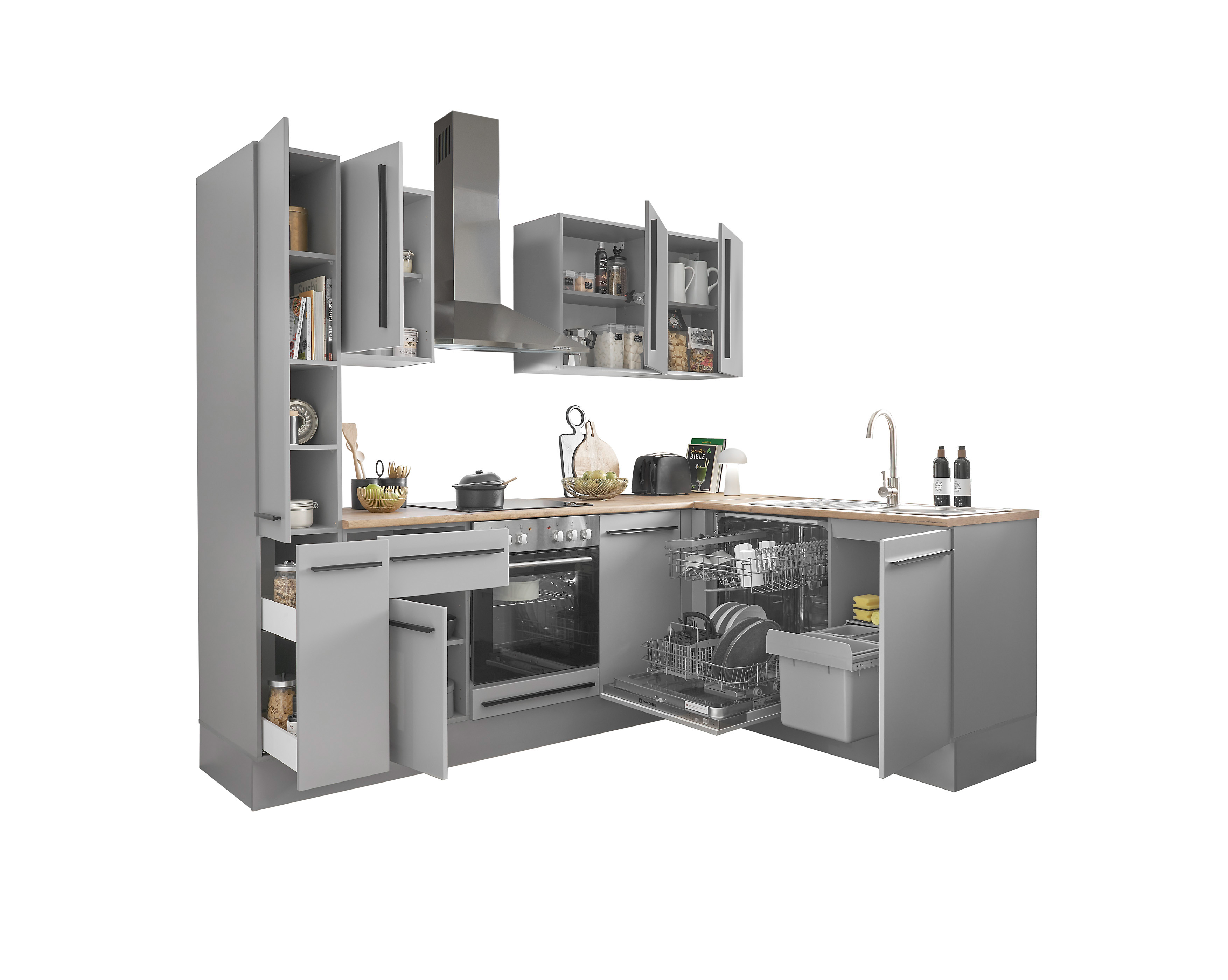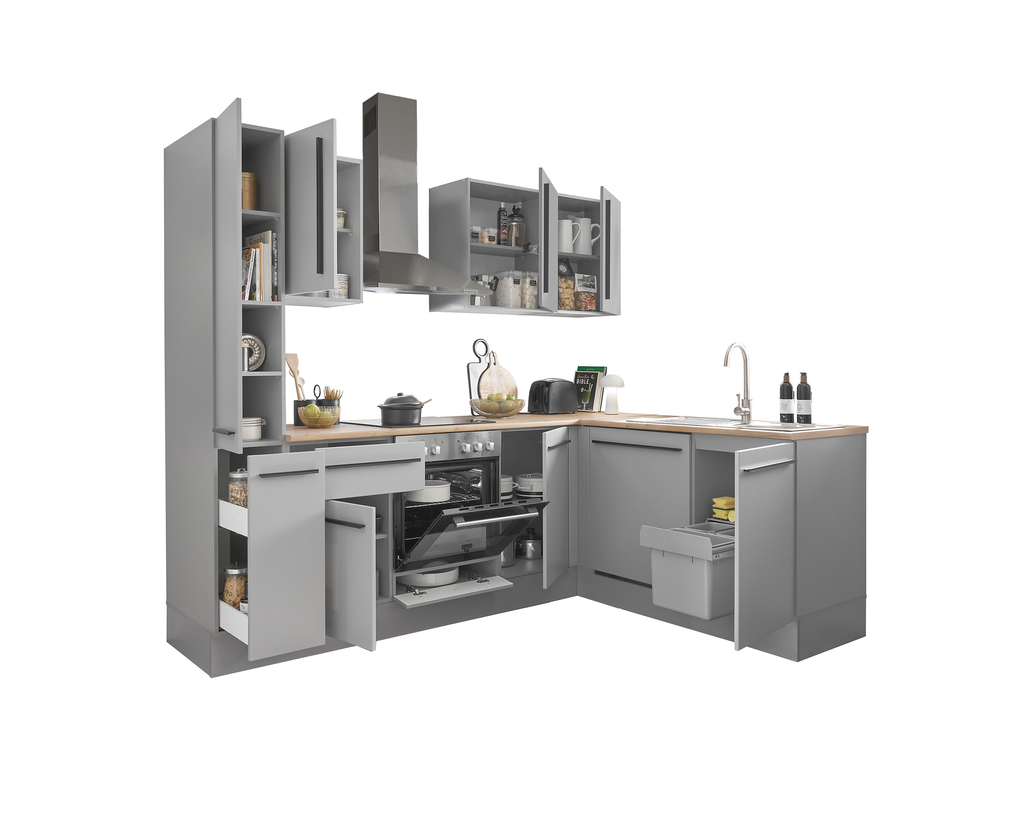 Bloc cuisine avec électroménager MANCHESTER (angle-armoire coulissante) I