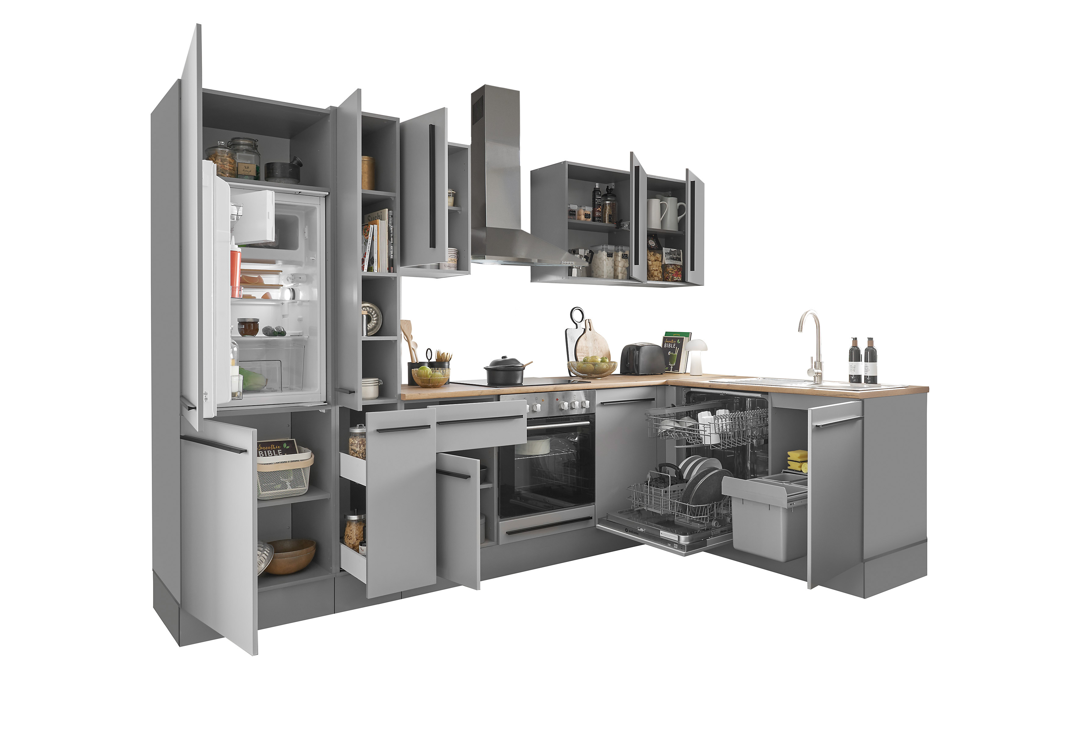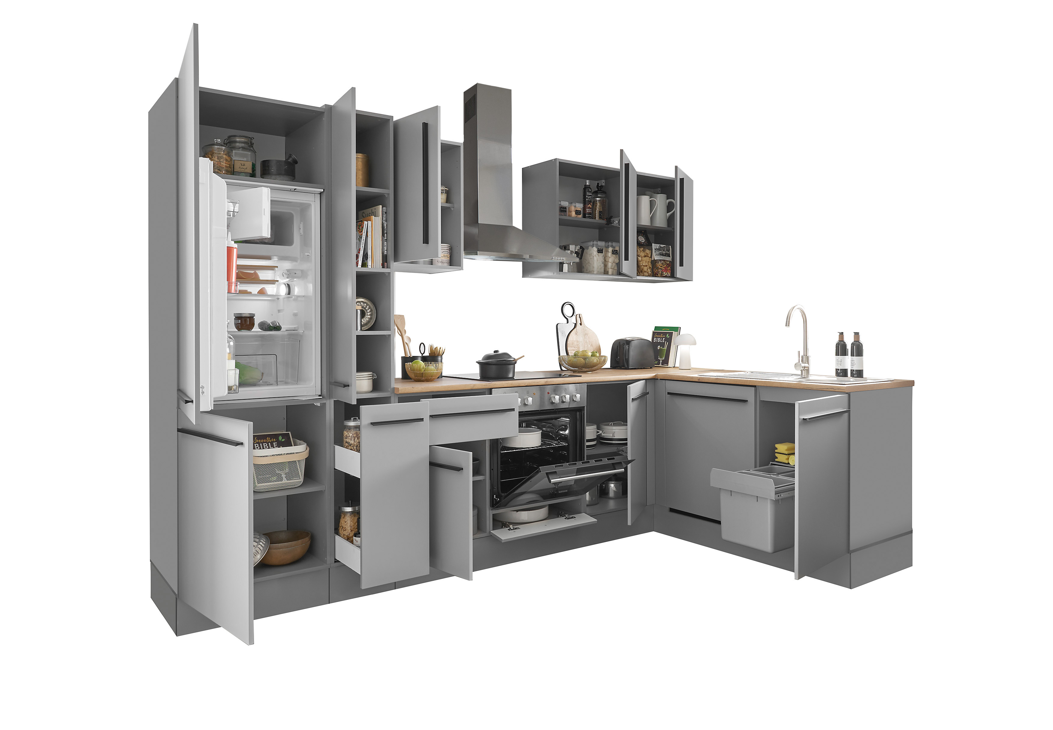 Bloc cuisine avec électroménager MANCHESTER (angle-réfrigérateur-armoire coulissante) I