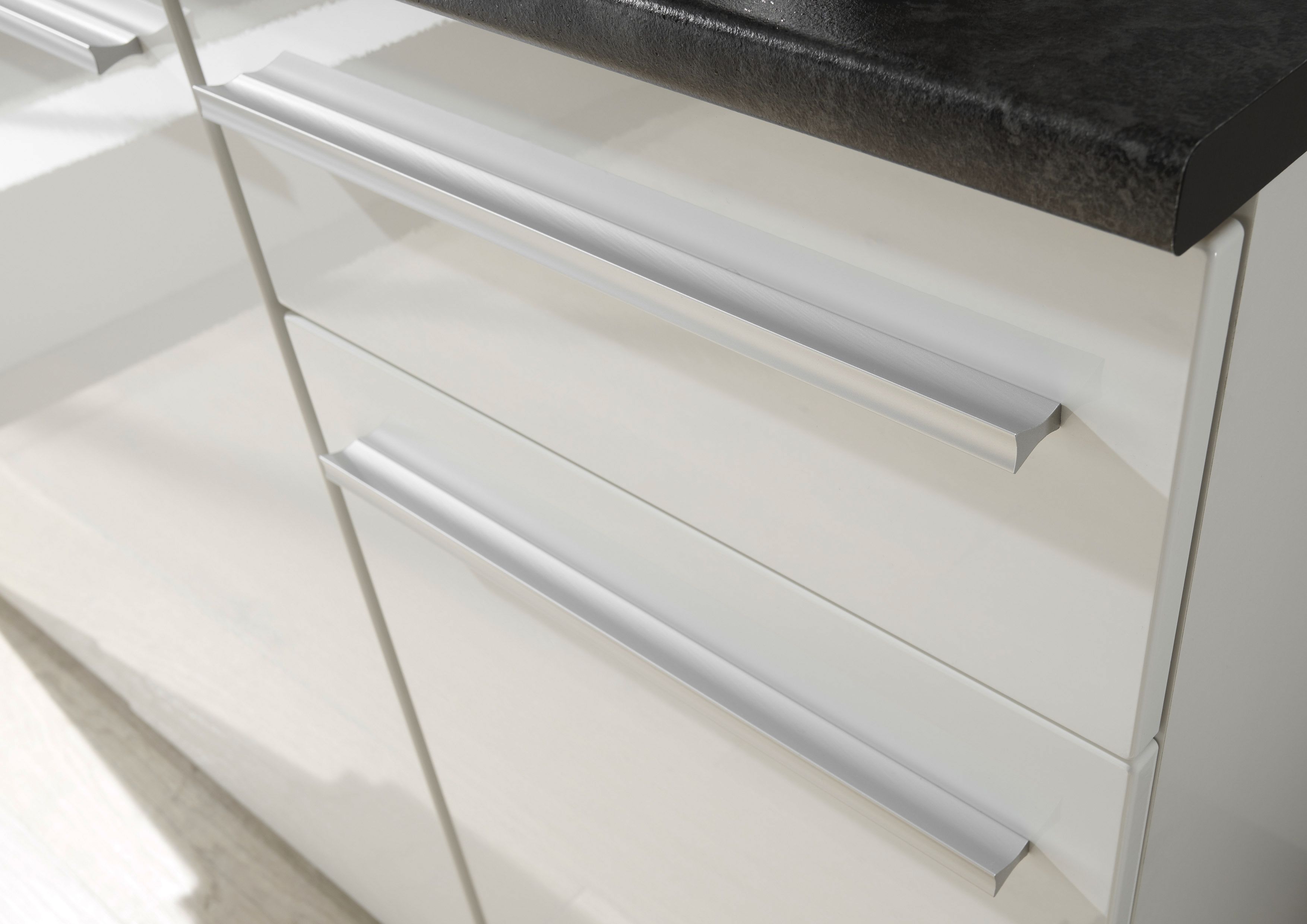 Poignées : matière synthétique aspect métal mat