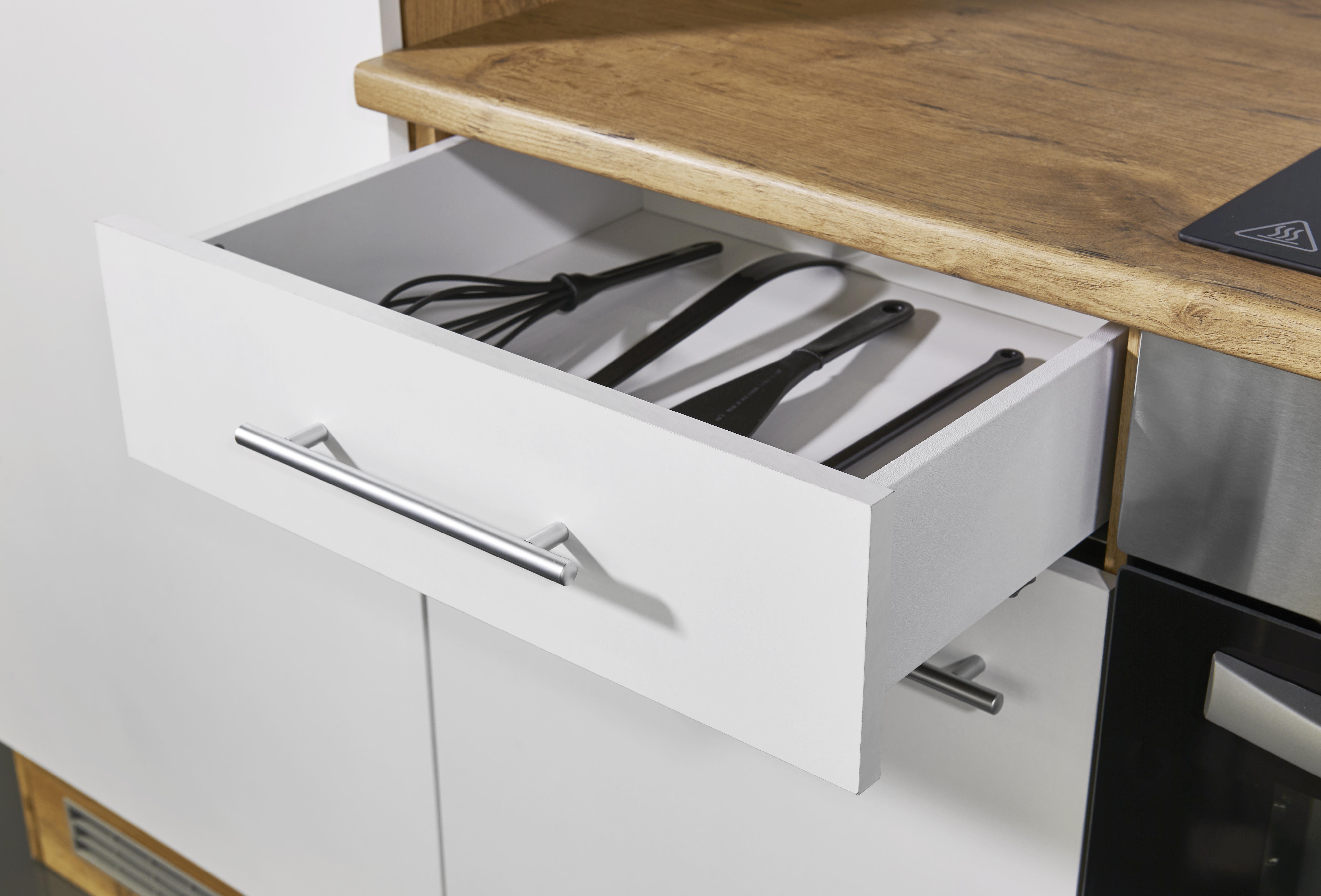 1 meuble bas avec 1 tiroir (système de coulisses sous tiroir), 1 porte et 1 tablette amovible