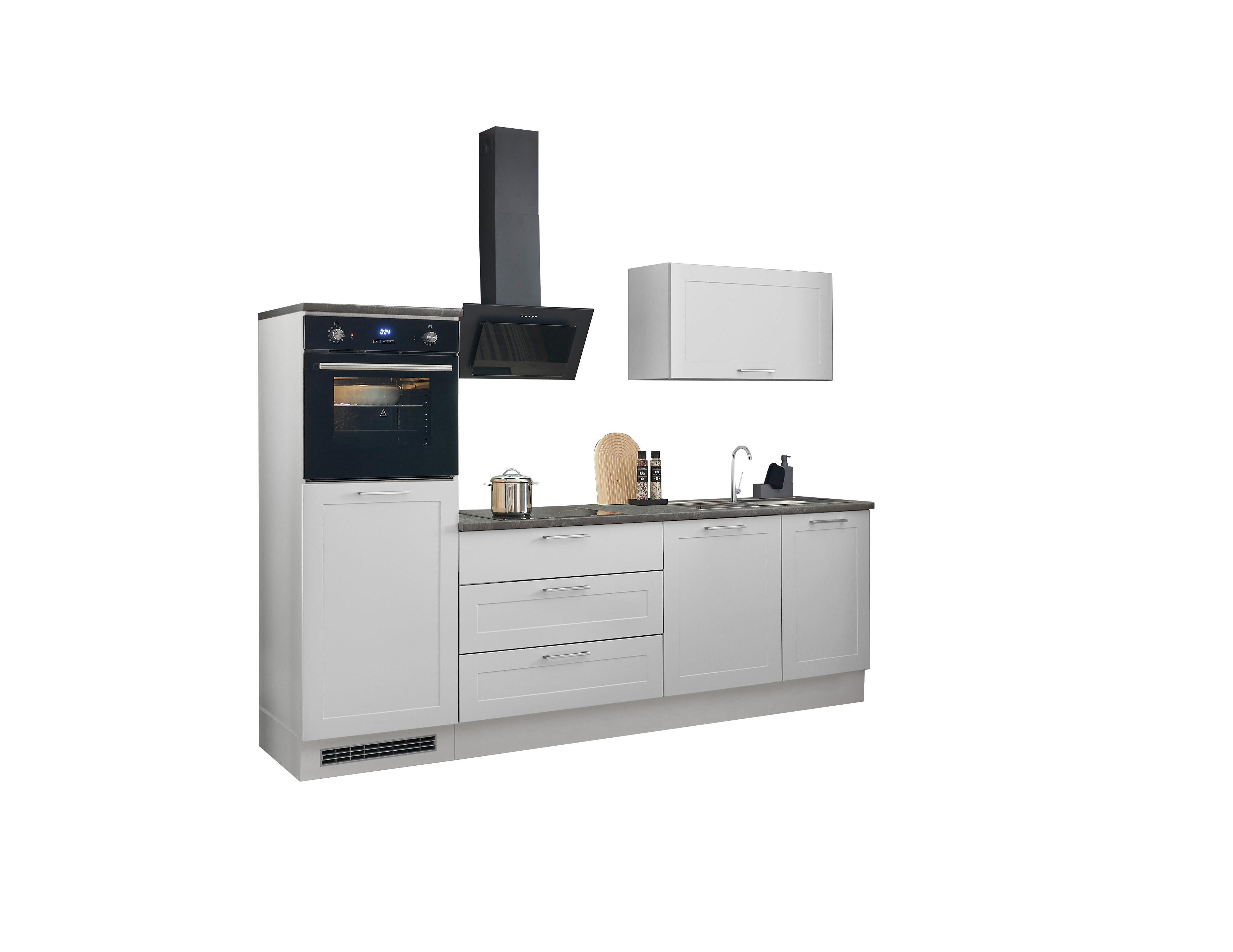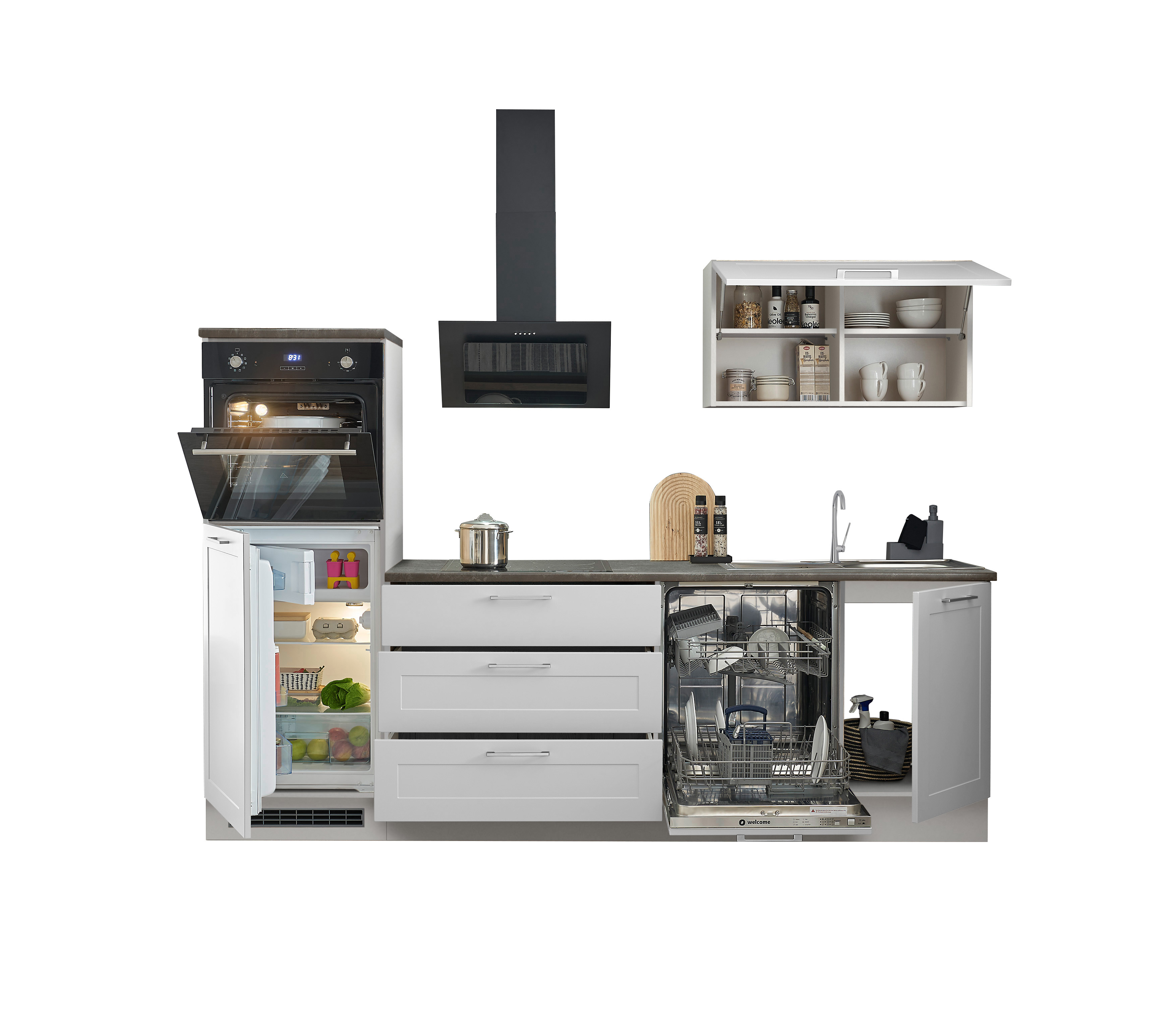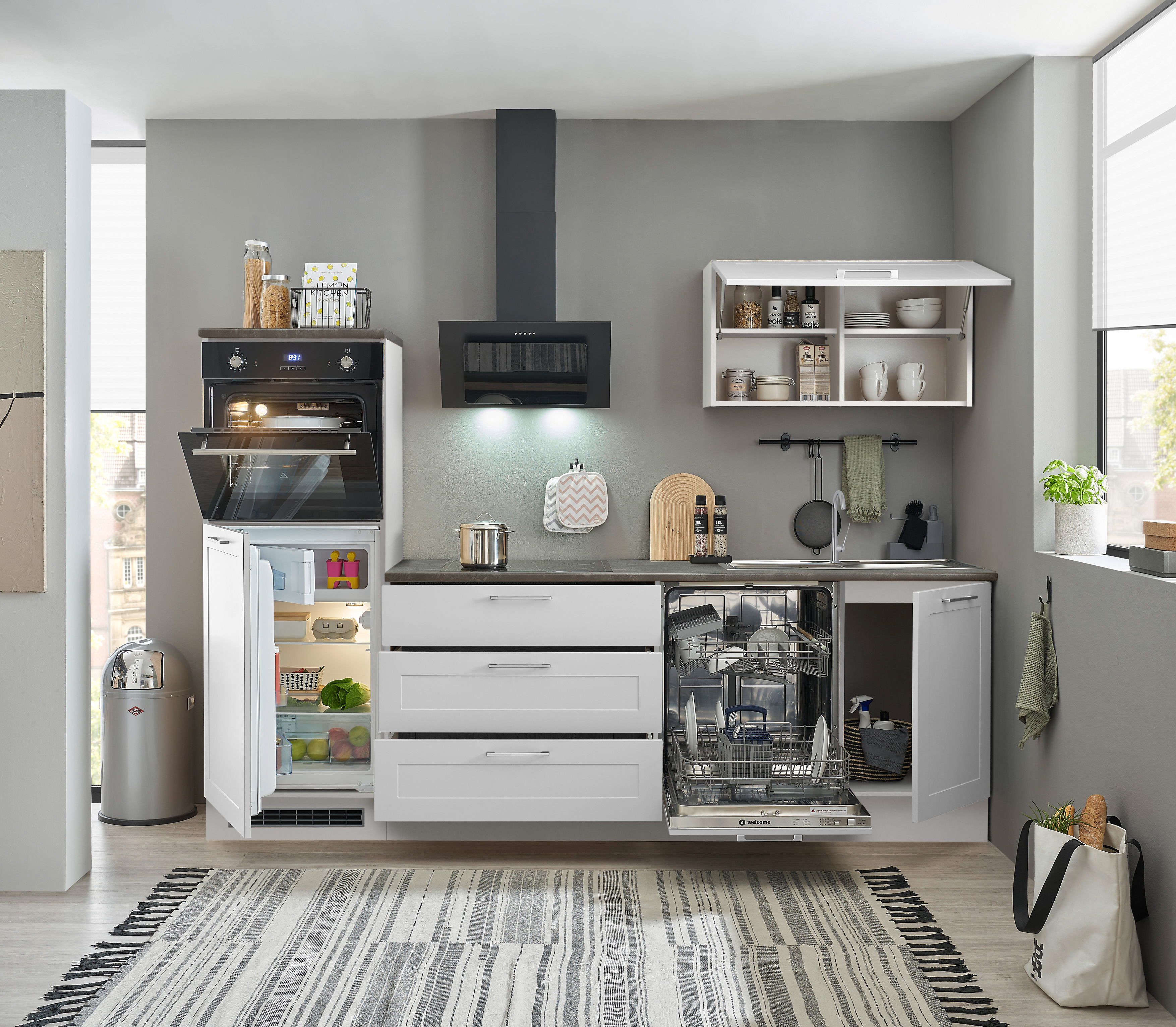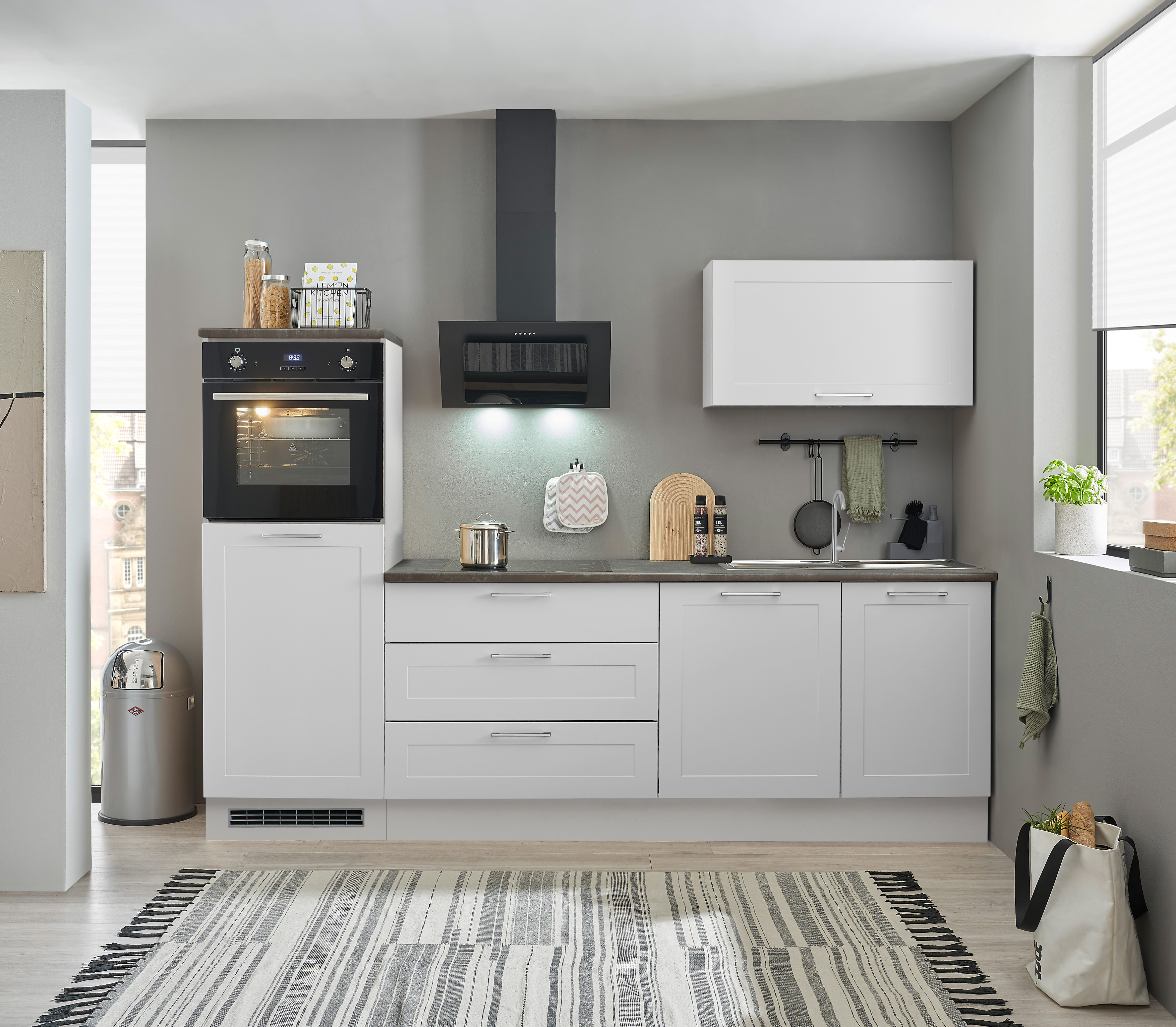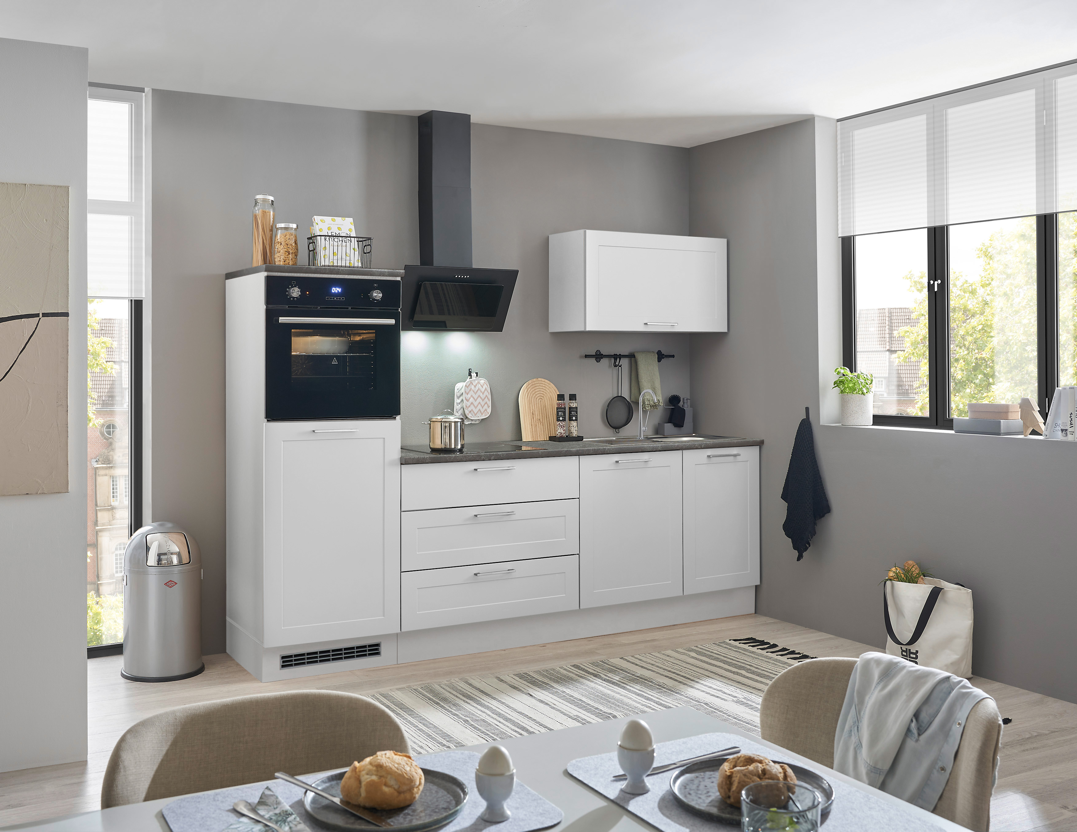 Un bloc cuisine élégant en blanc classique qui séduit par son design intemporel et son agencement pratique. Idéale pour les appartements, les bureaux ou les résidences secondaires, cette cuisine offre tout ce dont vous avez besoin au quotidien.