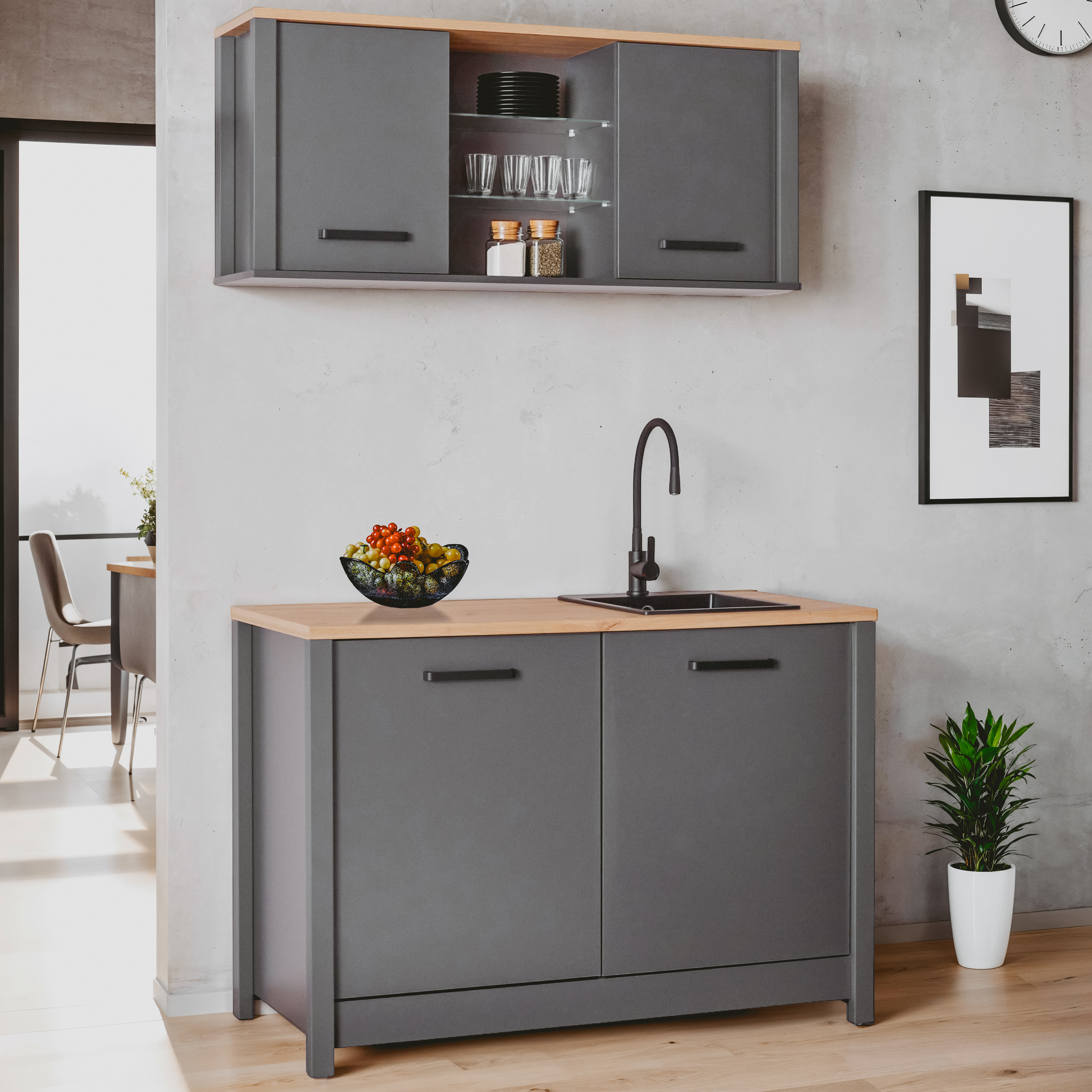 Façade et caisson : MDF (panneaux en fibres de bois de densité moyenne), panneaux de particules ton anthracite