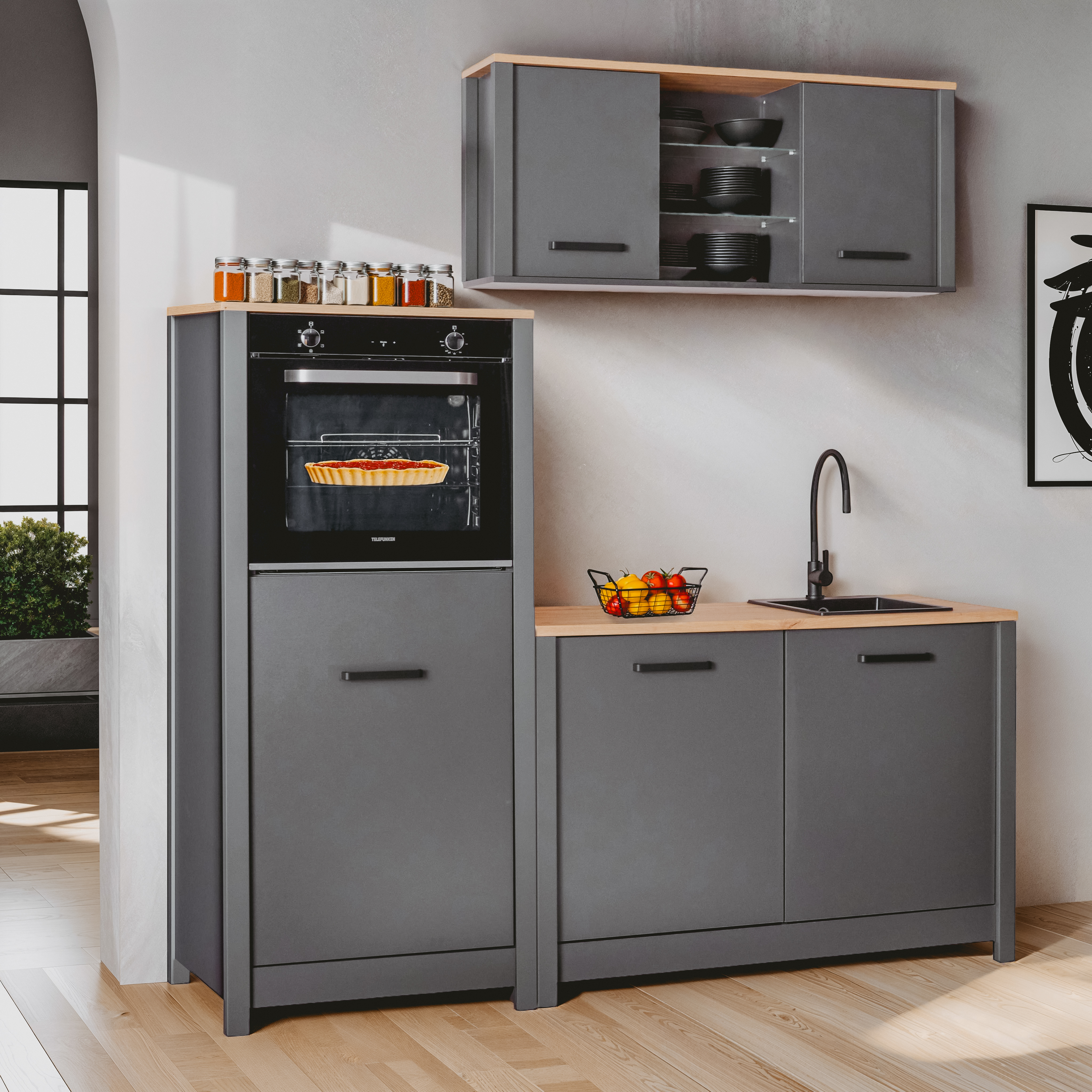 Façade et caisson : MDF (panneaux en fibres de bois de densité moyenne), panneaux de particules ton anthracite