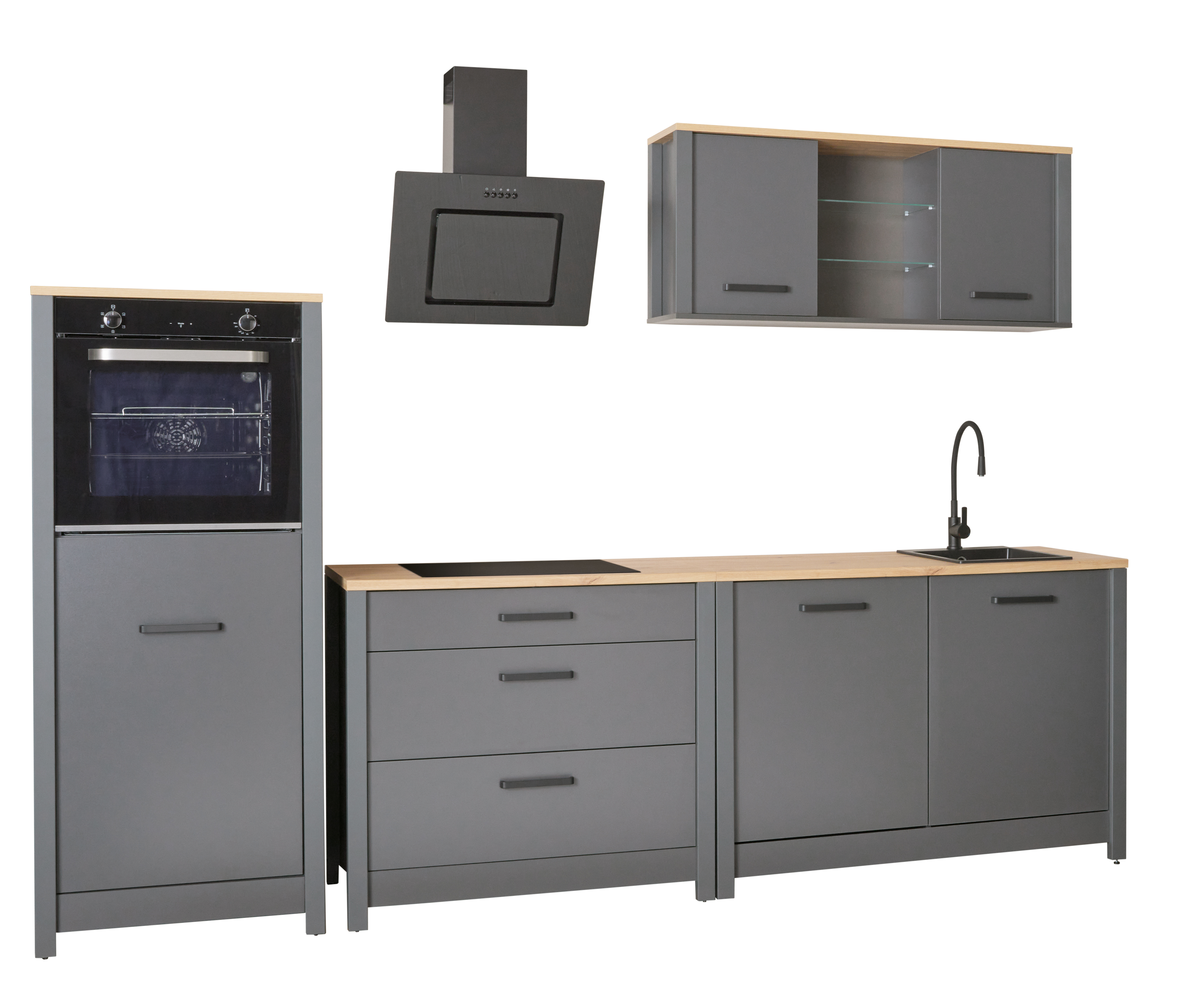 Façade et caisson : MDF (panneaux en fibres de bois de densité moyenne), panneaux de particules ton anthracite