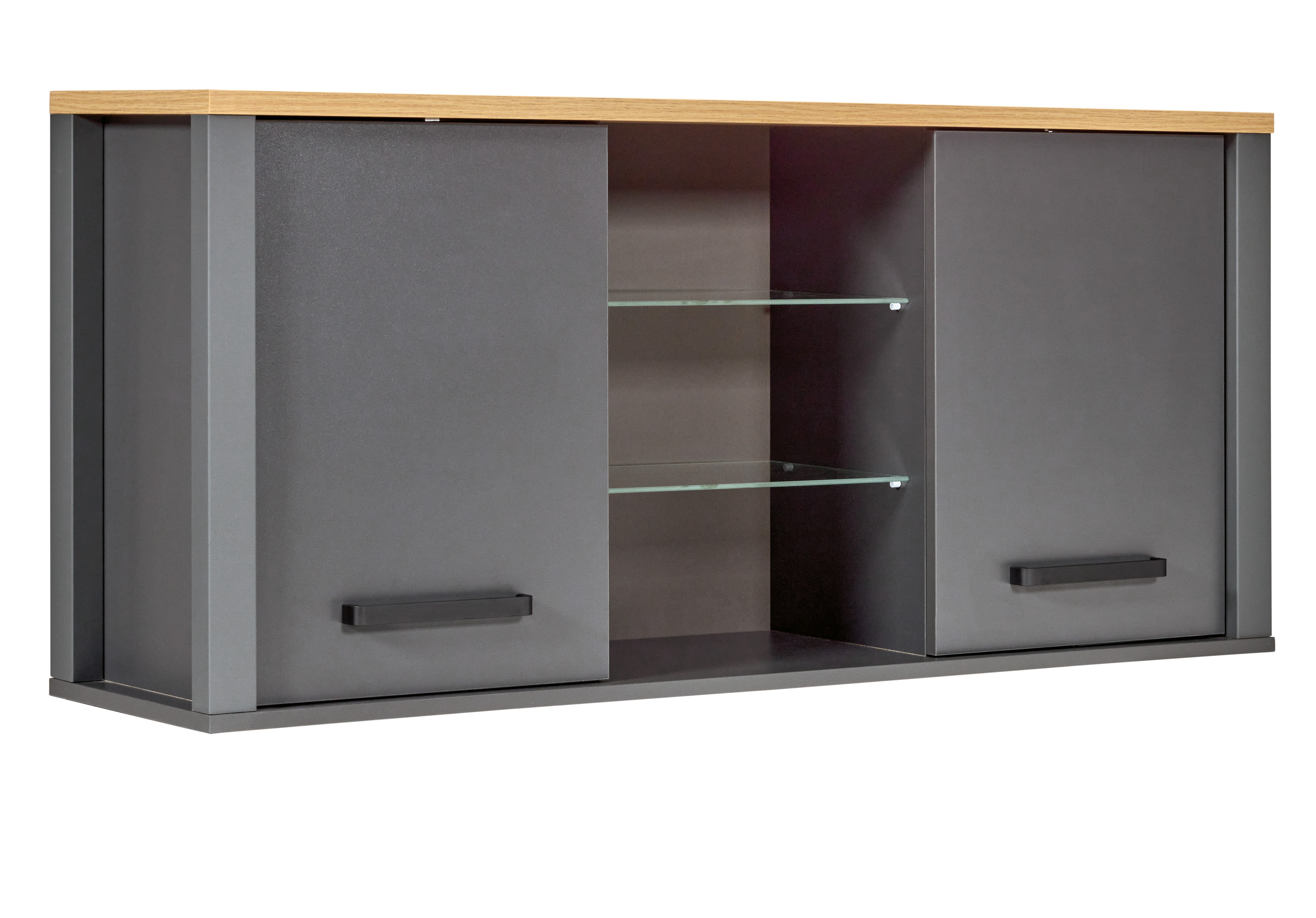 1 meuble haut avec 2 portes, 2 tablettes amovibles et 2 tablettes en verre