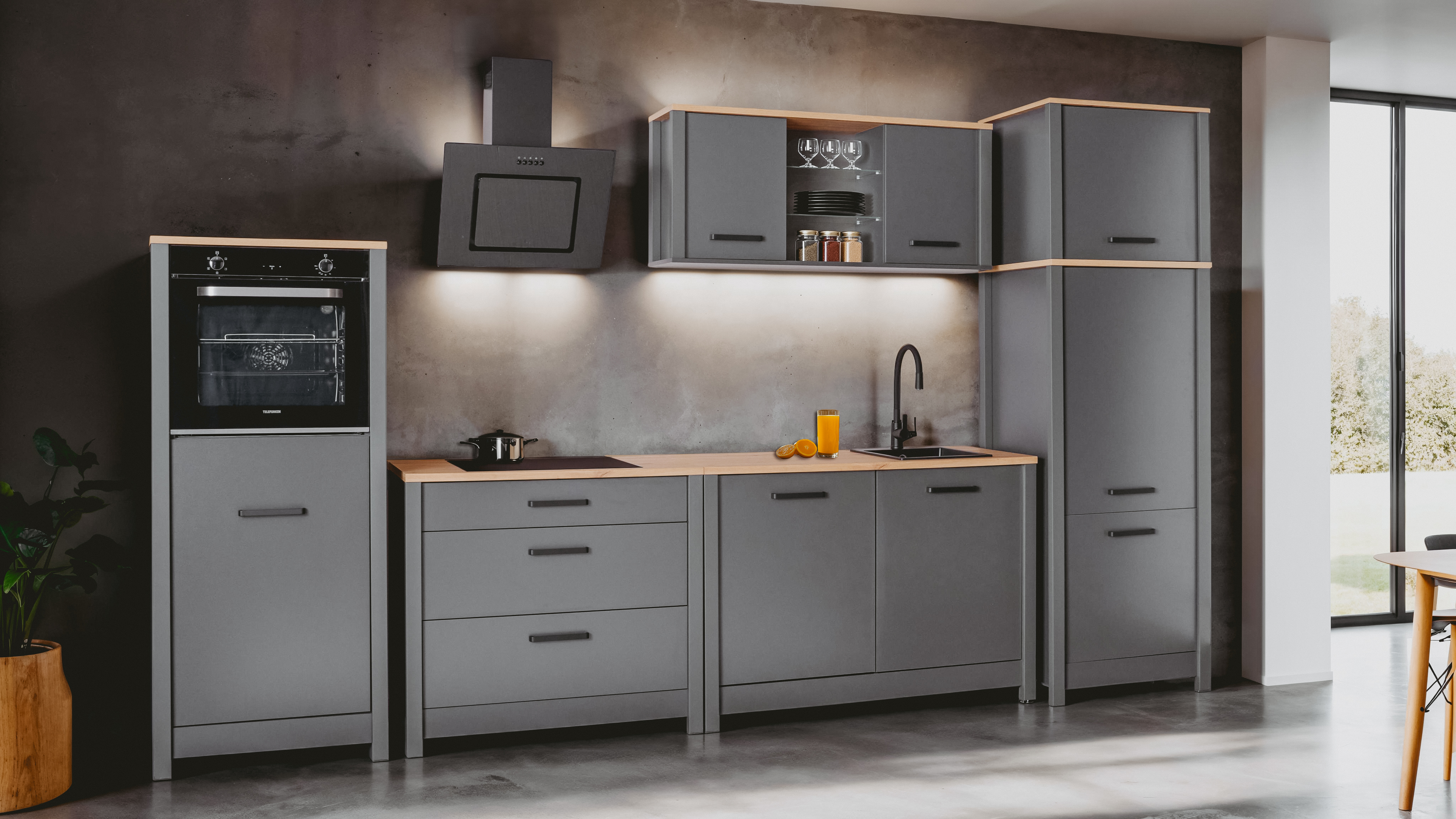 Façade et caisson : MDF (panneaux en fibres de bois de densité moyenne), panneaux de particules ton anthracite