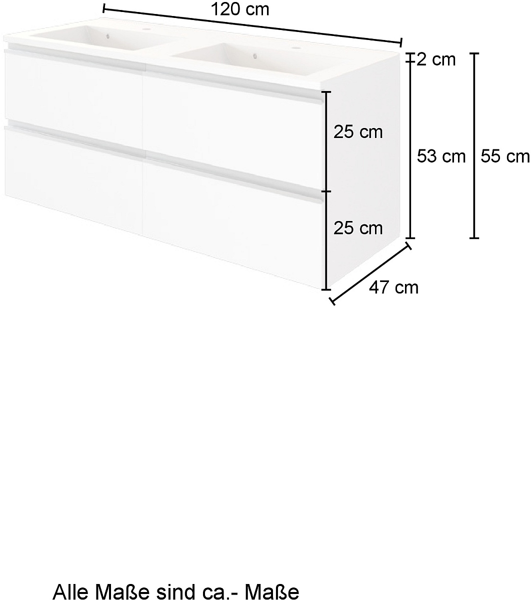 Meuble sous vasque avec vasque en fonte minérale | 120 | 54 | 35 |