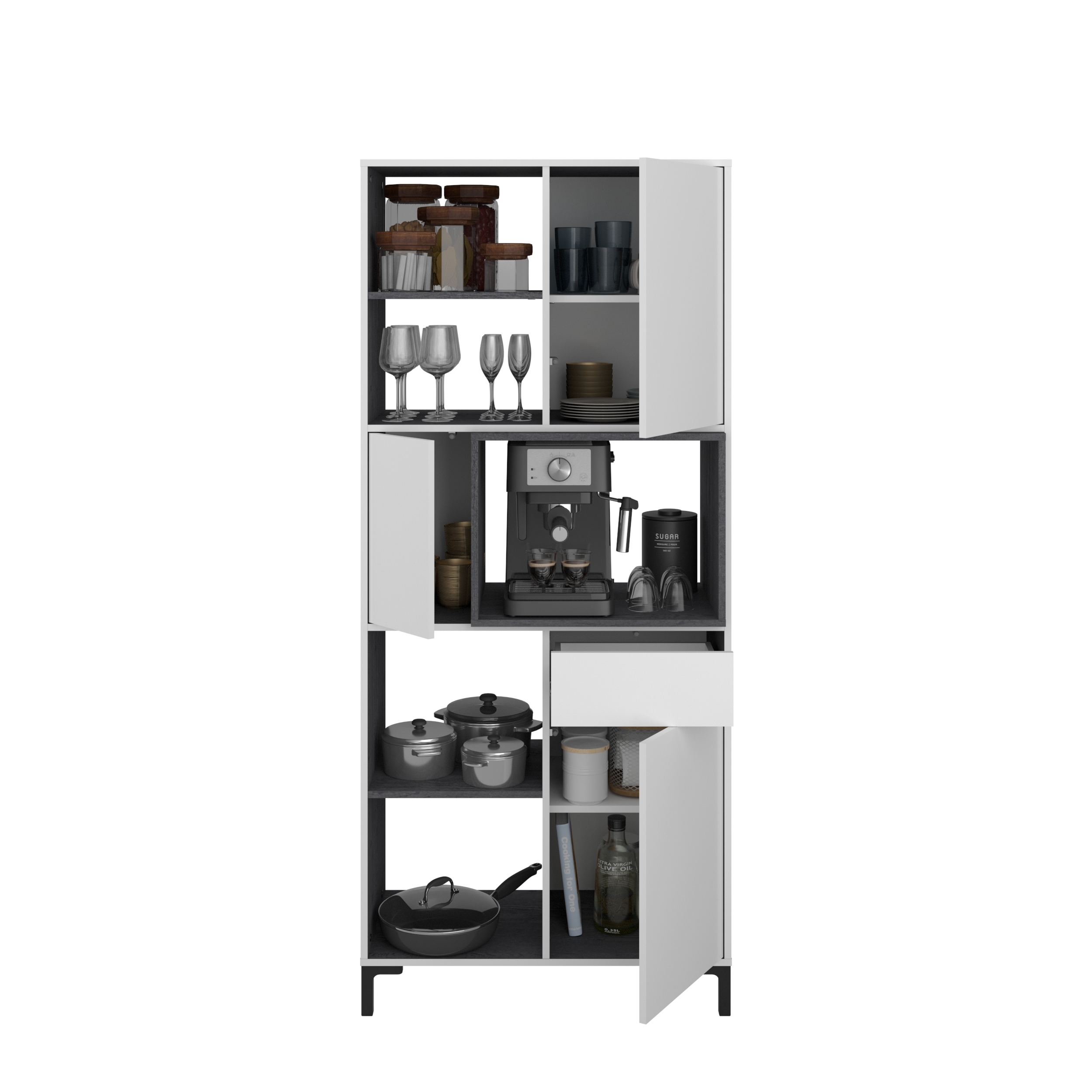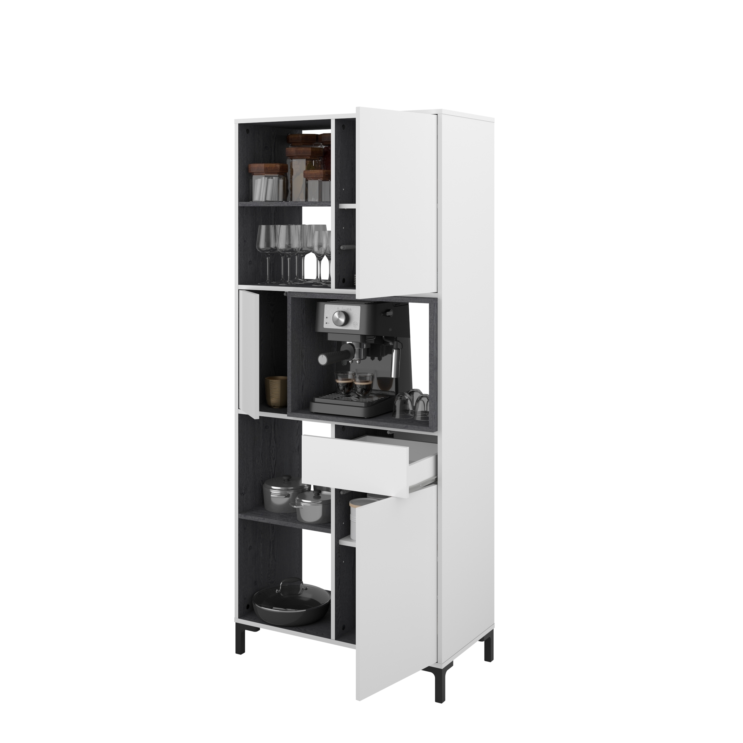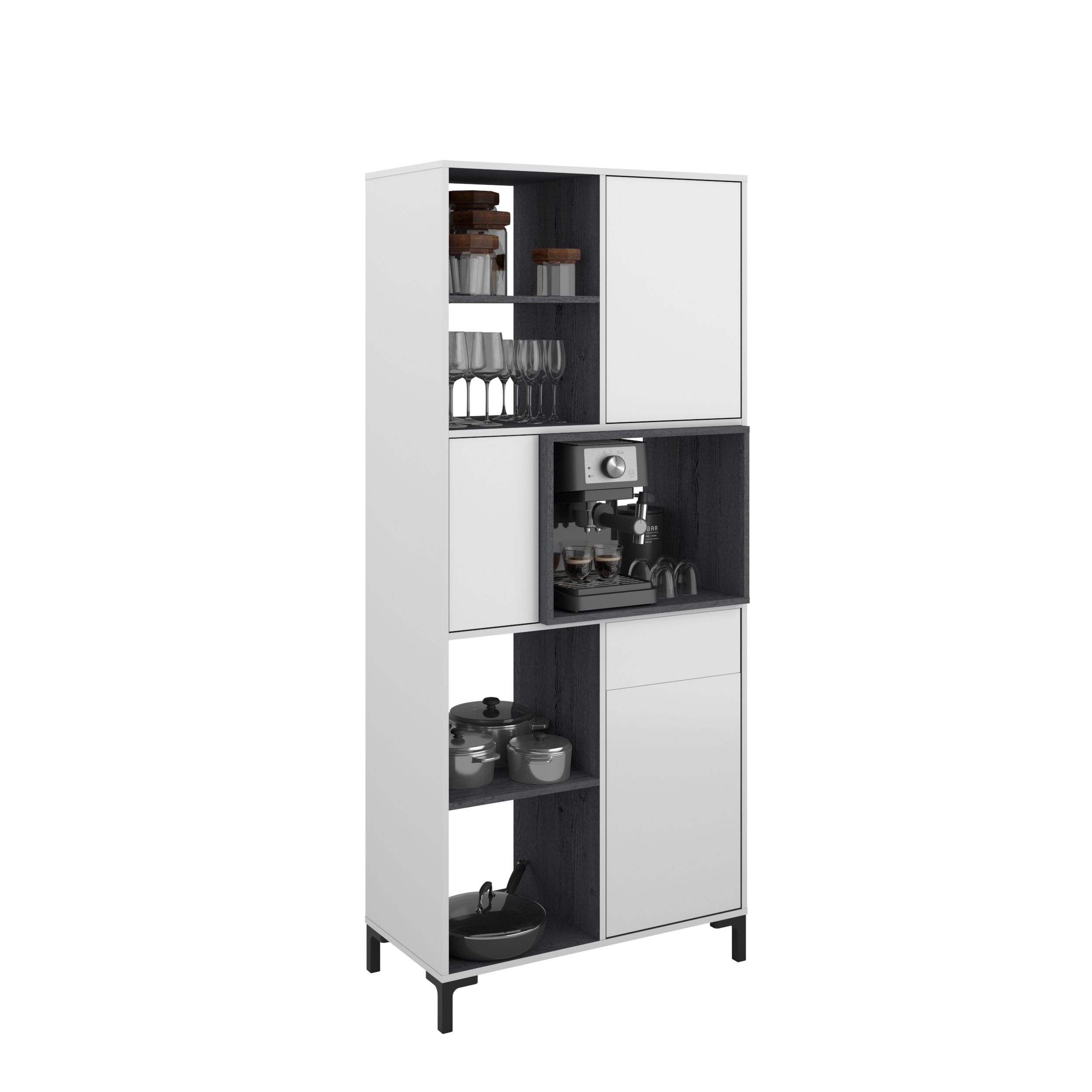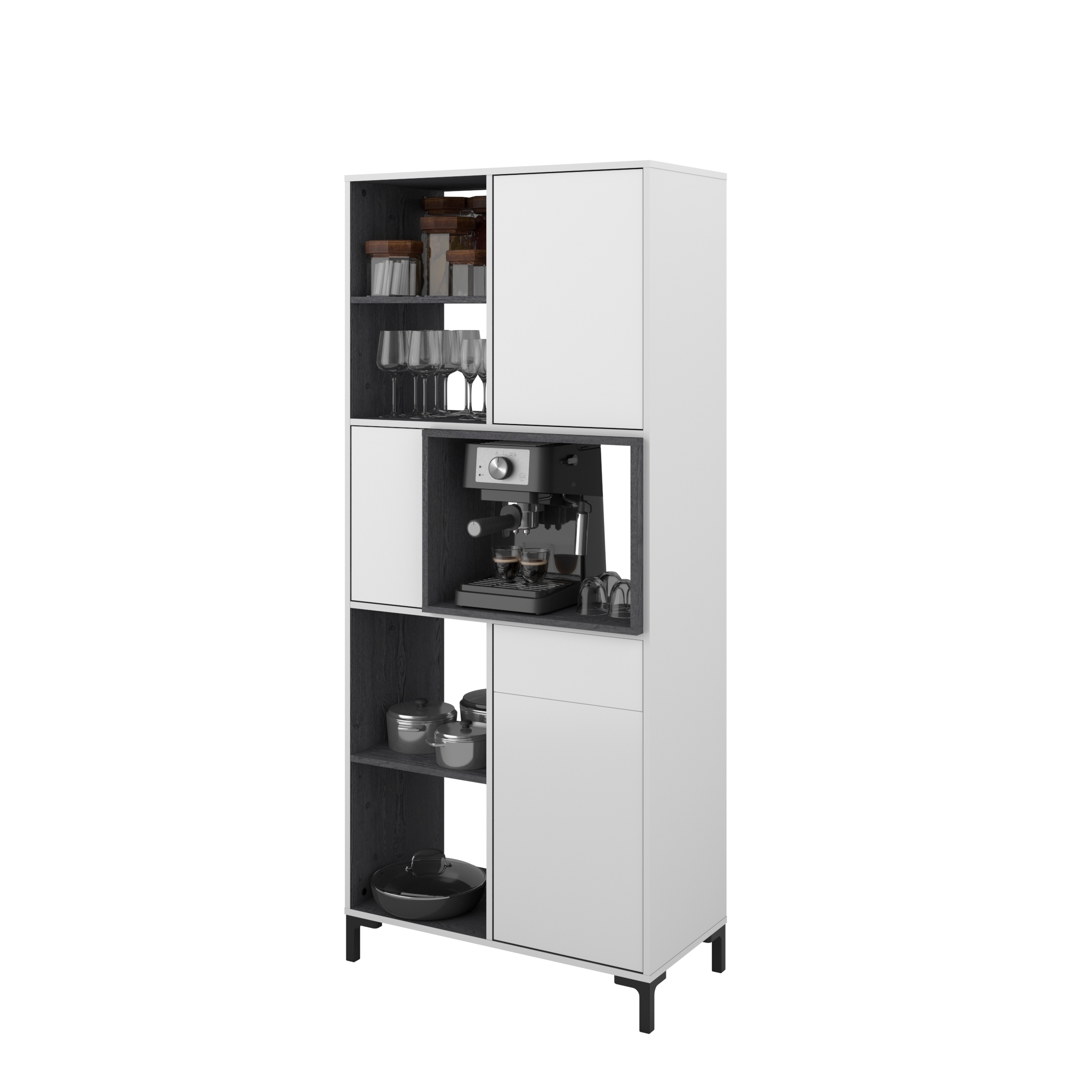 Au centre : 1 porte à gauche / niche pour le micro-ondes ou la machine à café