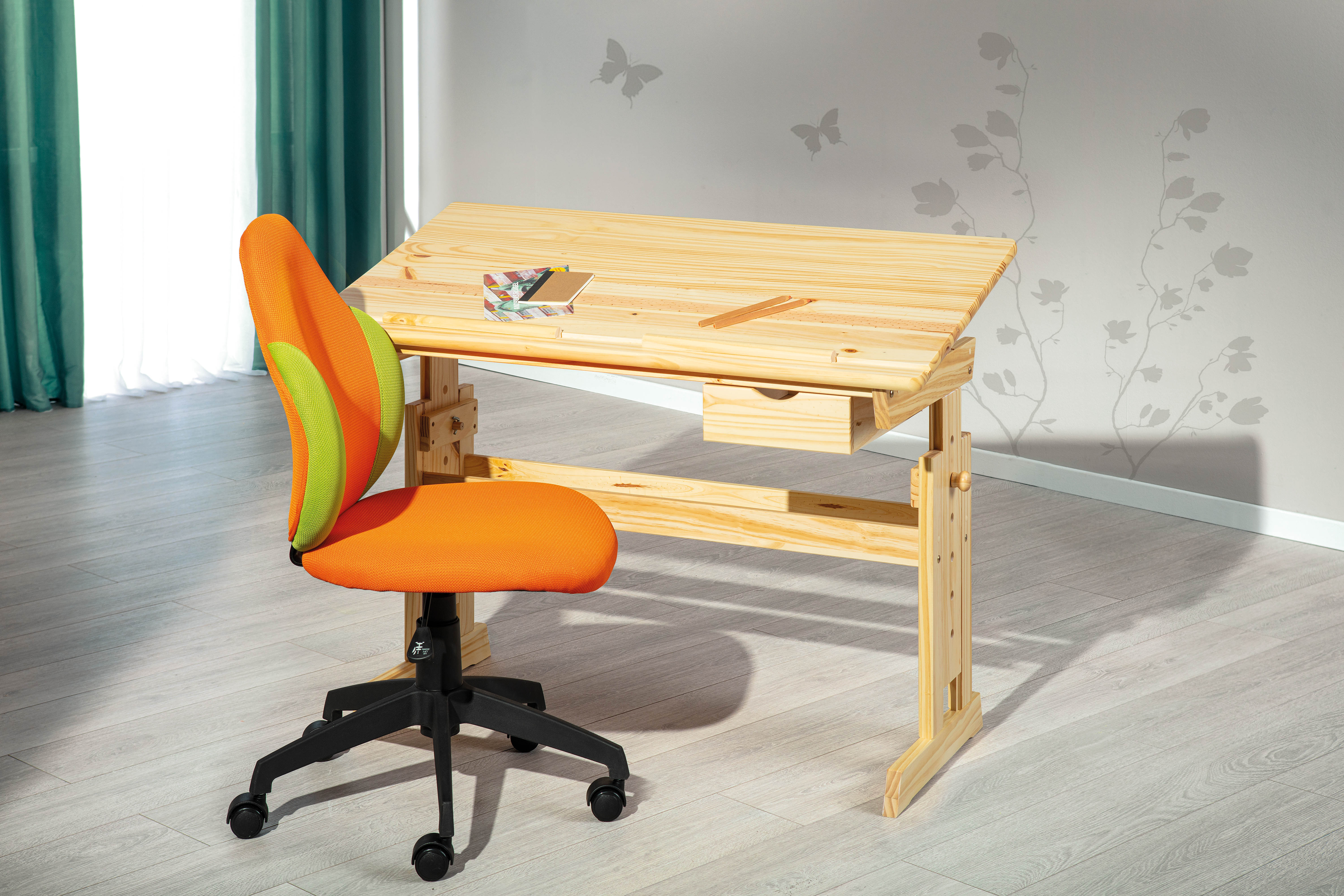 Grâce à la hauteur réglable et au plateau inclinable, le bureau peut être ajusté individuellement aux besoins de l’enfant : un modèle idéal pour dessiner, peindre ou apprendre.