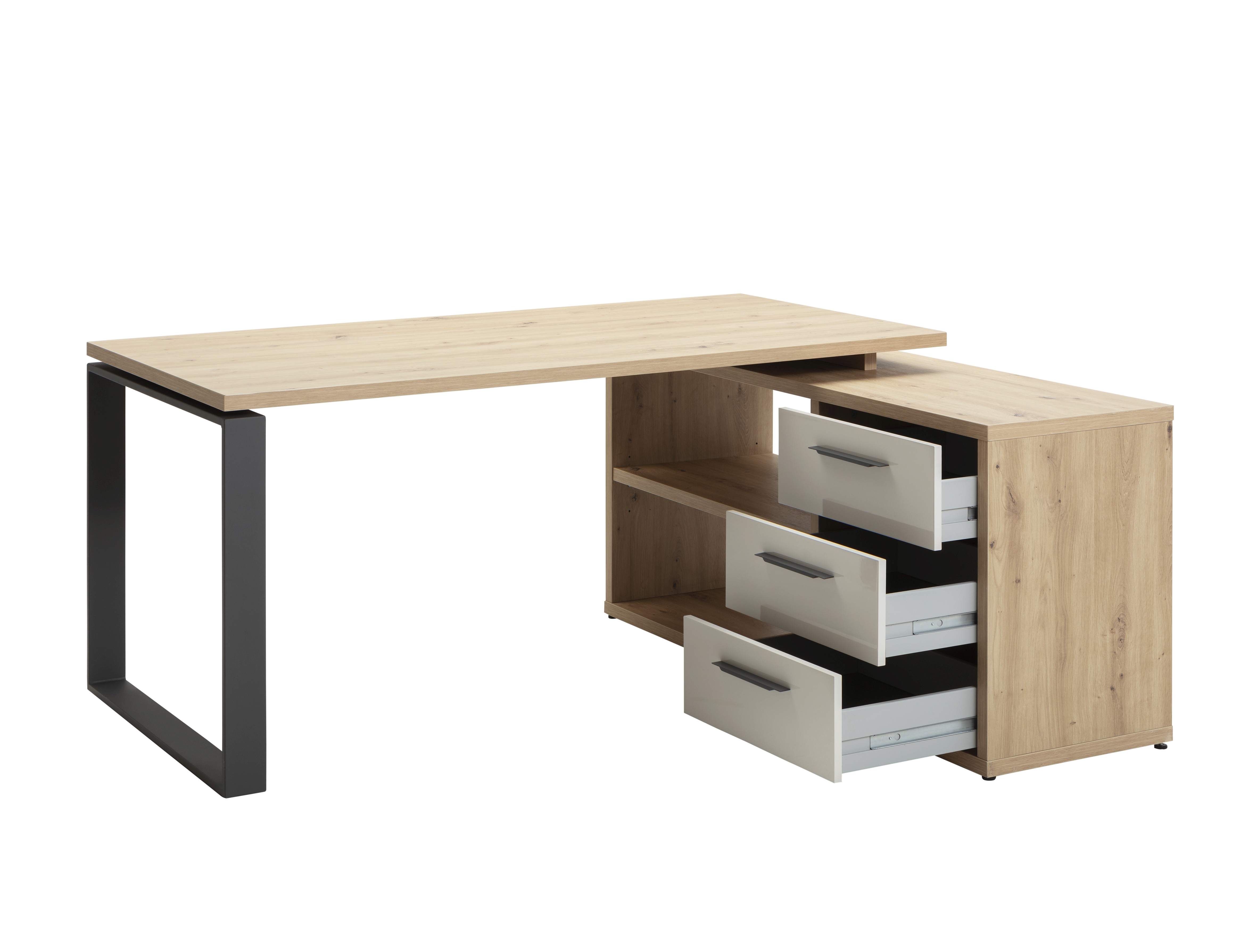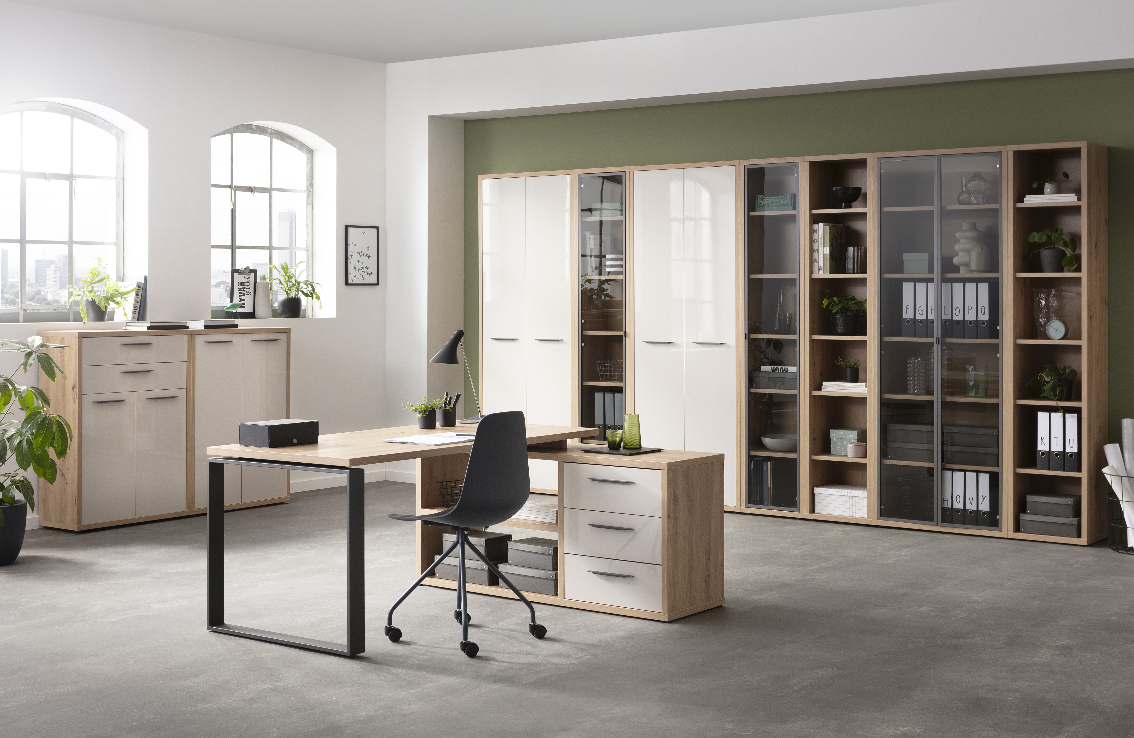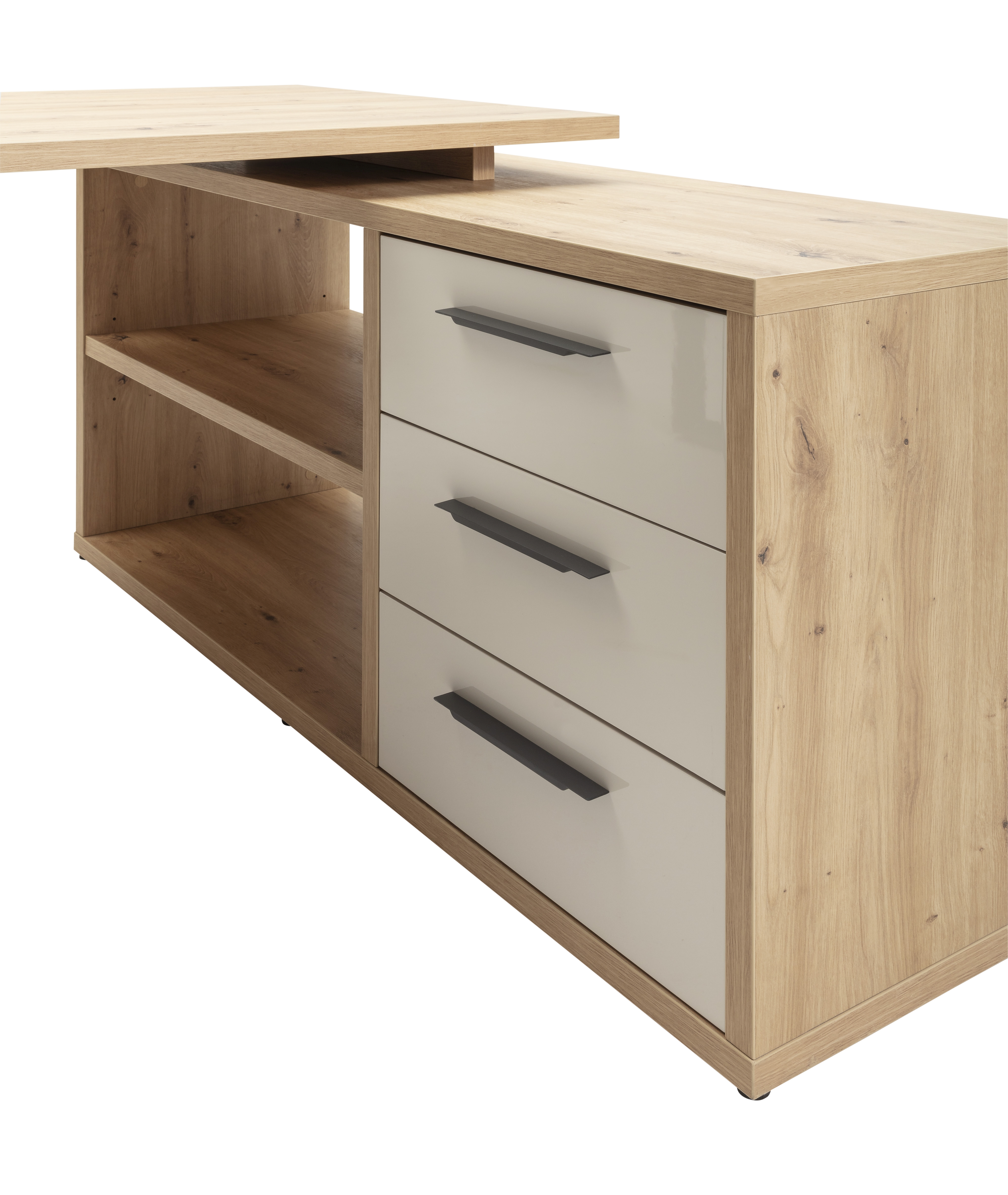 Caisson et façade : décor chêne Artisan et façades de tiroirs ton Cashmere ultra brillant