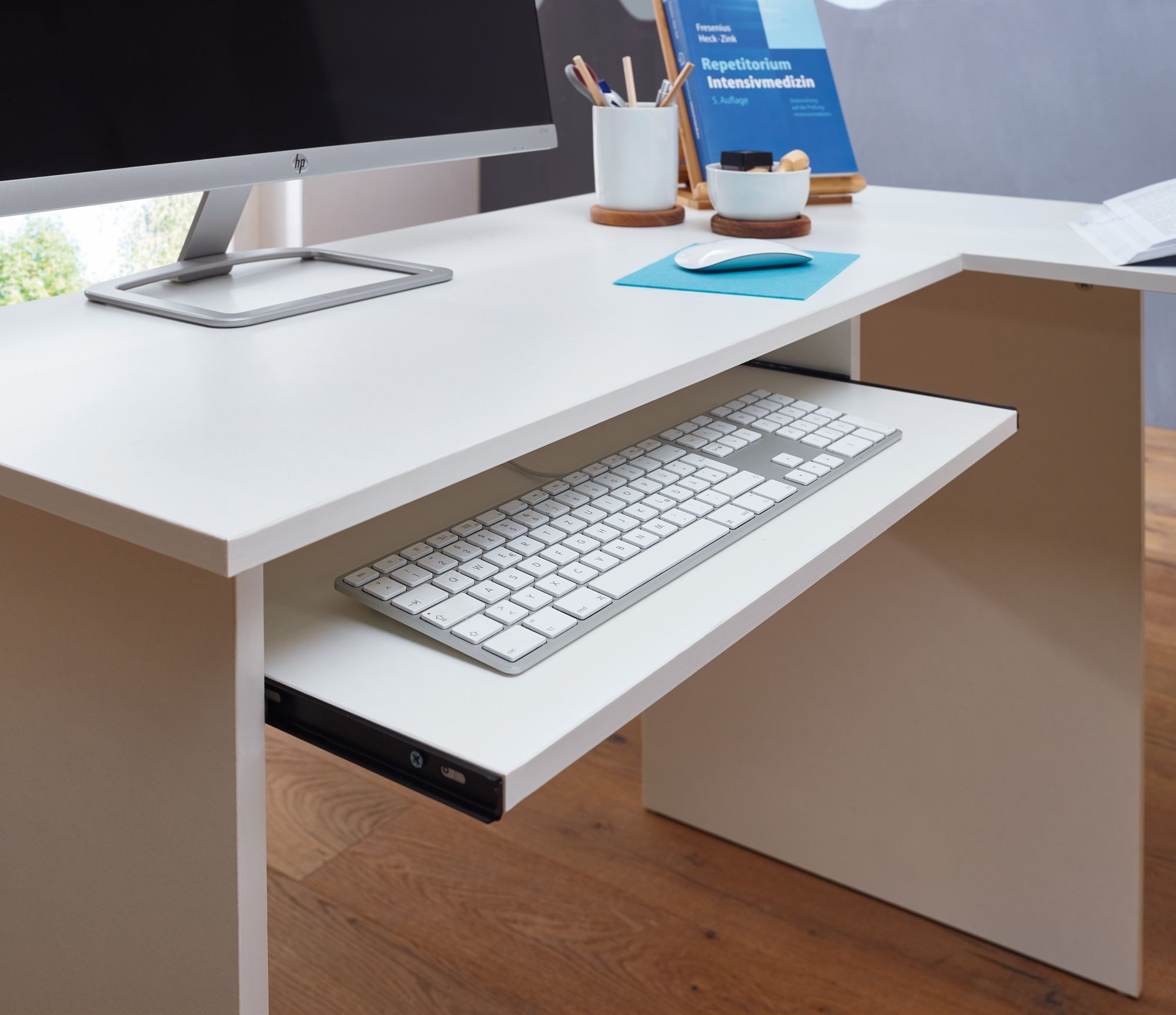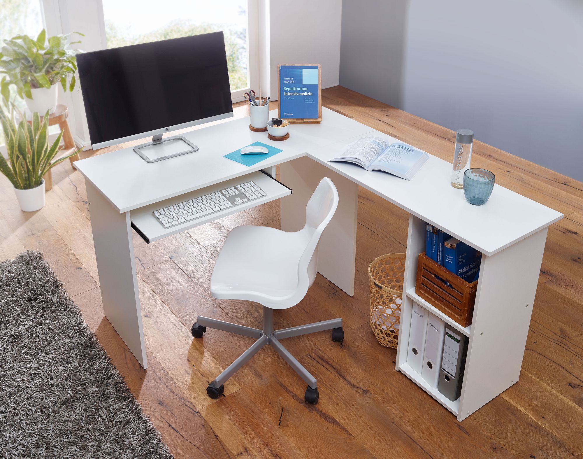 - FLEXIBLE ✔ Un bureau offrant de grandes surfaces de travail et beaucoup d’espace de rangement est l’allié idéal pour travailler efficacement, notamment à la maison. Un bureau d’angle est particulièrement adapté aux petites pièces. Équipé de deux compartiments ouverts et d'un tiroir à clavier pratique, notre bureau propose tout ce qu’un véritable bureau a à offrir. De plus, vous avez la possibilité de disposer le bureau soit comme un bureau d’angle, soit tout en longueur - c’est à vous de choisir !