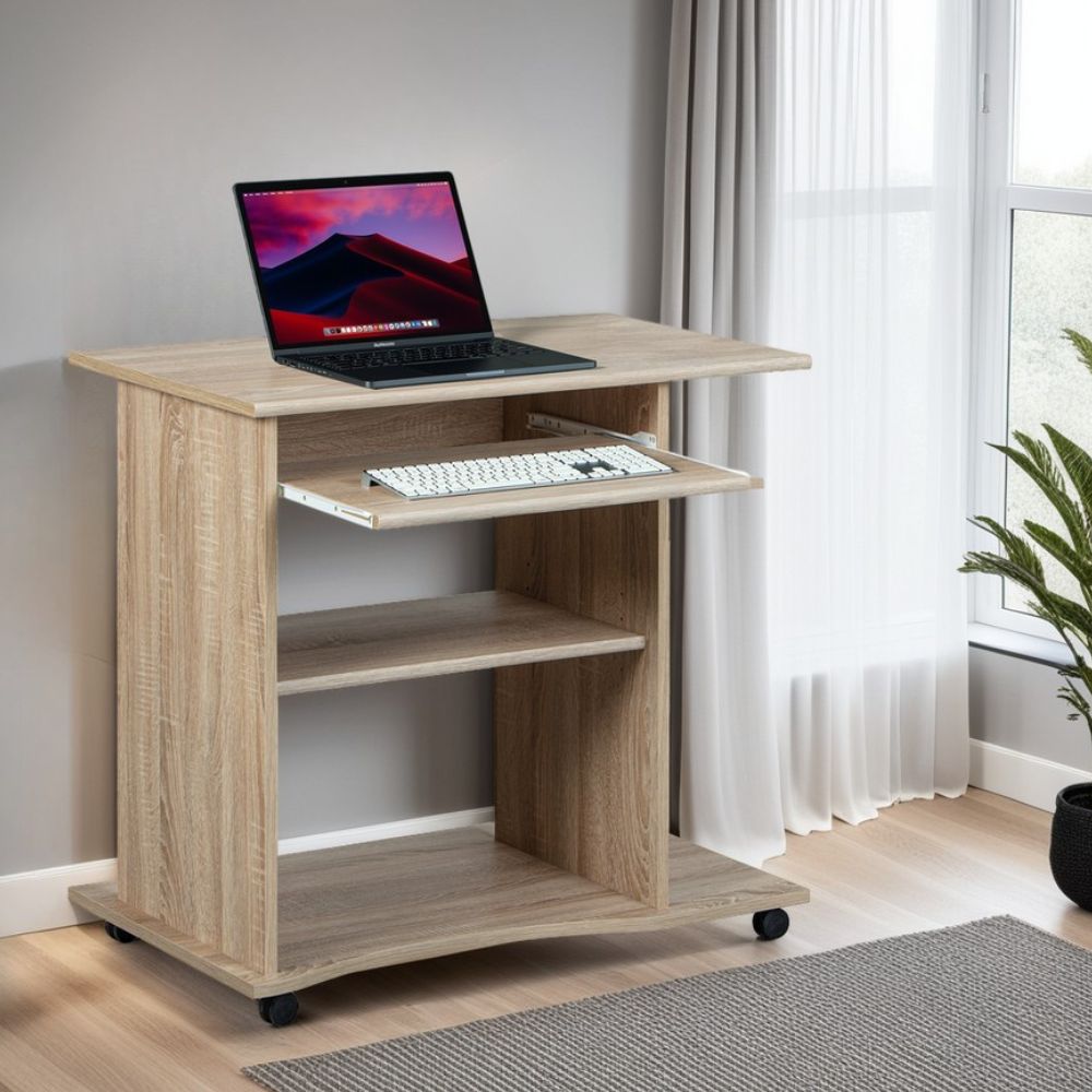 Il offre un espace de travail pratique, avec un casier ouvert dédié à votre ordinateur et une tablette coulissante pour votre clavier.