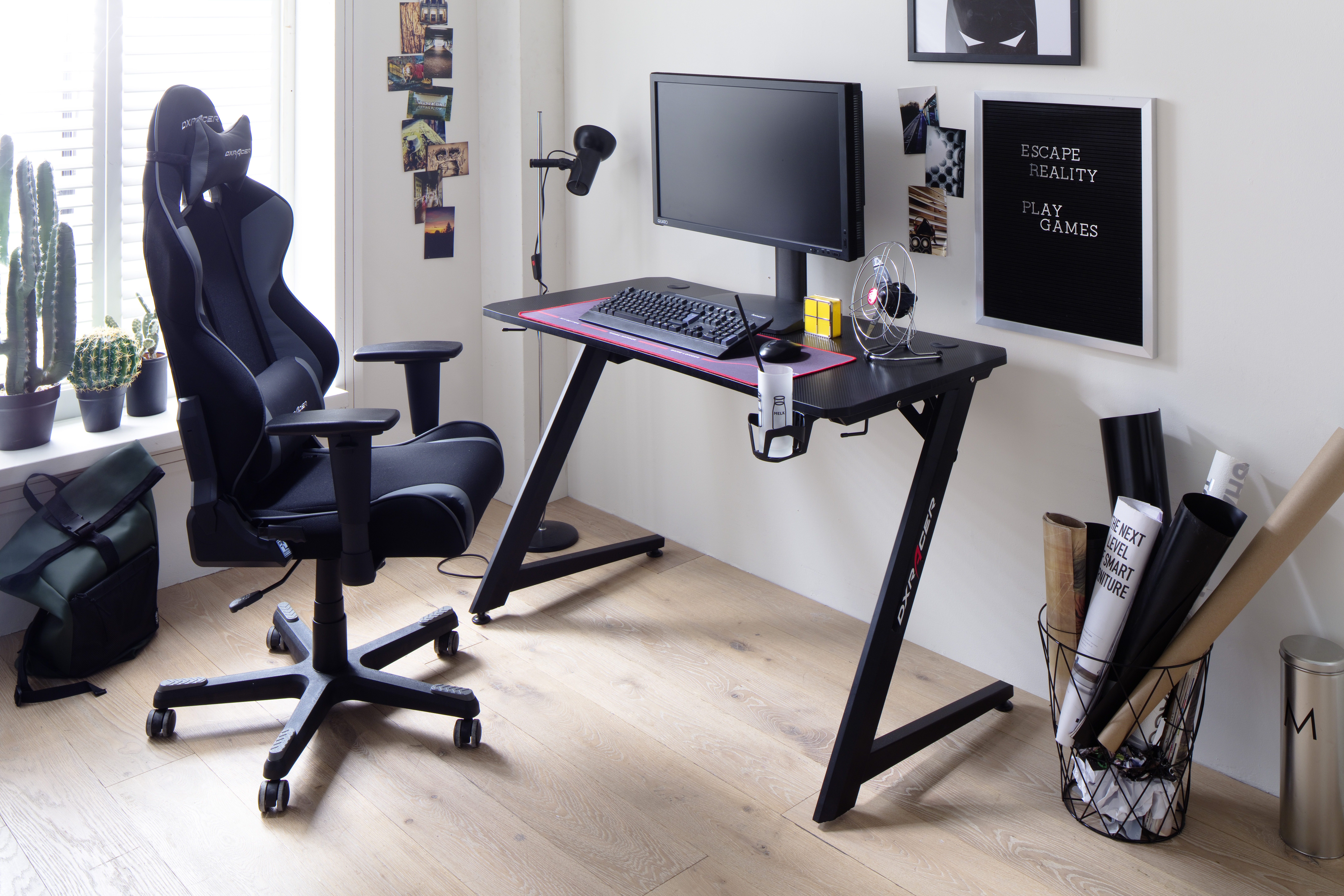 Structure : métal finition époxy ton noir avec logo « DX-Racer », piètement en Z