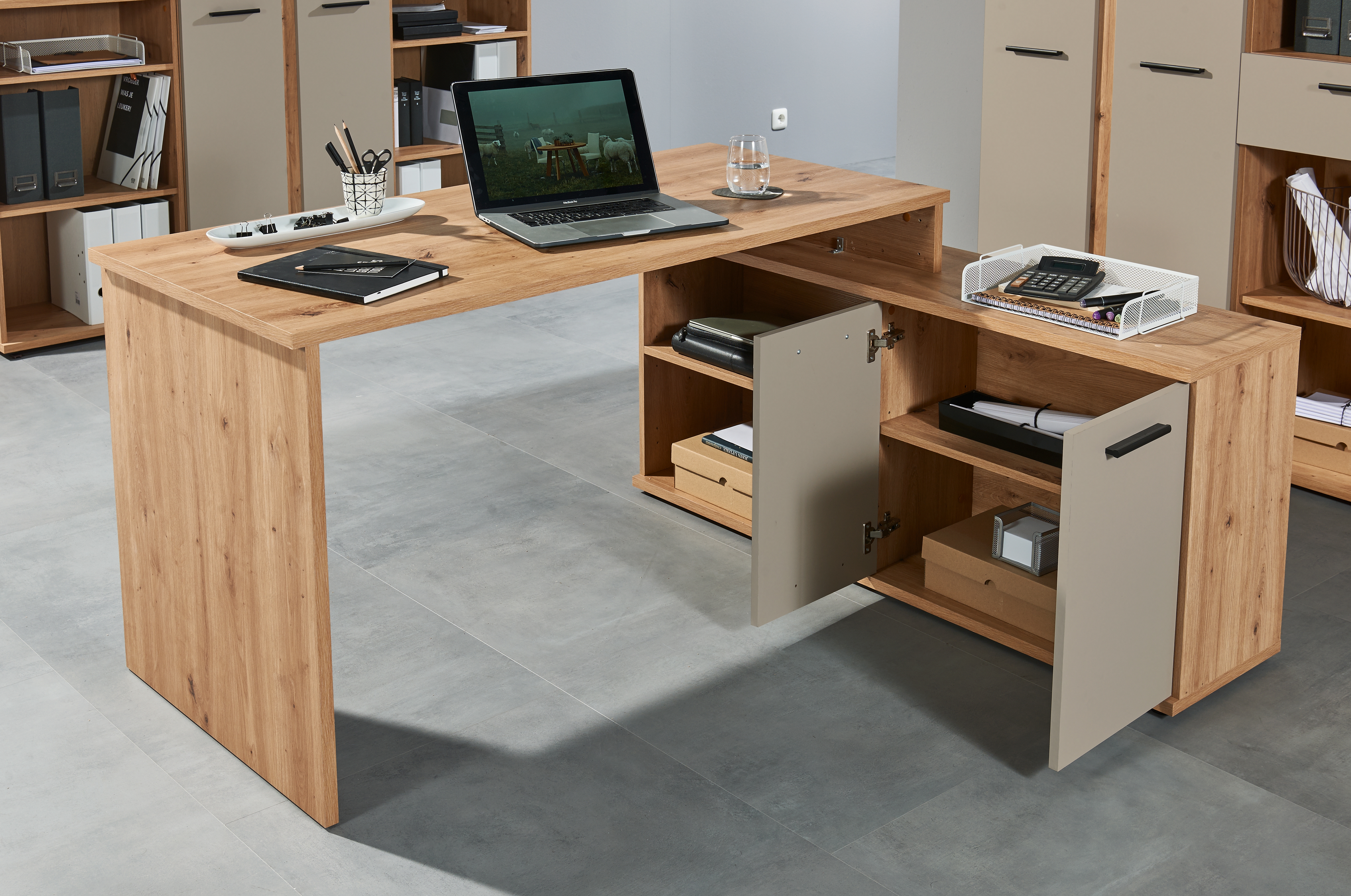 décor chêne Artisan et portes ton cachemire, panneau de particules surfacé mélaminé (PPSM)