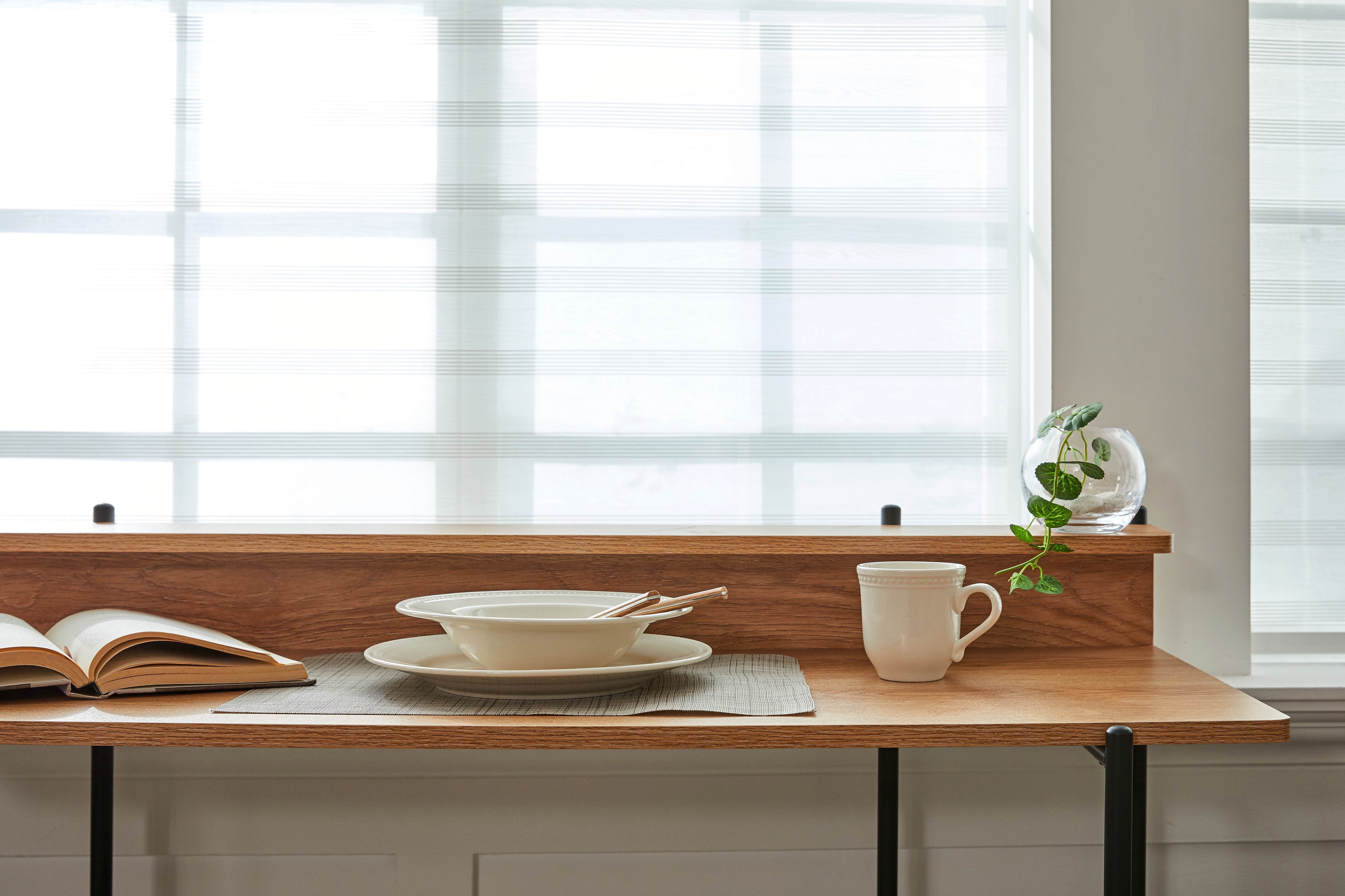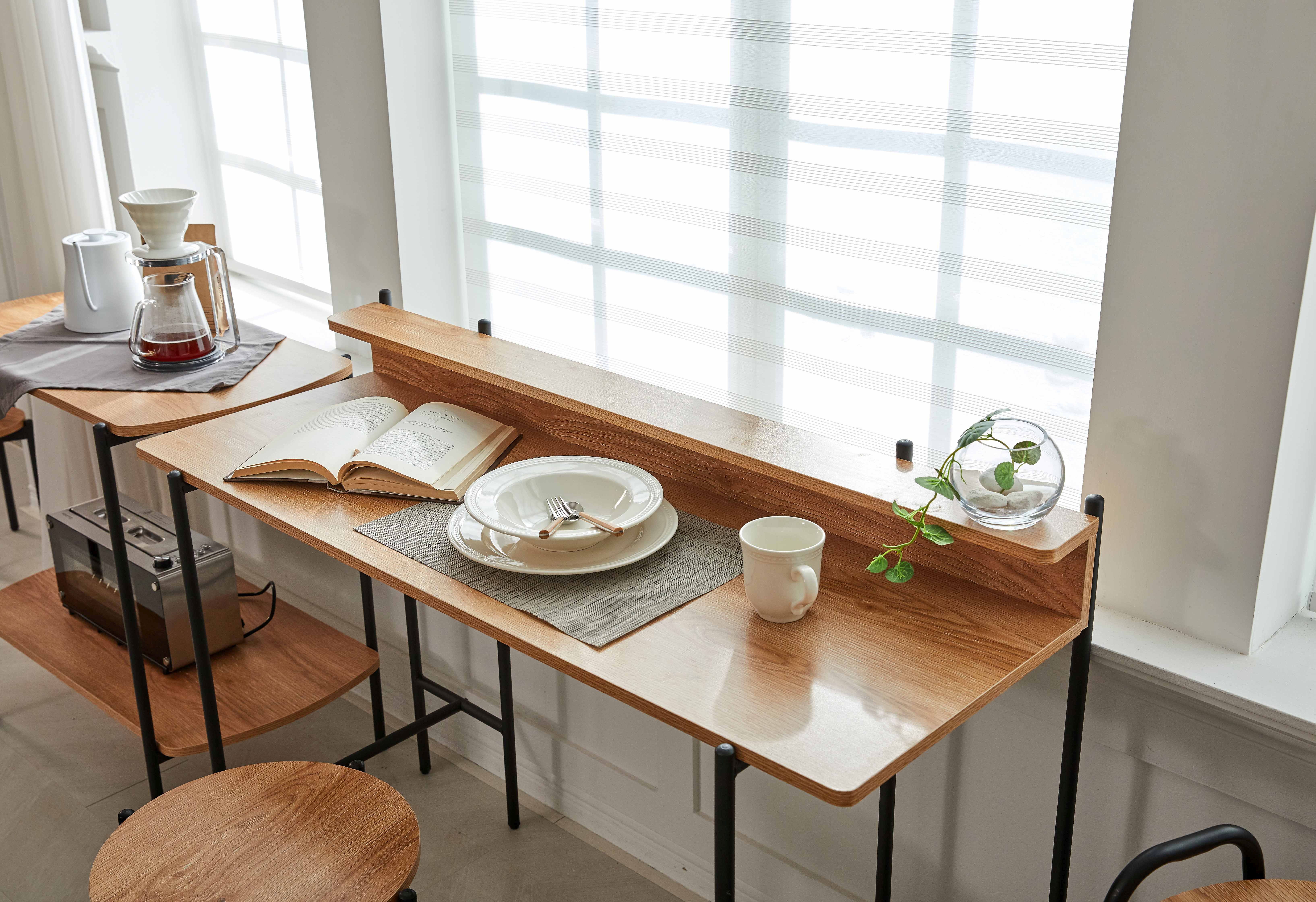 Plateau de table avec panneau de masquage et tablette : MDF (panneaux en fibre de bois de densité moyenne) décor acacia