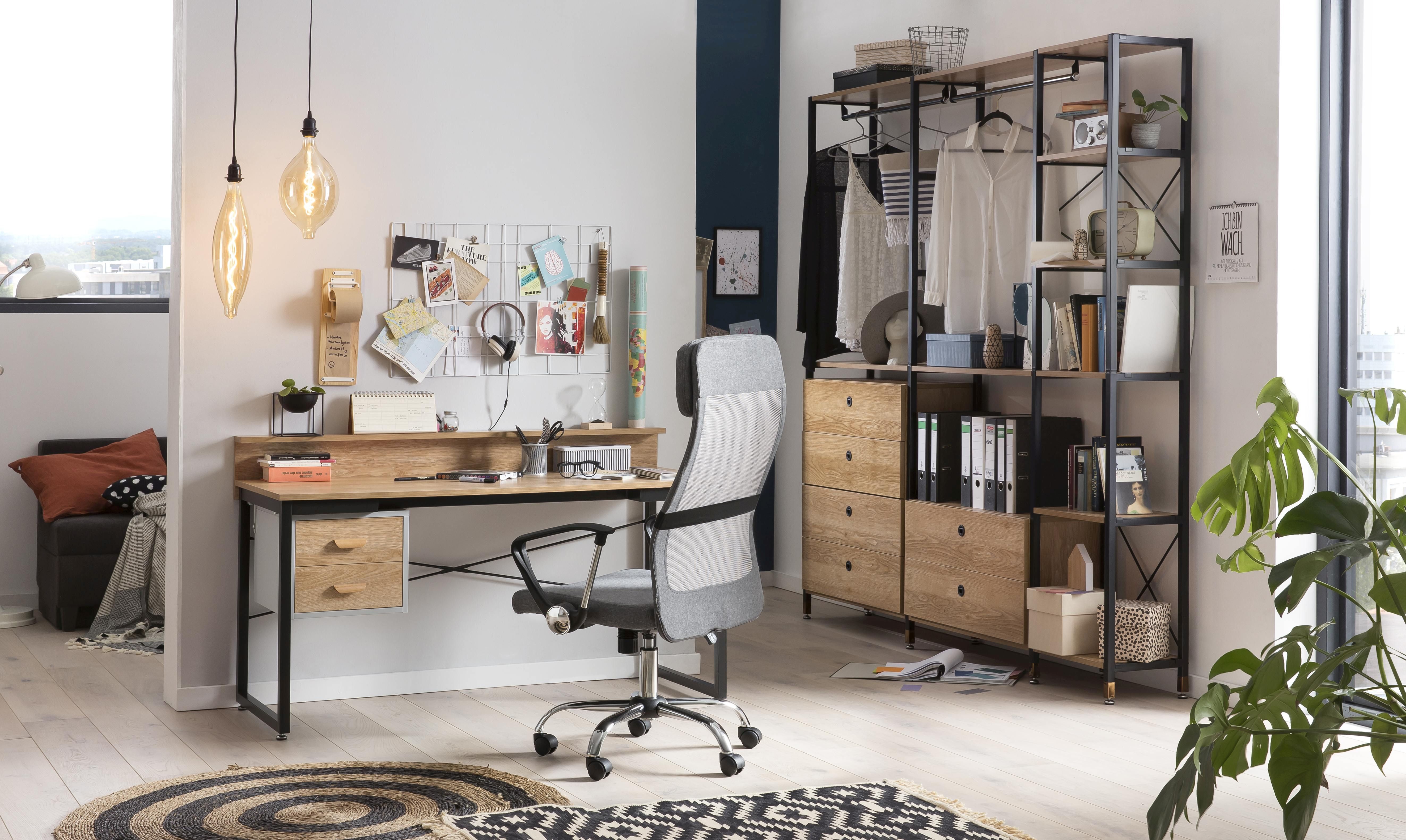 Fini le télétravail sur la table de la salle à manger ! Ce bureau stylé ne séduit pas seulement visuellement, mais aussi par son aspect fonctionnel. Le plateau avec tablette supplémentaire est fabriqué en bois MDF de qualité aspect acacia. Le piètement en métal apporte la touche finale. Les deux tiroirs sous le plateau créent un espace de rangement supplémentaire. Ce bureau sera du plus bel effet dans tous les intérieurs.