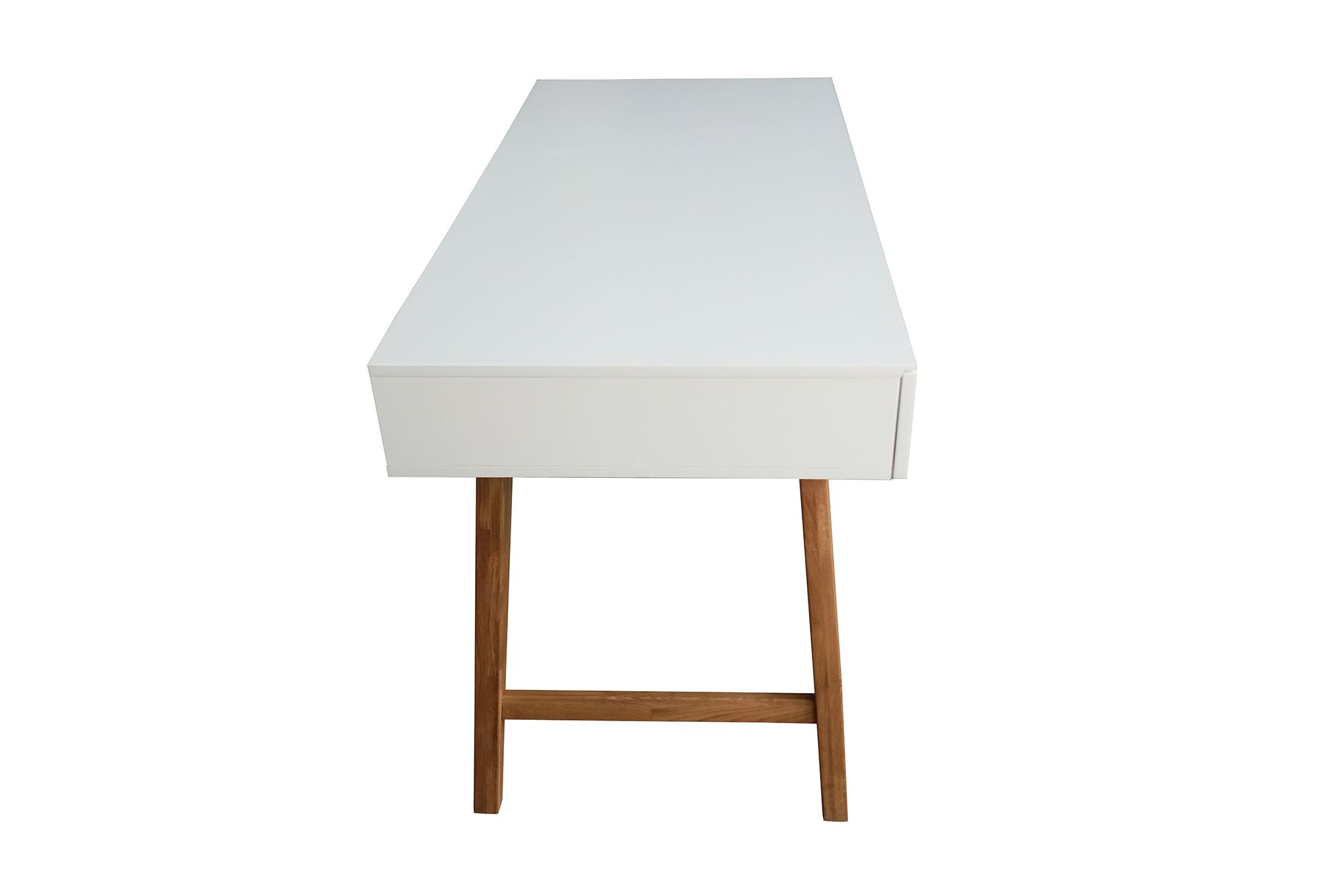 MDF (panneau en fibres de bois de densité moyenne) ton blanc et piètement en bois de chêne (Chine) laissé à l'état naturel