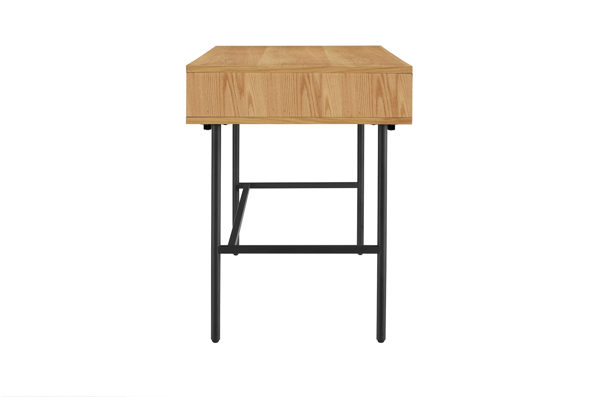 Le placage chêne clair et les pieds hauts laqués ton noir créent un contraste moderne et font entrer le style scandinave ultra tendance dans votre intérieur. Un vernis polyuréthane résistant aux rayures est appliqué sur le caisson du meuble : ceci le rend particulièrement résistant et robuste pour pouvoir en profiter longtemps. La structure avec des pieds fins confère au meuble un aspect léger et aérien et un look tendance digne d’un loft. Le placage en chêne apporte un charme supplémentaire à l’ensemble. Le bureau dispose de 2 tiroirs offrant un espace de stockage supplémentaire à l’abri des regards… pour que le rangement devienne un jeu d’enfant !