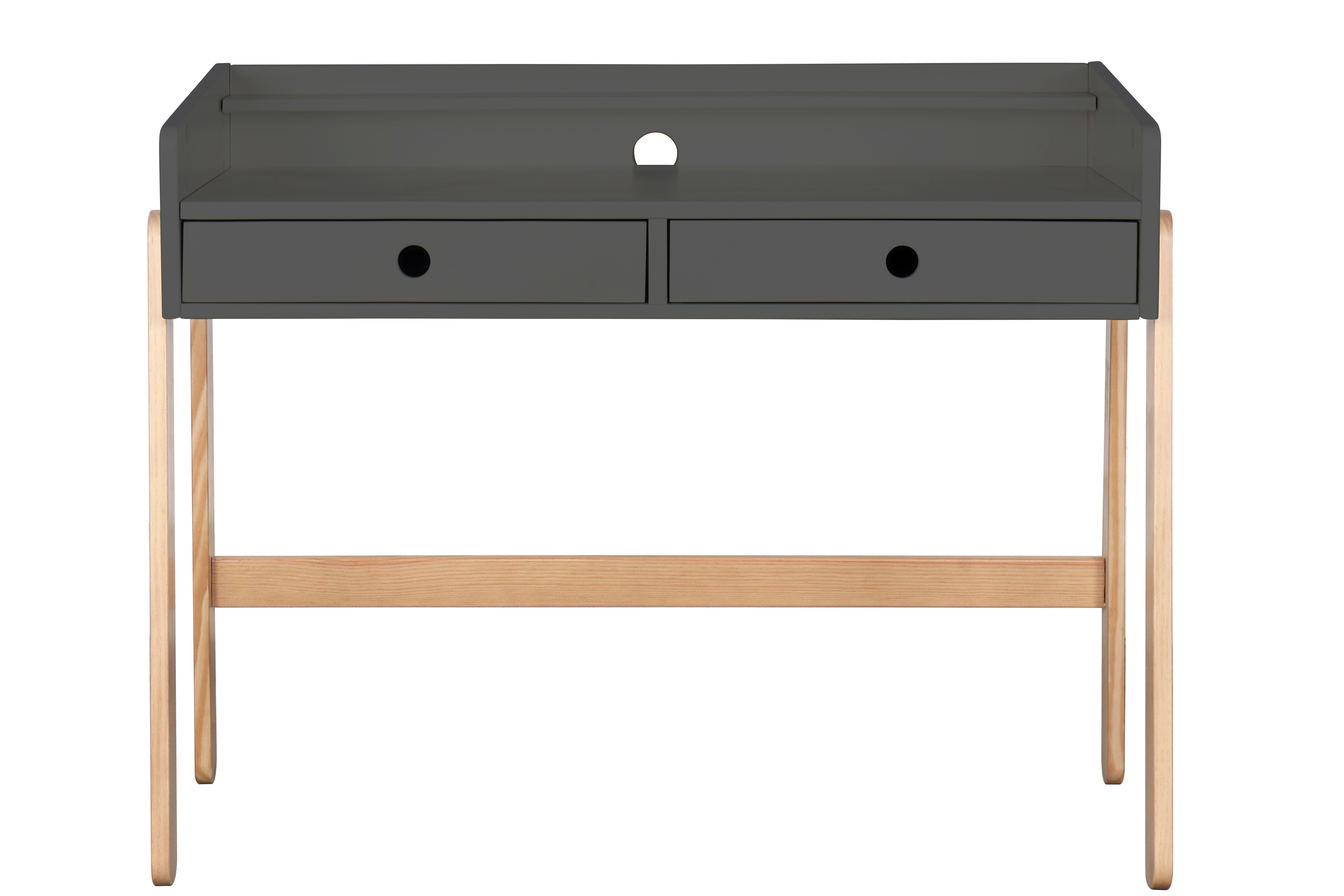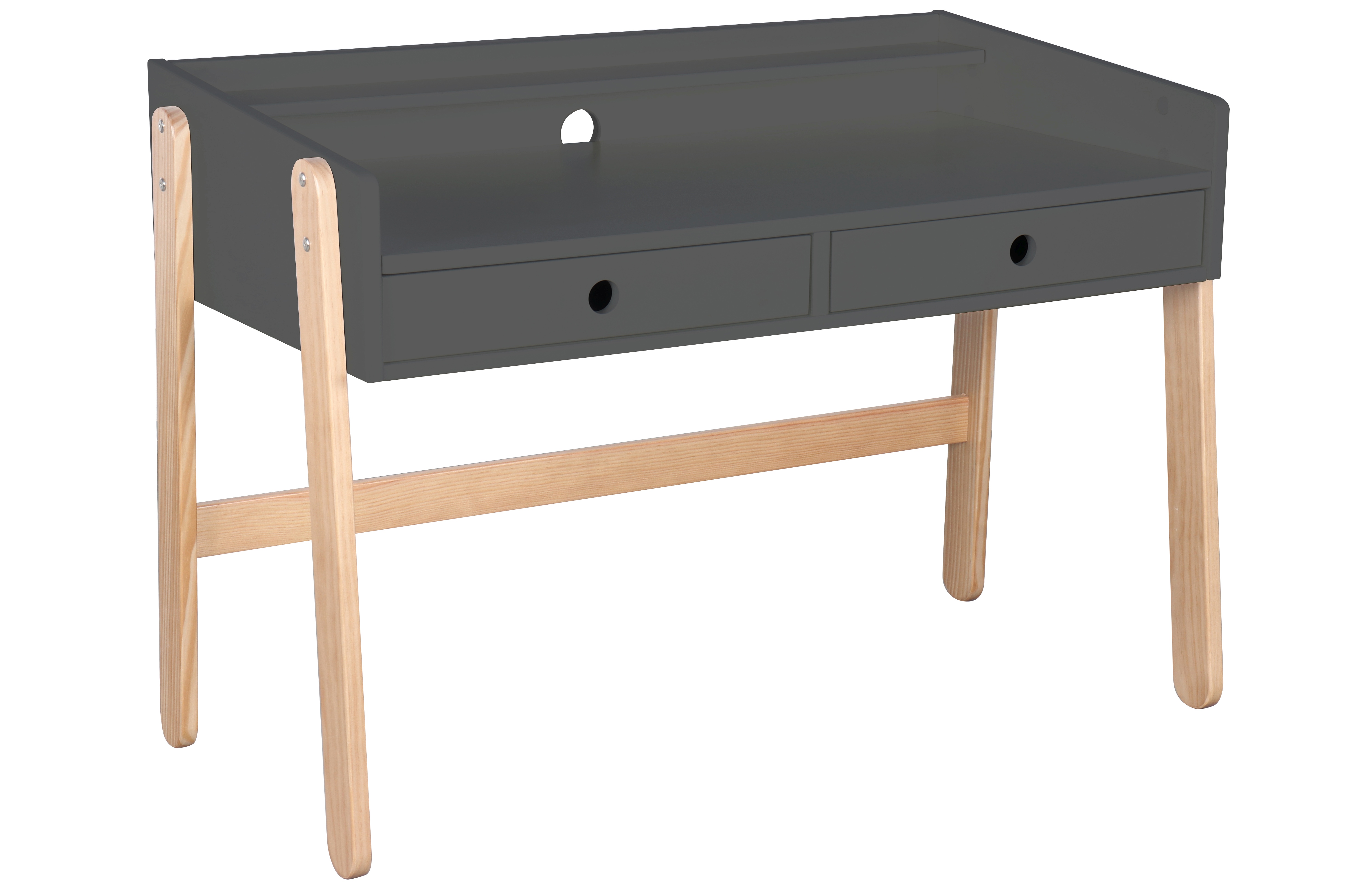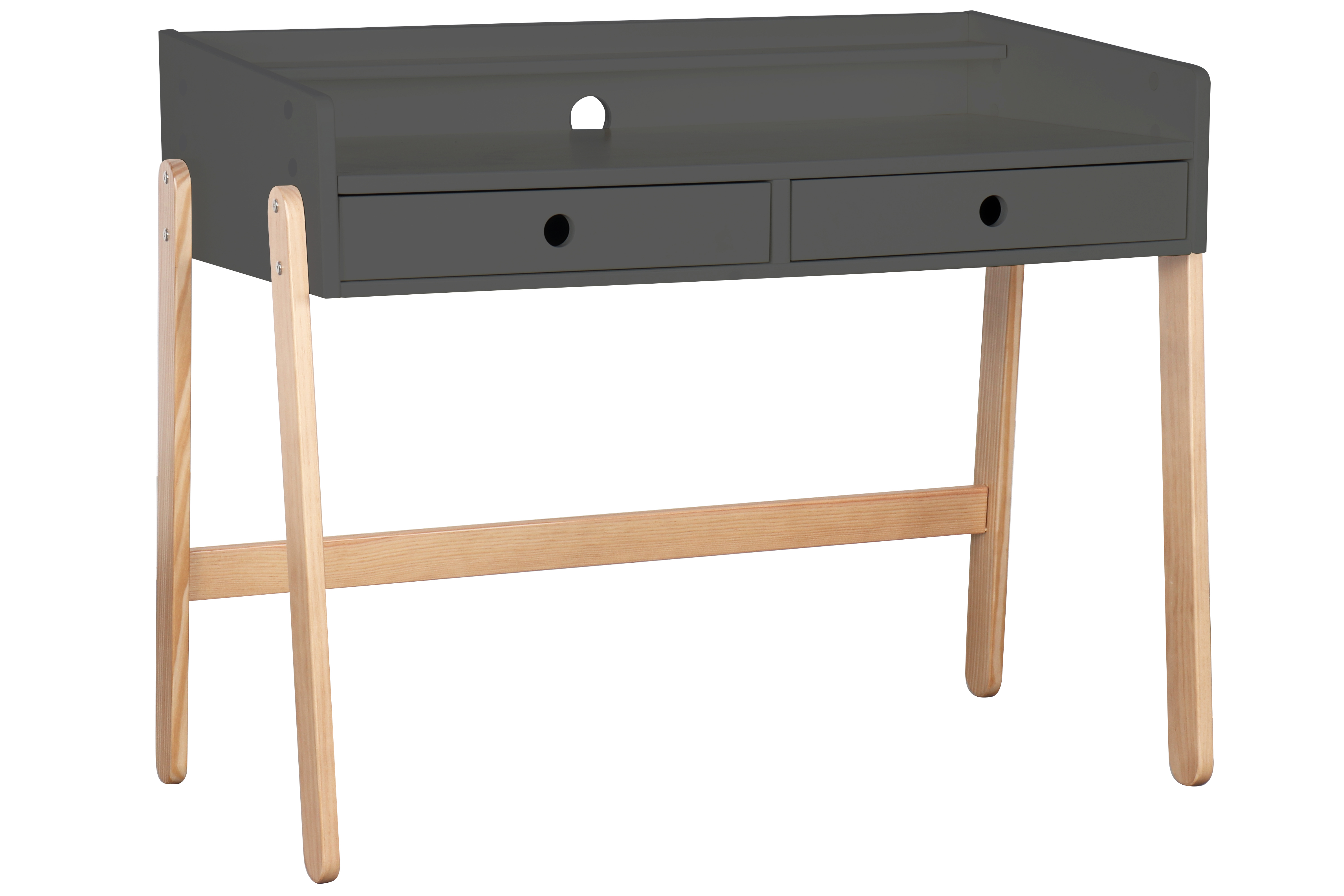 Voici un bureau évolutif ultra pratique dans un style scandinave. Le plateau réglable sur une hauteur de 10 cm permet à votre enfant de profiter longtemps de ce joli meuble. La combinaison entre la base laquée ton gris et le piètement en bois laissé à l'état naturel est un grand classique du look nordique et s'intègre harmonieusement dans de nombreux intérieurs. Les deux tiroirs avec une poignée en creux chacun offrent un espace de rangement pratique. Avec ce superbe bureau, faire les devoirs devient un jeu d'enfant.