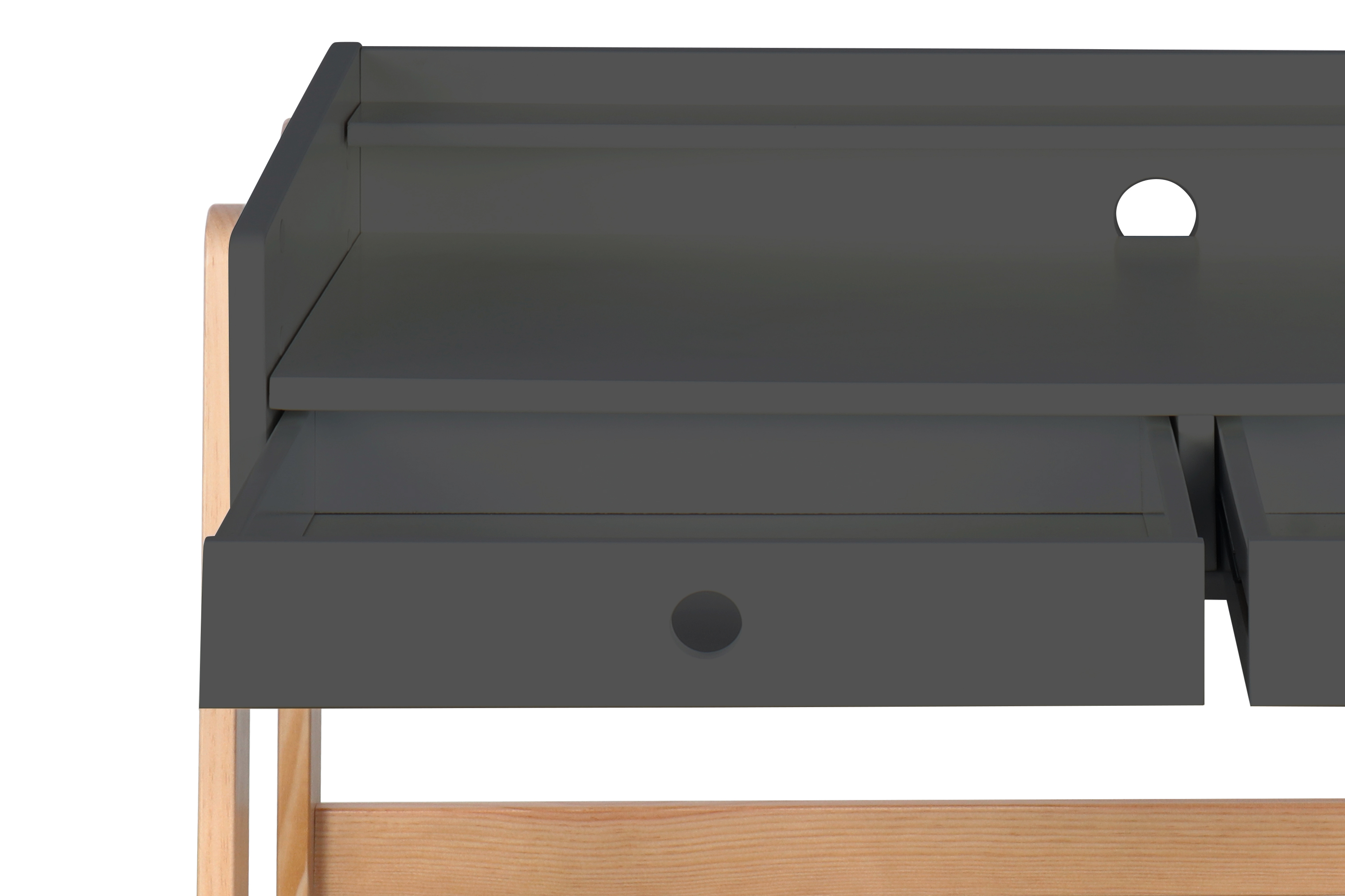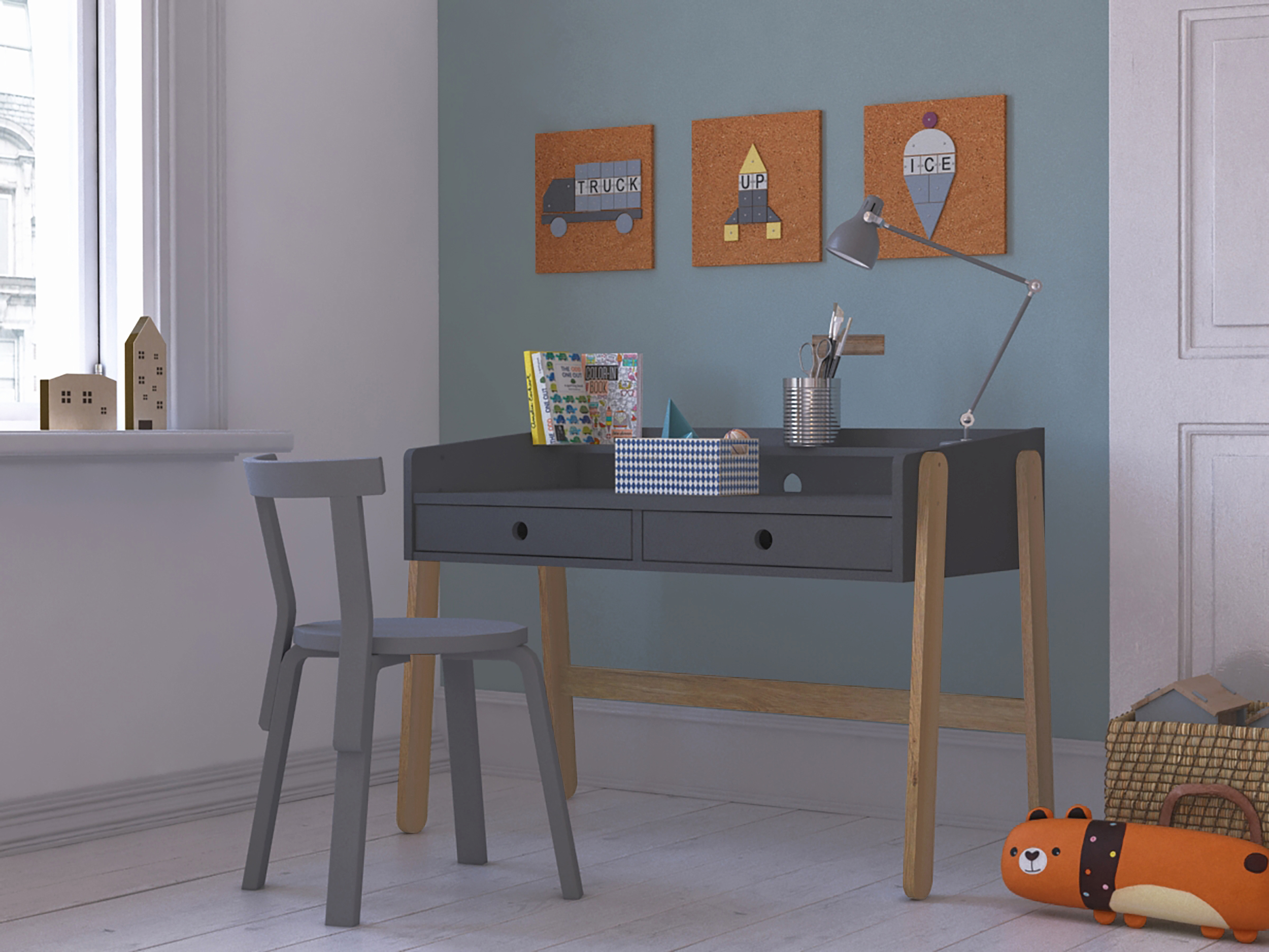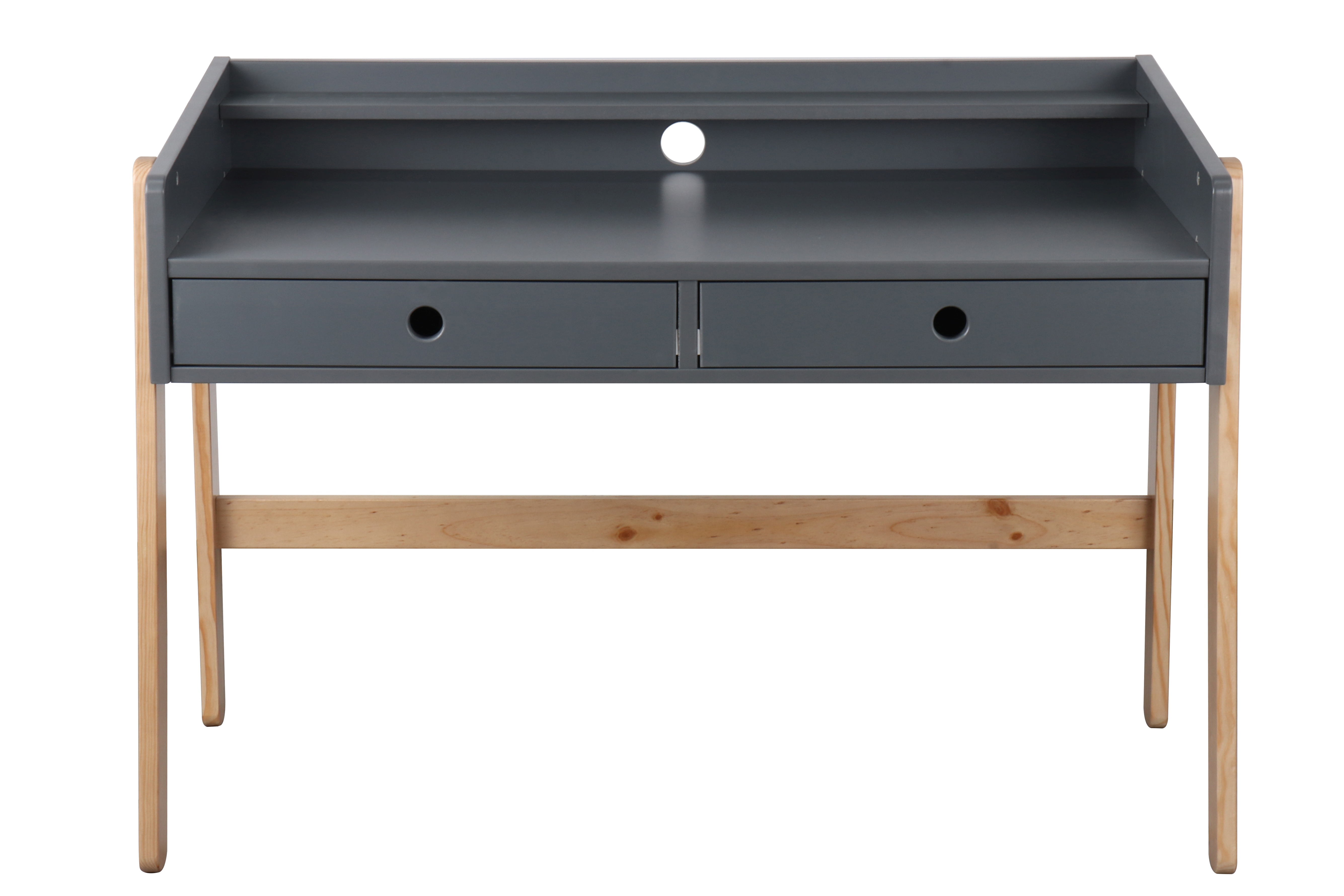 Voici un bureau évolutif ultra pratique dans un style scandinave. Le plateau réglable sur une hauteur de 10 cm permet à votre enfant de profiter longtemps de ce joli meuble. La combinaison entre la base laquée ton gris et le piètement en bois laissé à l'état naturel est un grand classique du look nordique et s'intègre harmonieusement dans de nombreux intérieurs. Les deux tiroirs avec une poignée en creux chacun offrent un espace de rangement pratique. Avec ce superbe bureau, faire les devoirs devient un jeu d'enfant.