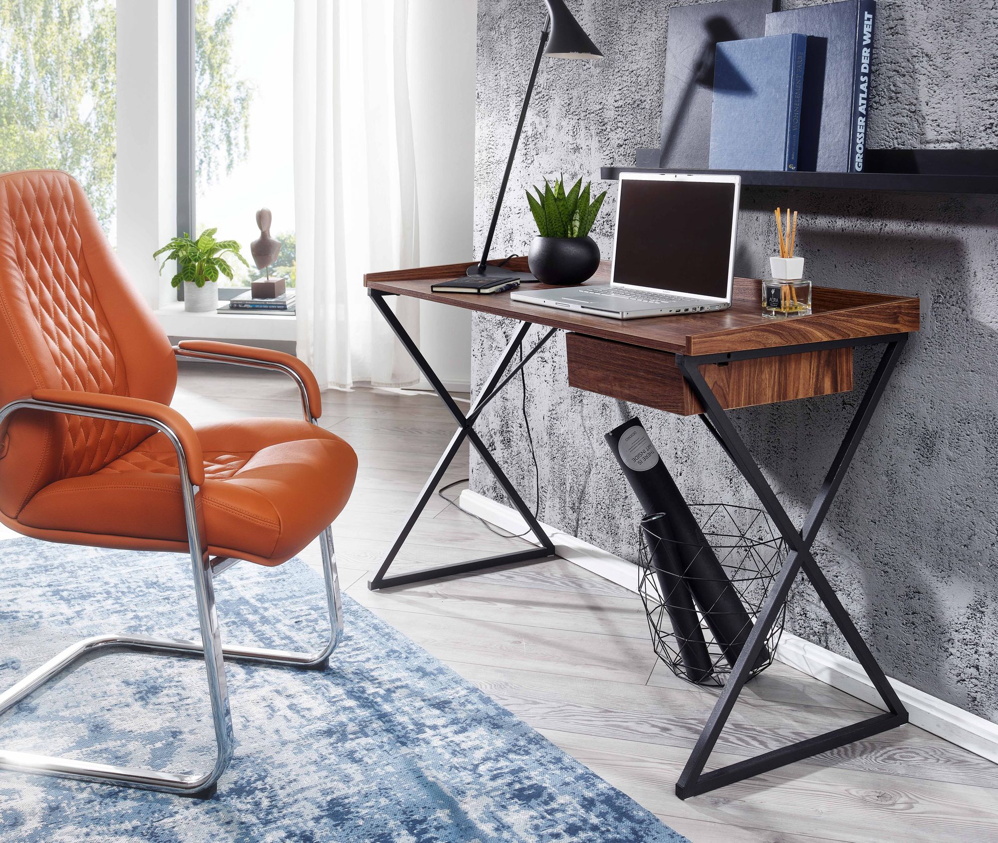 COMPOSITION ✔ Le plateau et le tiroir sont fabriqués en panneaux de particules mélaminés. Le piètement est en fer finition époxy.