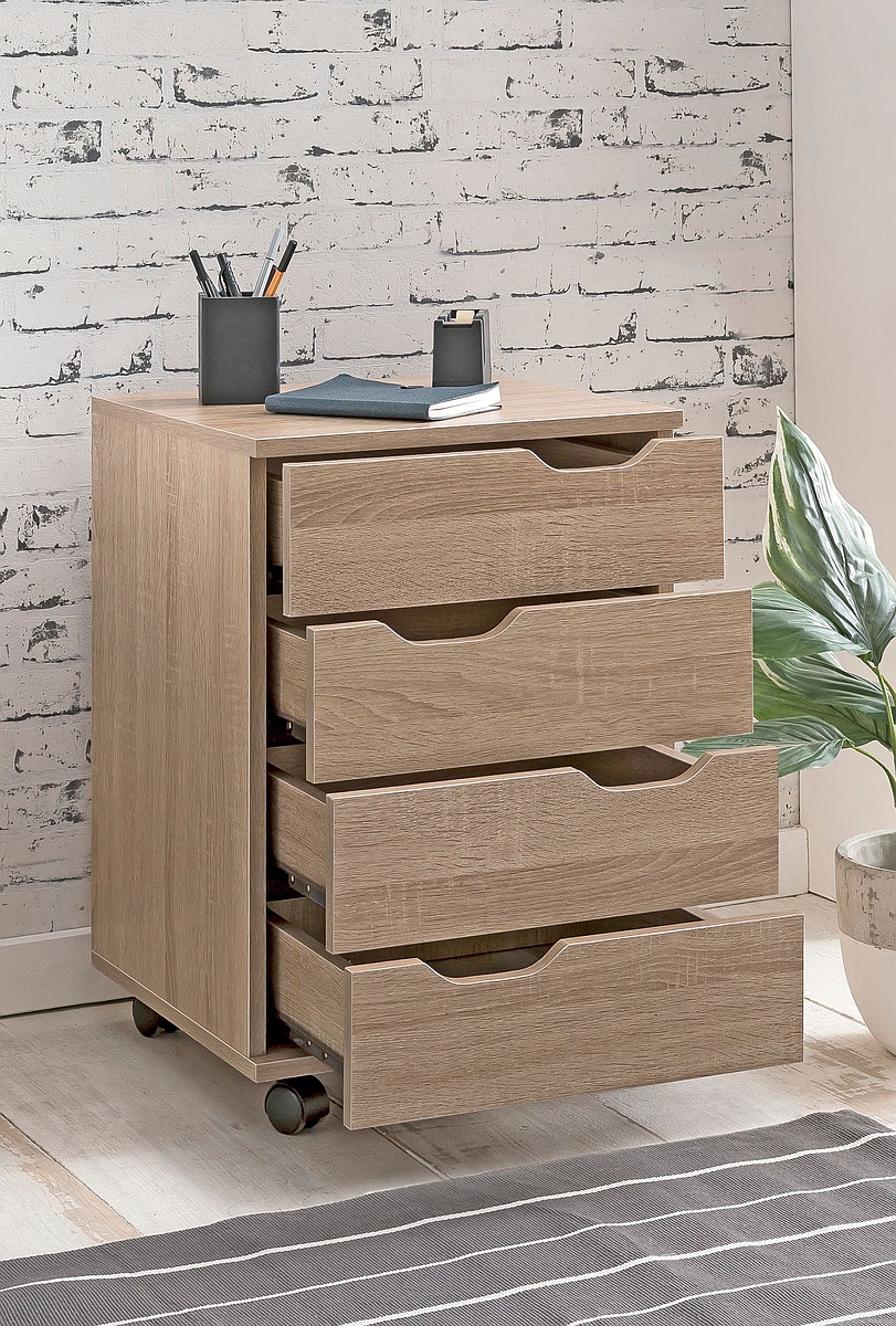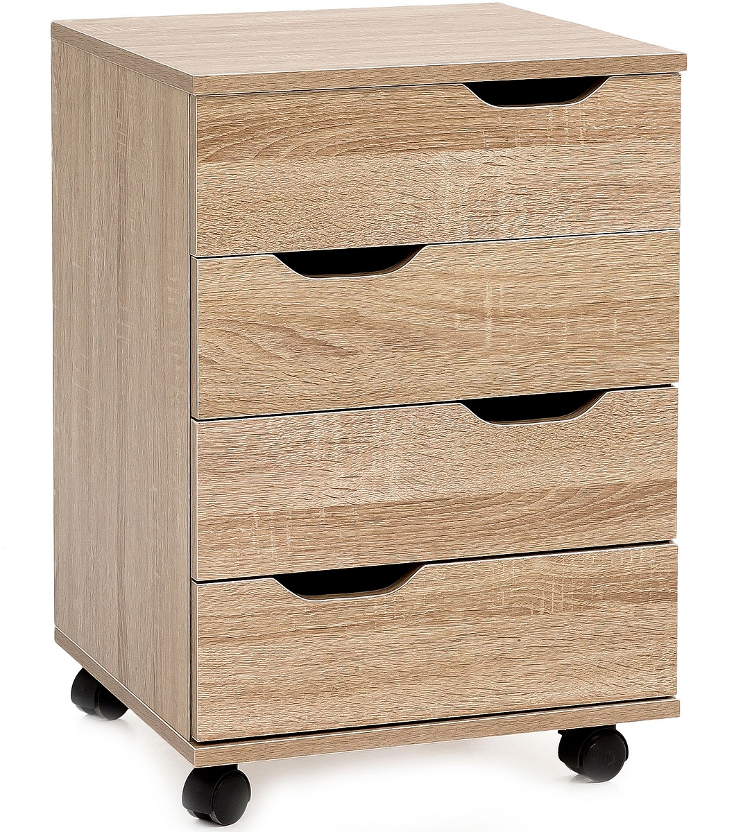 - ASSISTANCE DE BUREAU ✔ Stylos, perforatrice, agrafeuse, etc. sont omniprésents au bureau. Pour que ces accessoires indispensables ne traînent pas dans la pièce, cet élément de rangement à roulettes ultra chic dispose de quatre tiroirs et donc de suffisamment de place pour les fournitures de bureau. Les blocs A4 tiennent également dans les tiroirs. Tout est donc bien rangé.