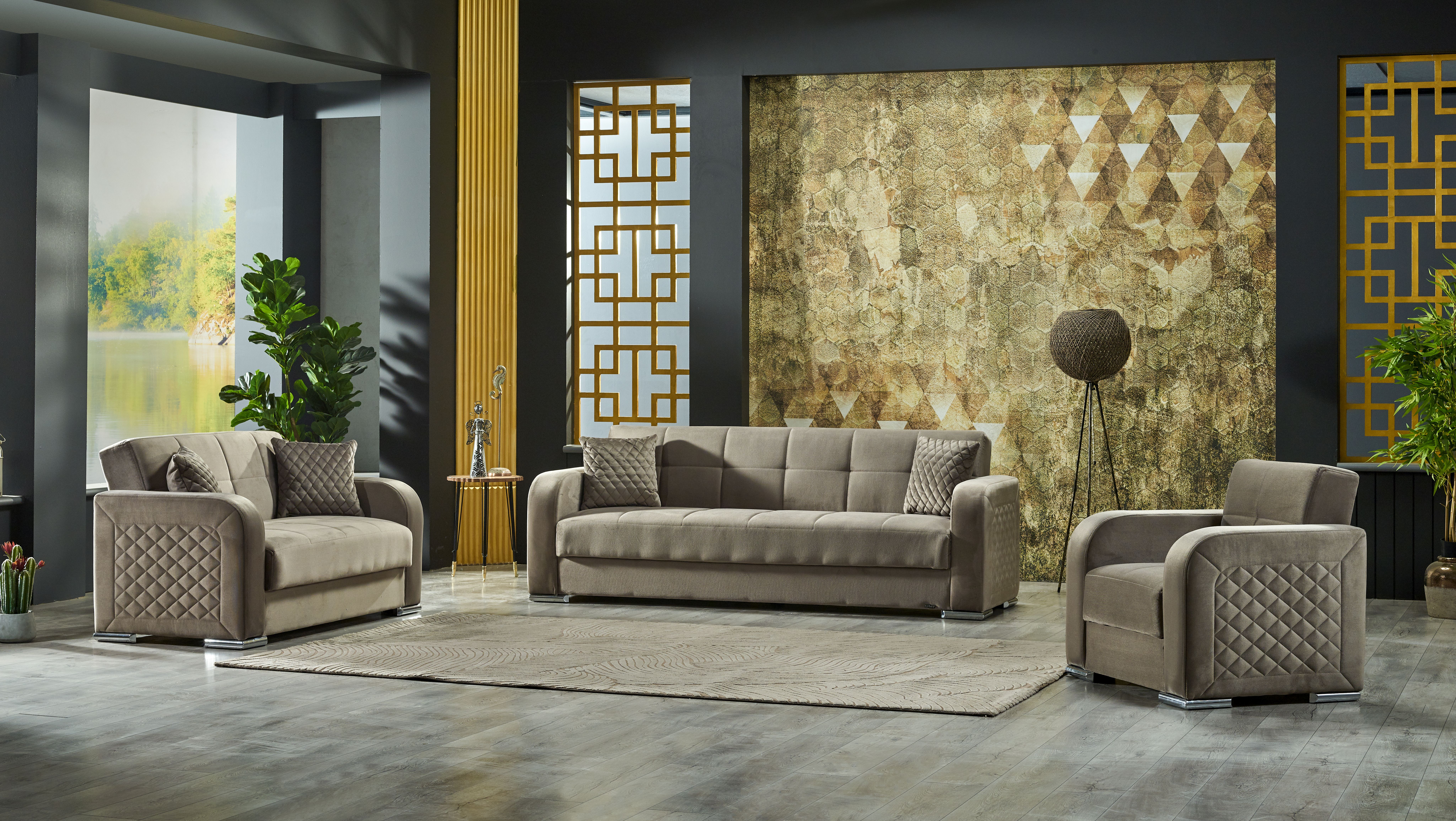 Sans décoration / canapé 3 places / fauteuil / table basse