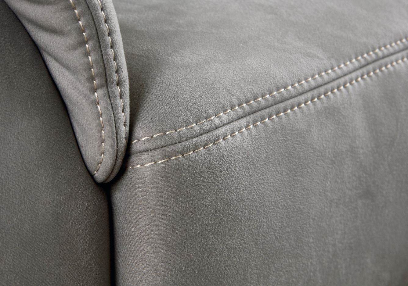 Revêtement : tissu Feeling ton grey 100% polyester ; coutures contrastées ton beige