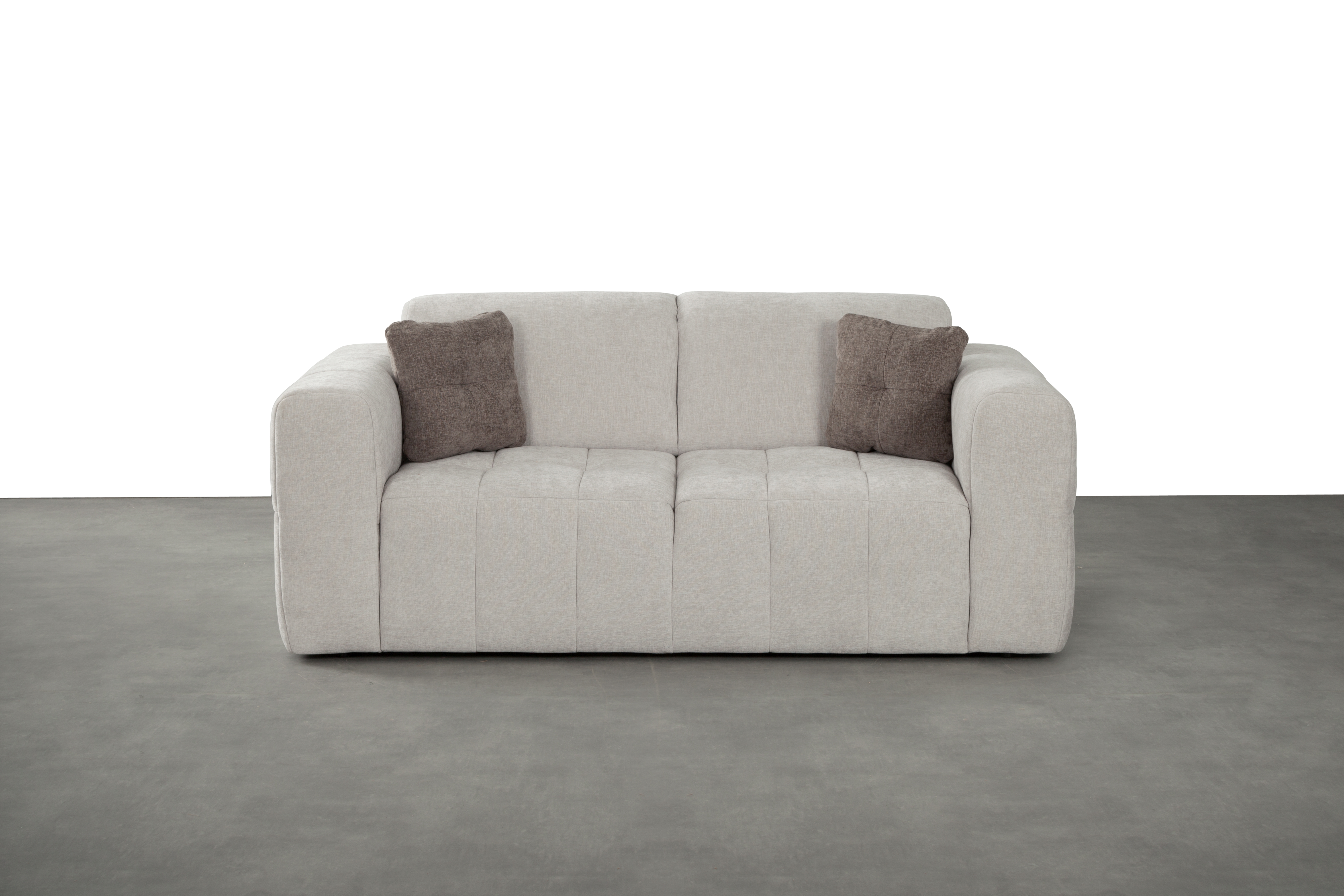 Revêtement : canapé 3 places en tissu ton Dove 6174 beige-argent 100% polyester, coussins décoratifs en tissu Stone 6170 ton moka 100% polyester